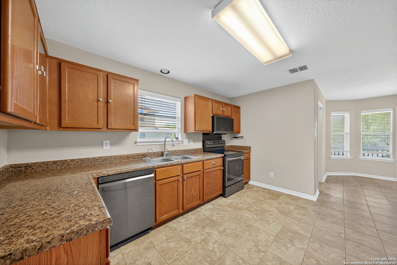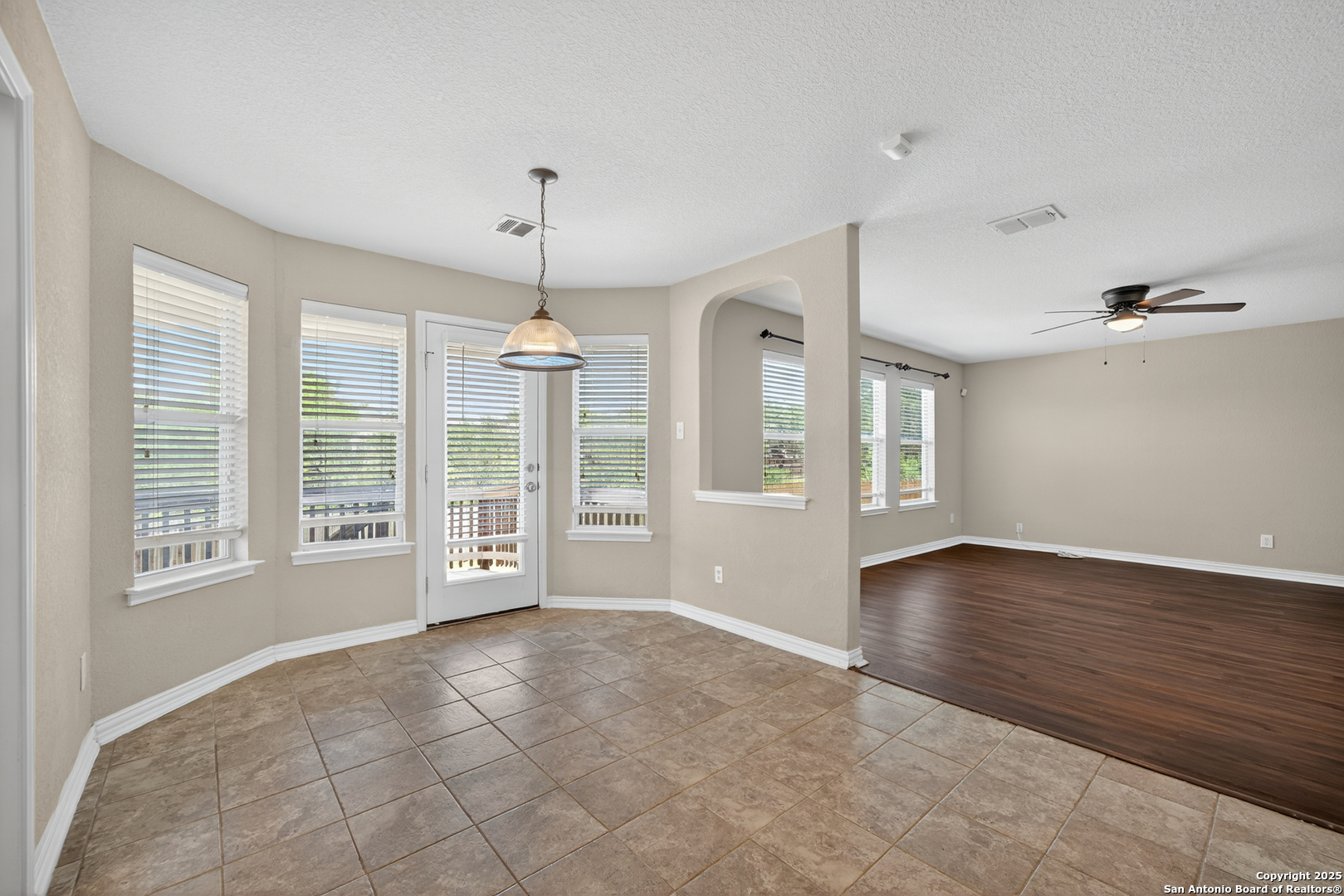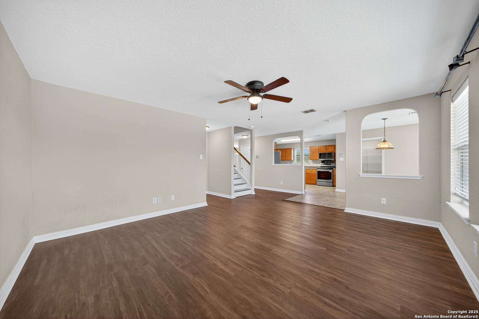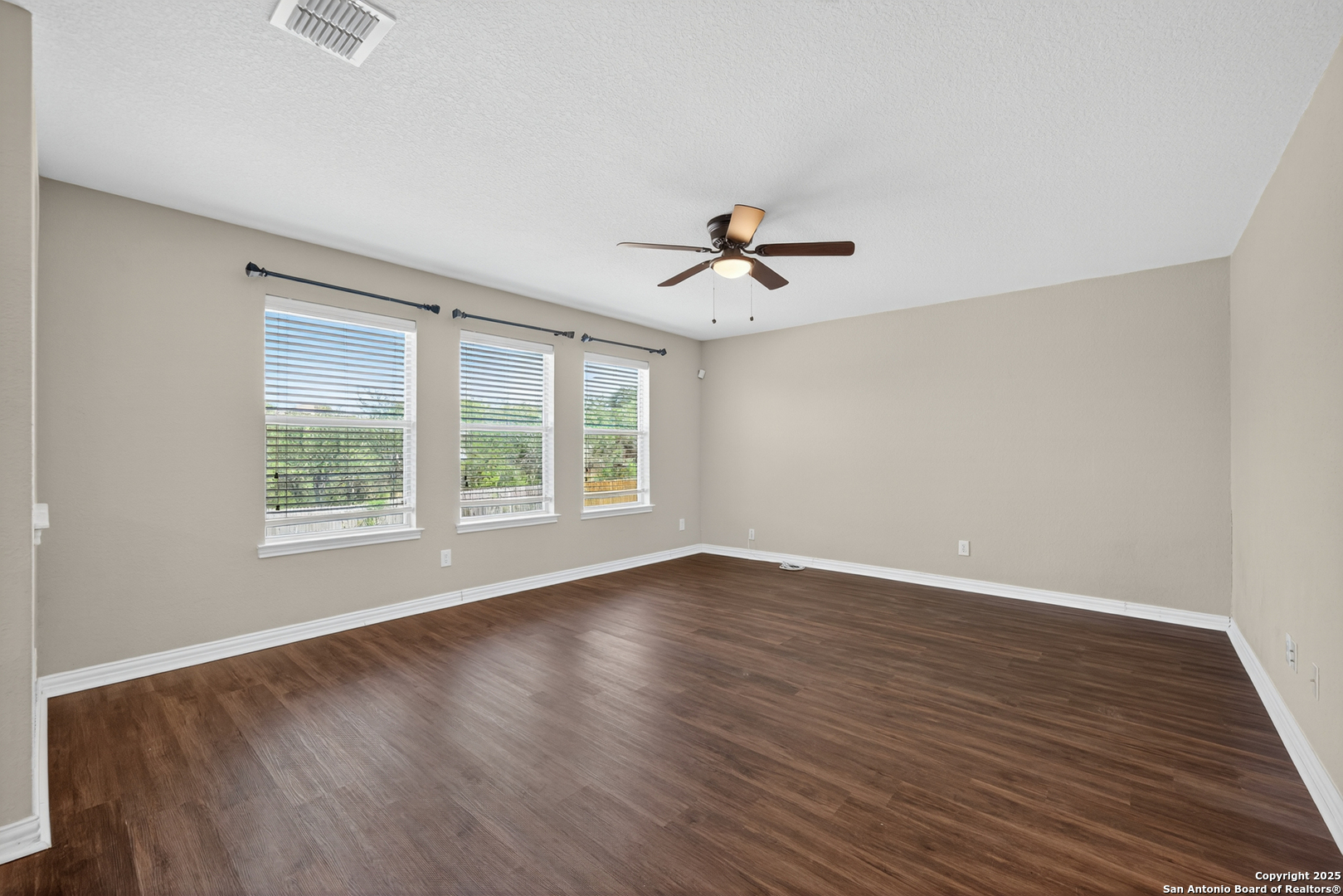 Details about a beautifully maintained, move-in ready home that I believe might be of interest. Upon entering, you'll find a spacious living room that flows seamlessly into a separate dining room, perfect for entertaining. The kitchen is designed with ample counter and storage space, and features large bay windows in the eat-in area, providing abundant natural light. Upstairs, there's an oversized game room that offers incredible flexibility; it can easily be converted into a home gym, a media room, or a fantastic space for kids and guests. Outside, you can escape to a spacious covered wood deck that overlooks a large, private yard, ideal for relaxation and outdoor activities. The home is situated in a beautiful community that boasts a swimming facility, sports court, basketball court, a lovely park, and various other amenities for residents to enjoy. Additionally, its location offers great convenience, especially being close to Lackland AFB.