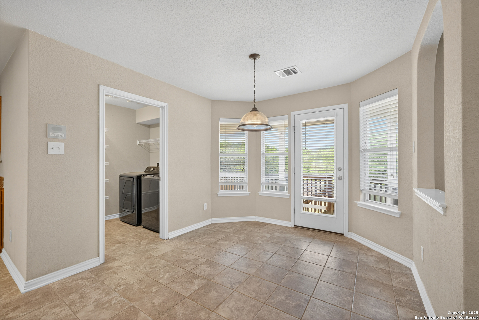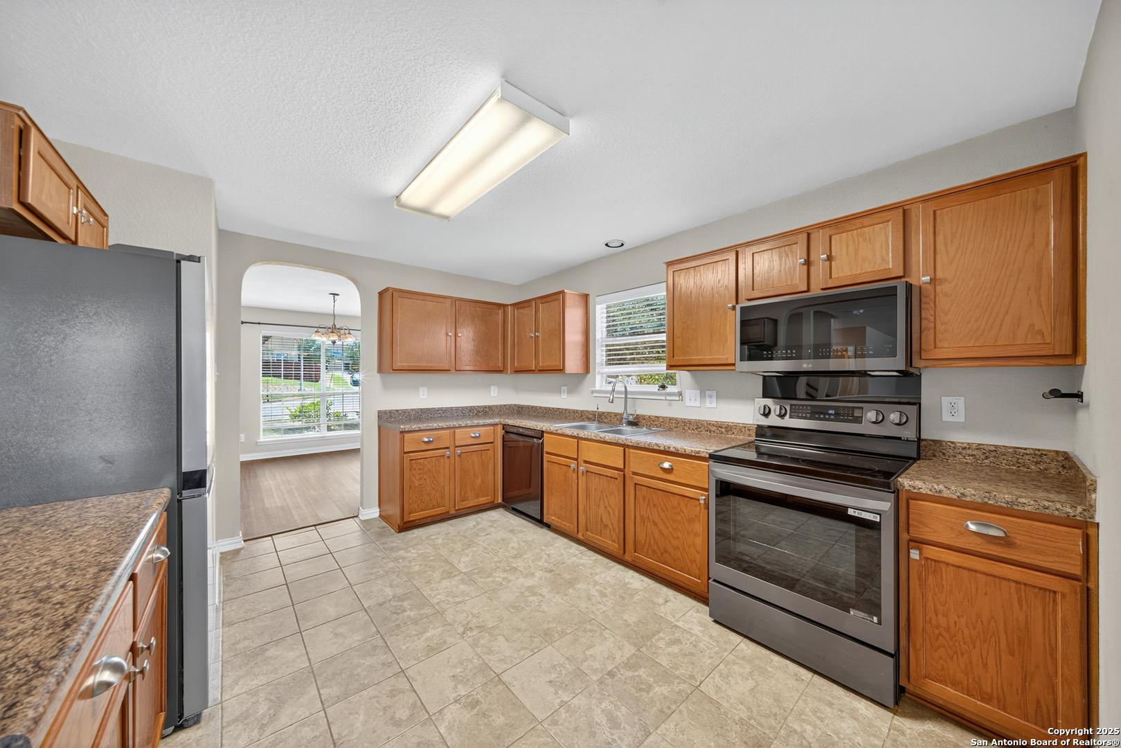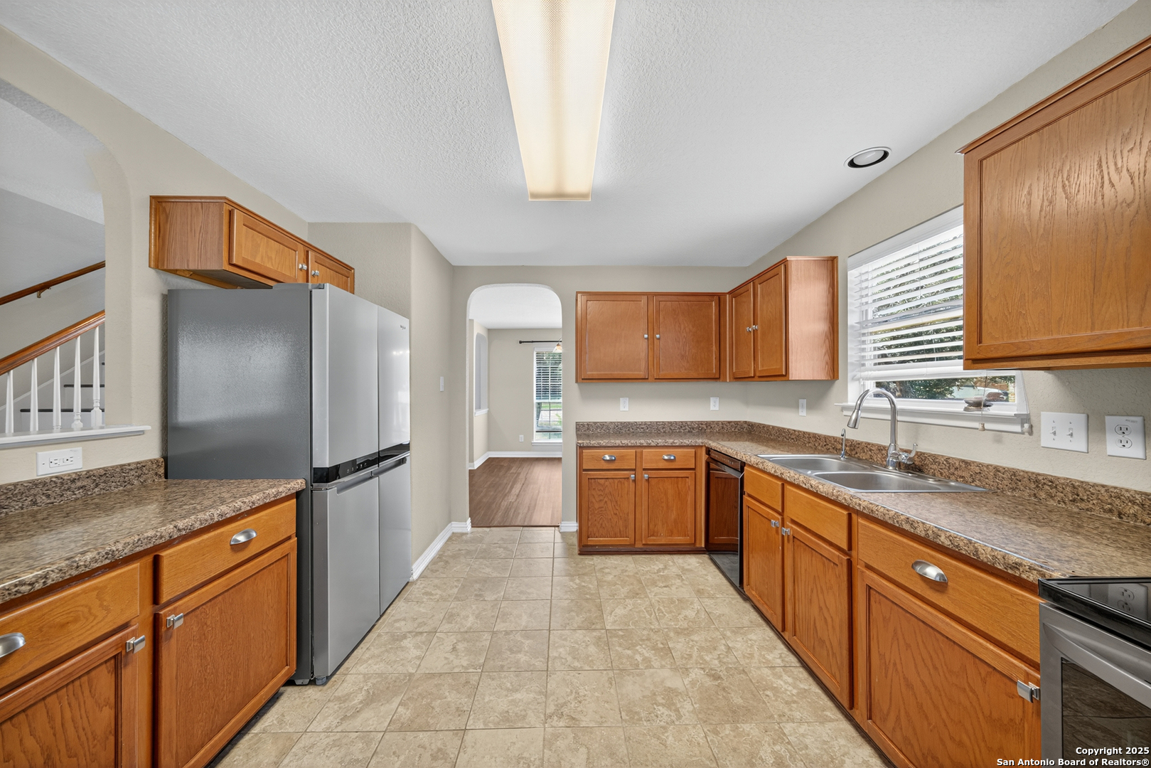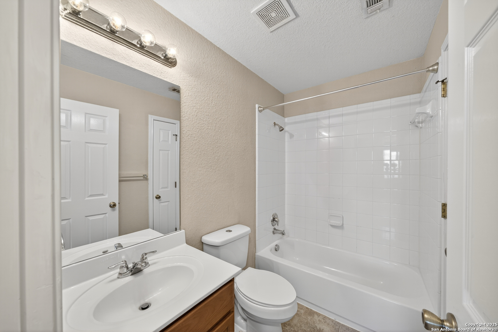 Details about a beautifully maintained, move-in ready home that I believe might be of interest. Upon entering, you'll find a spacious living room that flows seamlessly into a separate dining room, perfect for entertaining. The kitchen is designed with ample counter and storage space, and features large bay windows in the eat-in area, providing abundant natural light. Upstairs, there's an oversized game room that offers incredible flexibility; it can easily be converted into a home gym, a media room, or a fantastic space for kids and guests. Outside, you can escape to a spacious covered wood deck that overlooks a large, private yard, ideal for relaxation and outdoor activities. The home is situated in a beautiful community that boasts a swimming facility, sports court, basketball court, a lovely park, and various other amenities for residents to enjoy. Additionally, its location offers great convenience, especially being close to Lackland AFB.