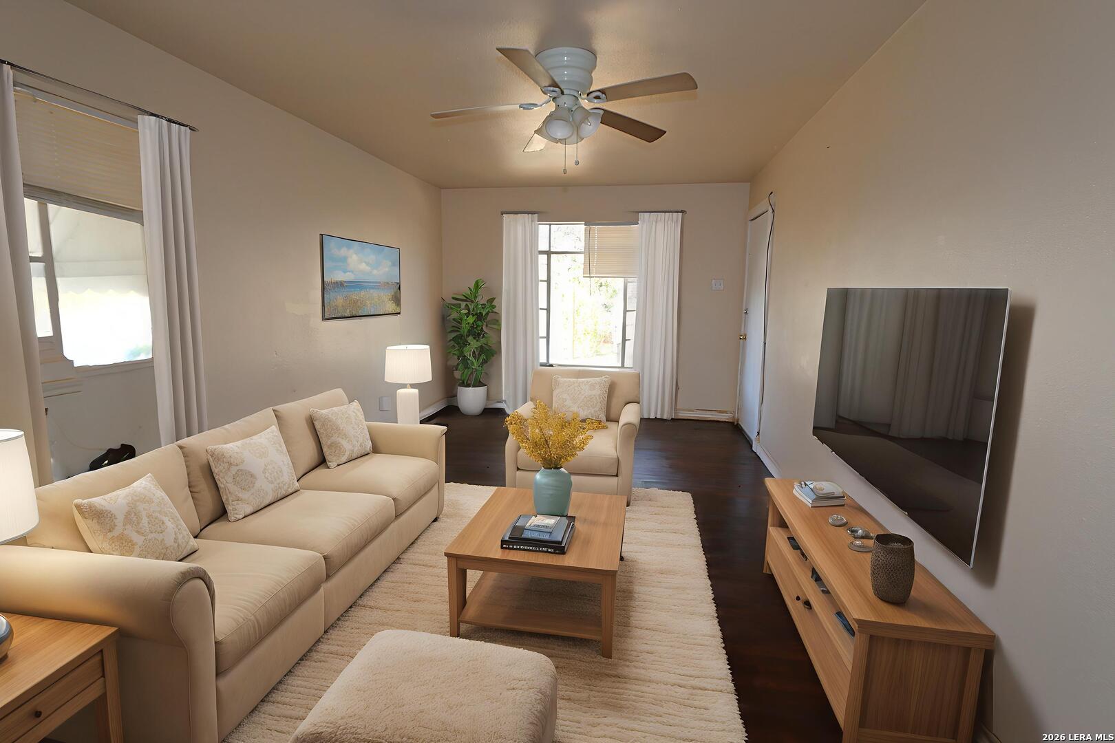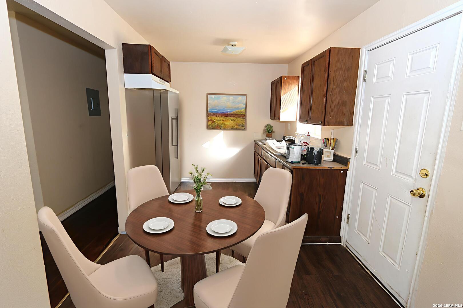 Great single story home just needs your personal finishes to make it perfect * Seller 3 years ago replaced the Roof with a Heavy Composition Shingles * In the last 6 years the updates include adding new insulation in the home, electrical wiring was replaced including the breaker box, new drywall was replaced and textured & foundation was leveled * Home comes with 2 A/C window units * Large backyard includes covered metal patio * Property being Sold As Is * Minutes from Downtown San Antonio, Fort Sam Houston, SAISD Schools, Frost Bank Center, IH-35 & Hwy-281 * No Owner Finance or Creative Financing available.