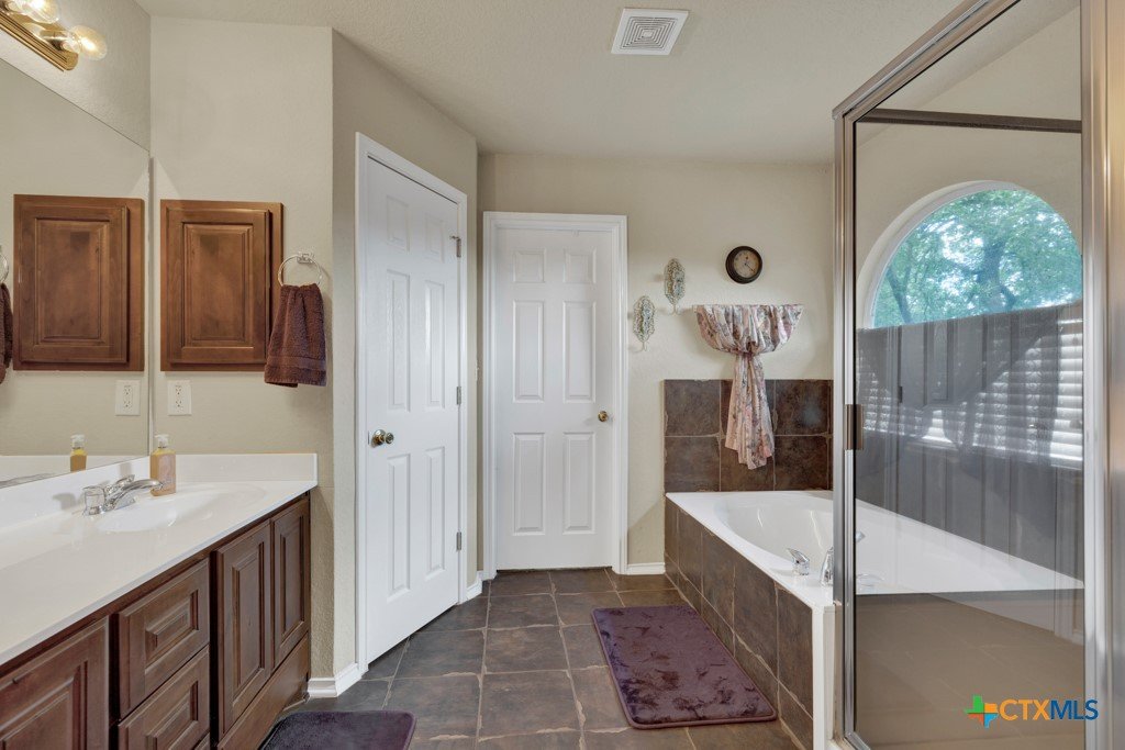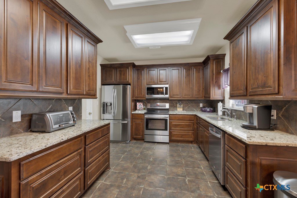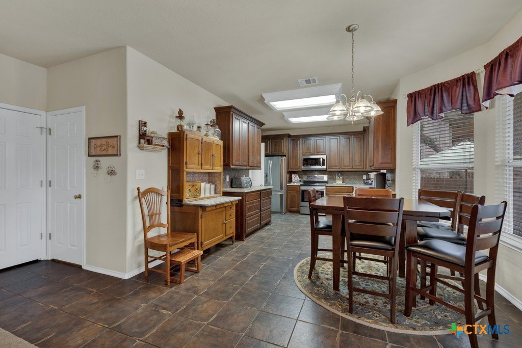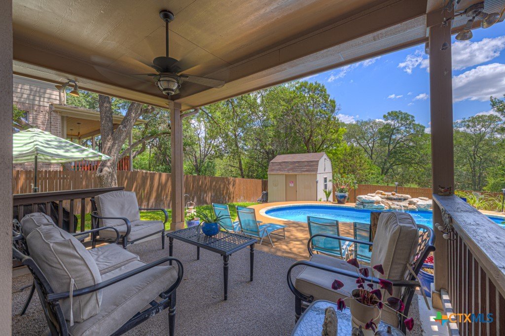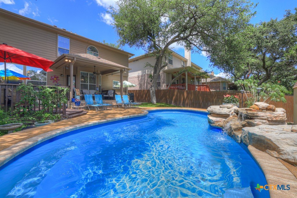 Absolulety stunning White Stone Home in Mission Hill Ranch. This 2700 plus two story with 4 Bedroom and 2.5 Baths is a must see. Custom cabinets in kitchen with newer stainless steel appliances with granite counter tops. Large Bedrooms and even bigger closets! Beautiful white stone fireplace will make the cooler days and Holidays more enjoyable and festive. The backyard is stunningly beautiful and relaxing with multiple Entertaining areas , Large lighted Oak trees and waterfall pool will take your breath away. Newer roof and a/c with water filtration system and water softener. Call to see today, rare property.