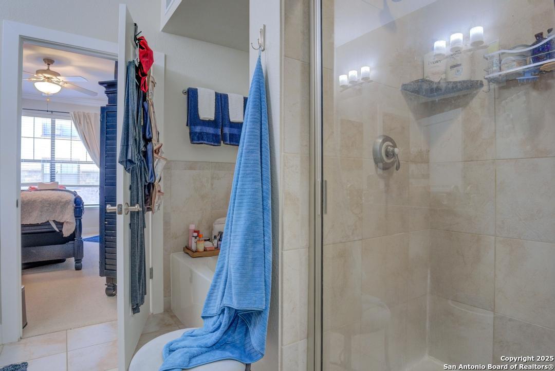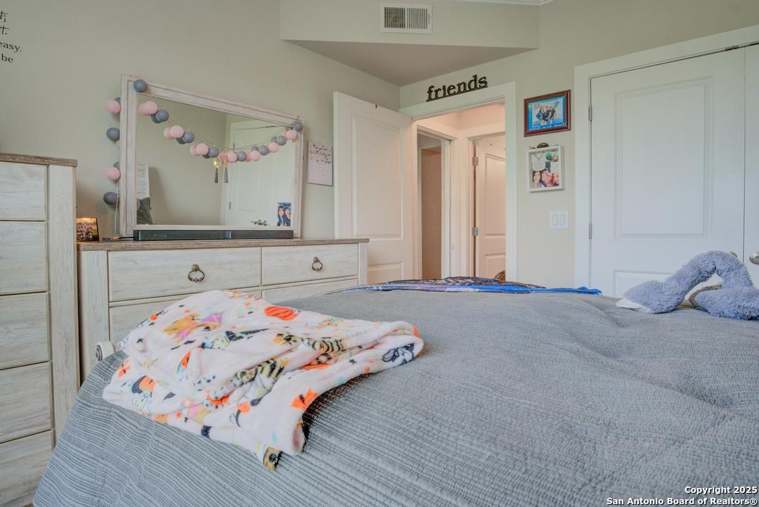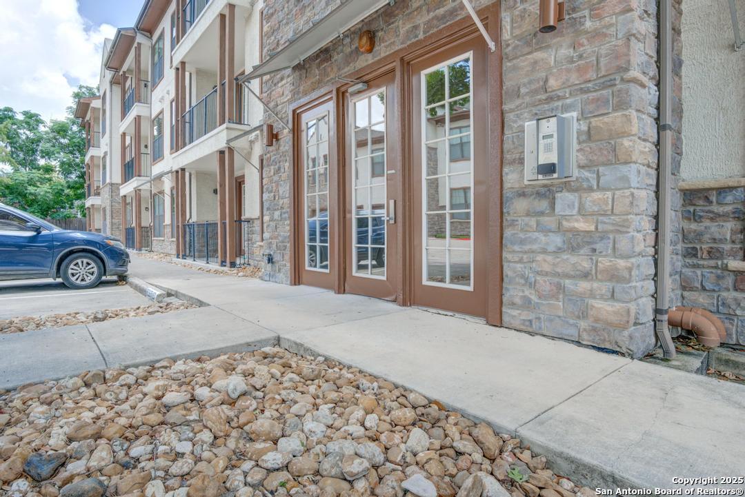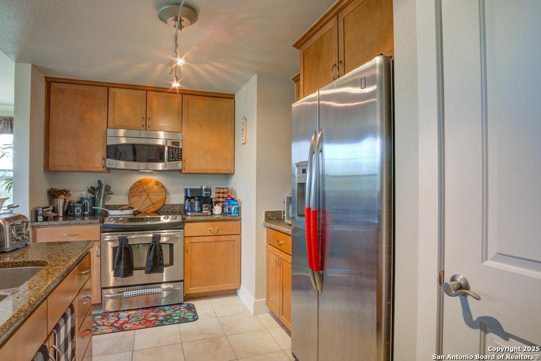 Vacant and move-in ready! This beautiful 2-bedroom, 2-bath condominium is ideally located in the heart of San Antonio's renowned Medical Center, adjacent to the Oak Hills Country Club and Golf Course. Thoughtfully designed with an open-concept layout and soaring ceilings, the home features wood flooring and ceramic tile throughout for easy maintenance. The kitchen is equipped with stainless steel appliances and granite countertops, opening seamlessly to the living and dining areas. The spacious primary suite includes a large walk-in closet and a private en-suite bath with double vanities. Located in a gated community, residents enjoy resort-style amenities including a sparkling pool and hot tub, clubhouse, exercise room, and outdoor grilling area. This desirable end unit offers a private balcony with relaxing views of the golf course. Washer, dryer, and refrigerator are included, along with a two-car garage. Conveniently within walking distance to major hospitals, medical and dental schools. This one won't last long!