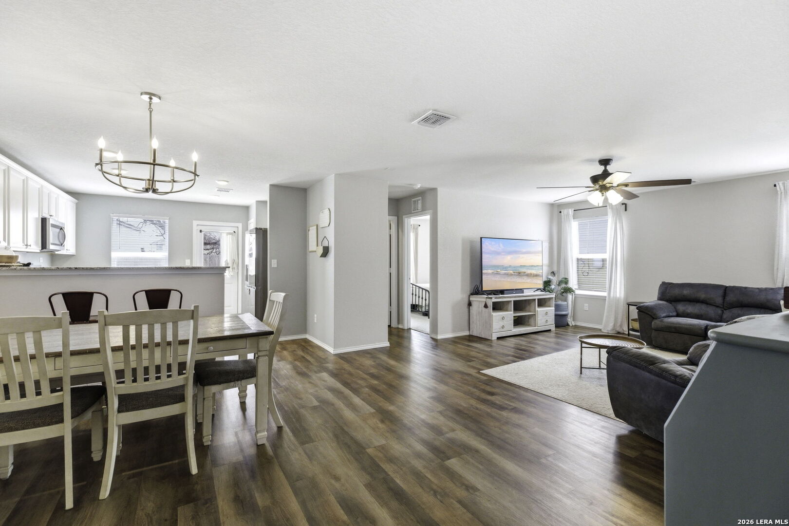 Built in 2021 by Pulte/Centex, this well-maintained home offers modern design and move-in ready convenience in a prime Far West San Antonio location within Northside ISD. The open layout features a spacious main living area and has been freshly painted in a soft, modern color palette that complements a variety of styles. Upstairs, a versatile second living/game room provides flexible space for a media room, play area, or home office. The kitchen flows easily into the living and dining spaces, making it ideal for everyday living and entertaining. Step outside to a private fenced backyard with an extended patio slab, creating a great space for outdoor dining or relaxing. Refrigerator, window coverings, and landscaping are already in place. Conveniently located near Hwy 151 and Loop 1604, with easy access to shopping, restaurants, hospitals, and SeaWorld.