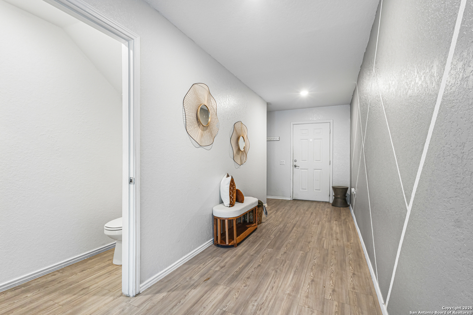 CUL DE SAC AND NO NEIGHBORS- A GREAT COMBO! Located in the desirable Northeast Crossing community, this well-maintained 1,933 sq. ft. home features a spacious layout with 4 bedrooms, 2.5 bathrooms, and a versatile upstairs flex space-perfect for a game room, media room, or additional living area. All bedrooms, including the large primary suite, are located upstairs, offering added privacy from the main living spaces. The open-concept main floor includes a bright living room, dining area, and a modern kitchen with granite countertops, ample cabinet space, and a breakfast bar-ideal for both everyday living and entertaining. Enjoy added peace and privacy with no back neighbors, making the backyard a relaxing retreat. Conveniently located just 20 minutes from the San Antonio Airport, Pearl District, and San Antonio Zoo, and with quick access to BAMC, shopping, dining, and major highways-this home offers both comfort and convenience.