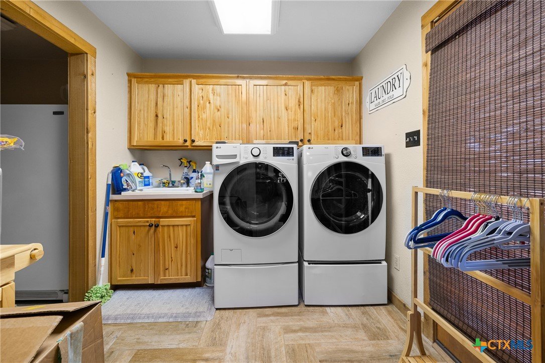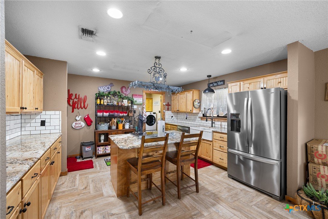 Located in Nixon, Texas, this updated 3-bedroom, 2-bath home with a dedicated office offers over 2,100 square feet of comfortable living space. The home features covered front and back porches, providing great outdoor space to relax or entertain. The kitchen showcases custom Amish-built cabinetry, granite countertops, and a large farmhouse-style sink. Numerous custom updates throughout the home add both character and functionality. The spacious primary suite includes a large bedroom, oversized bathroom, and generous closet space. The laundry room includes an additional sink, making it ideal for use as a mudroom area. Outside, the property is fully fenced with a separate front pasture fenced off for animals. Three sheds provide excellent versatility—one equipped with electricity and A/C, ideal for a workshop or hobby space, and two additional sheds for storage. A covered carport offers additional parking and workspace options. With no known restrictions and plenty of usable outdoor space, this property offers flexibility for animals, projects, or simply enjoying country living.