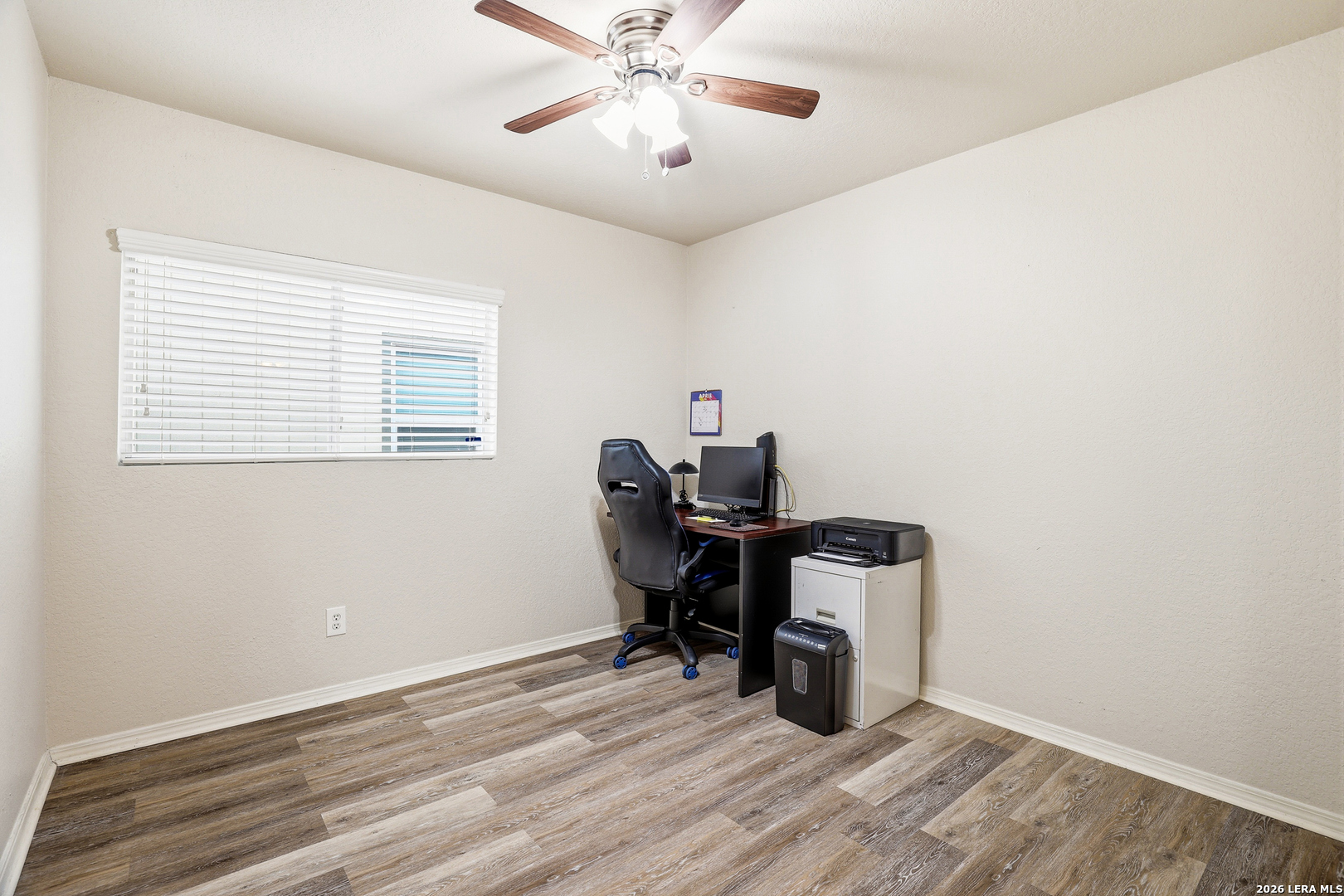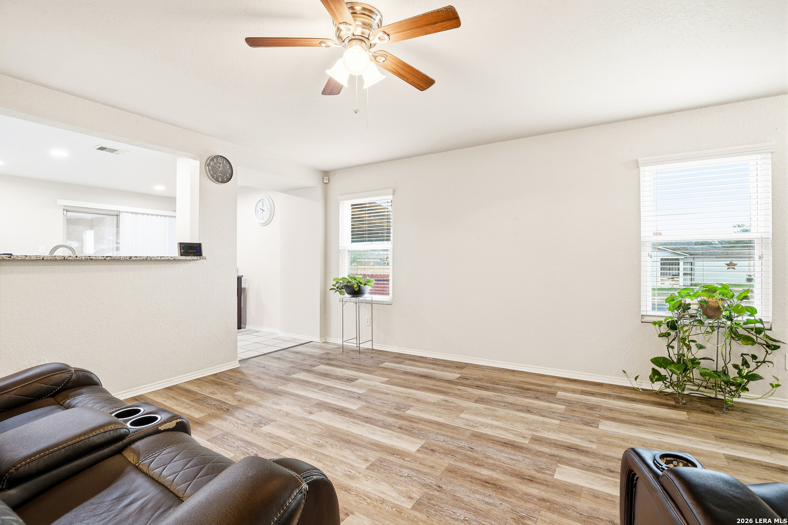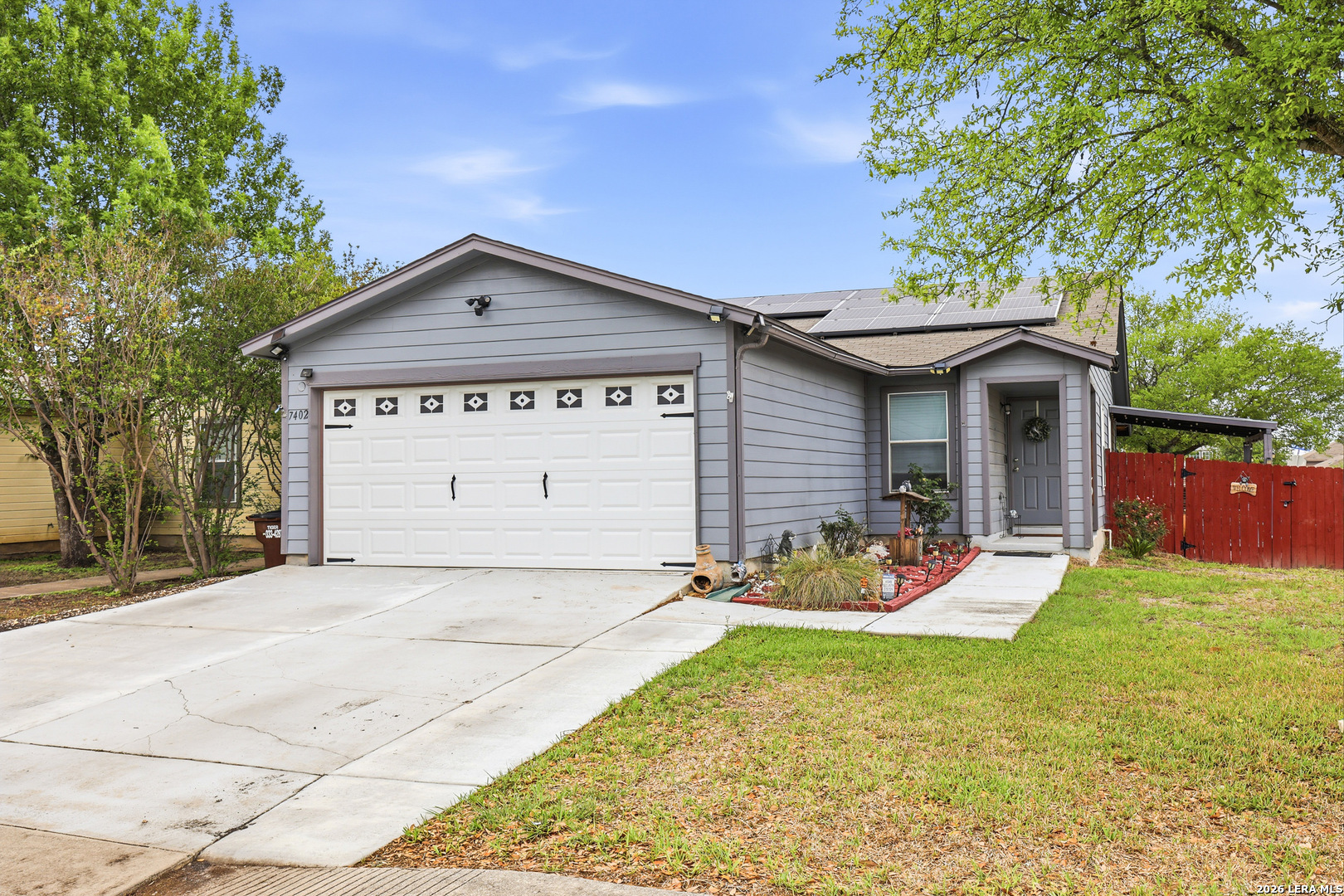 If you've been looking for a home that feels easy to settle into from the moment you walk in, this one-story in Bradbury Court is a great fit. Sitting on a corner lot, it offers a sense of space and privacy that's hard to find at this price point. Inside, the open layout creates a natural flow between the living area and kitchen, making it simple to relax at the end of the day or spend time with family and friends without feeling closed in. The updated flooring throughout the main areas and bedrooms adds a clean, comfortable feel underfoot, while the dedicated study gives you that extra space for working from home, hobbies, or a quiet retreat. The primary bedroom is tucked away for privacy and includes its own full bath, while the additional bedrooms are well-sized and easy to access, making the layout both practical and inviting. You'll also appreciate the indoor utility room, two-car garage, and the added benefit of solar panels to help keep energy costs down. Step outside and enjoy the openness of the corner lot, offering more breathing room and a nice sense of separation from neighbors. With quick access to Loop 410 and I-35, and just minutes from Fort Sam Houston and Randolph AFB, the location makes daily commutes and errands simple. Whether you're buying your first home, relocating, or looking for a smart investment, this home offers comfort, flexibility, and value in one place-come take a look and see how it feels in person.
