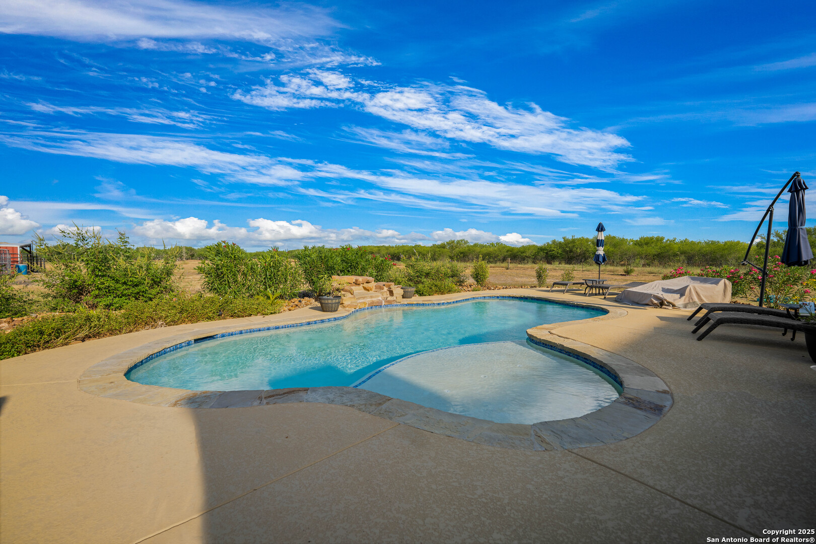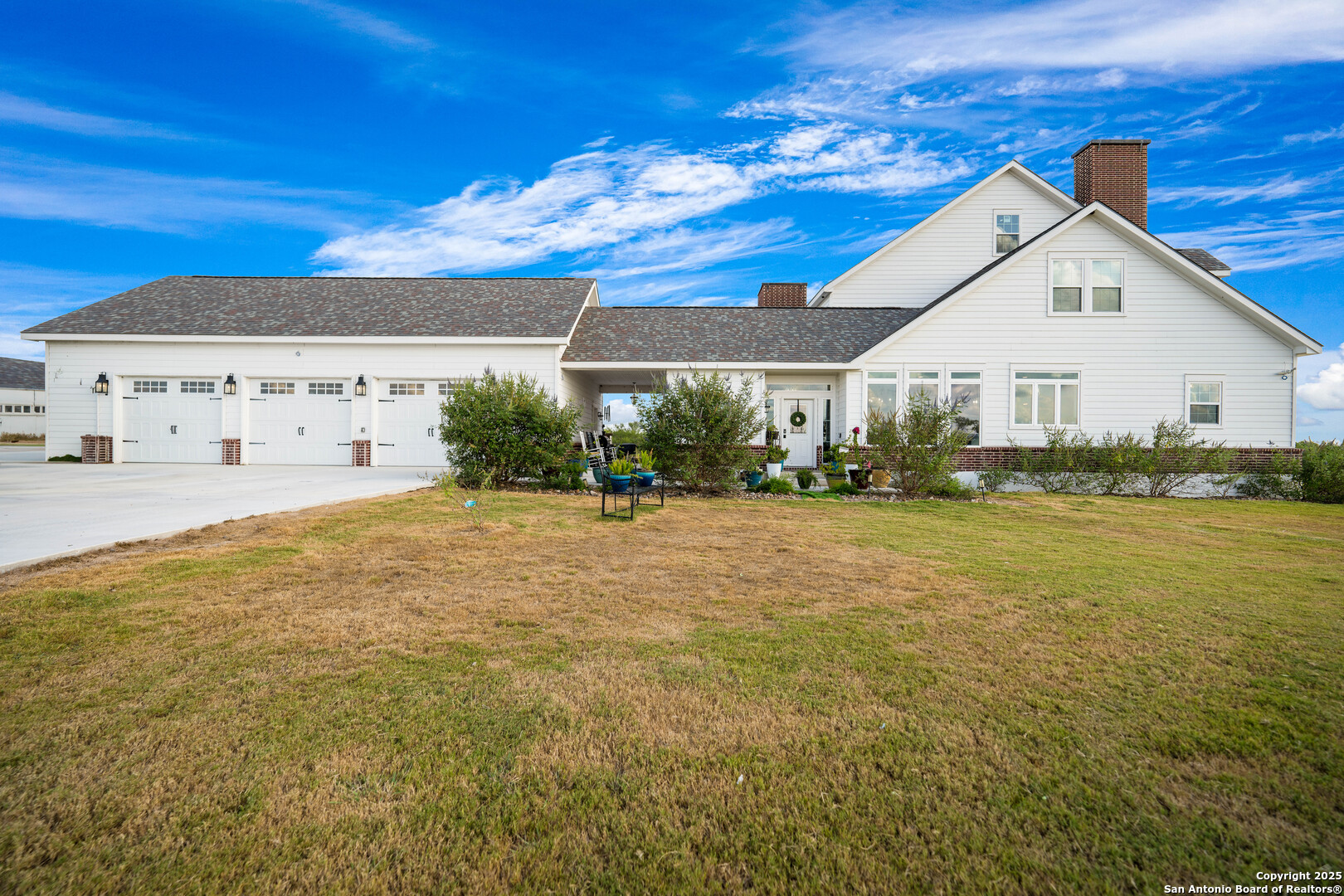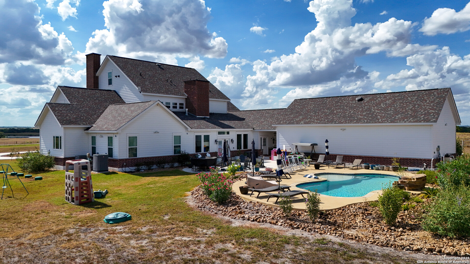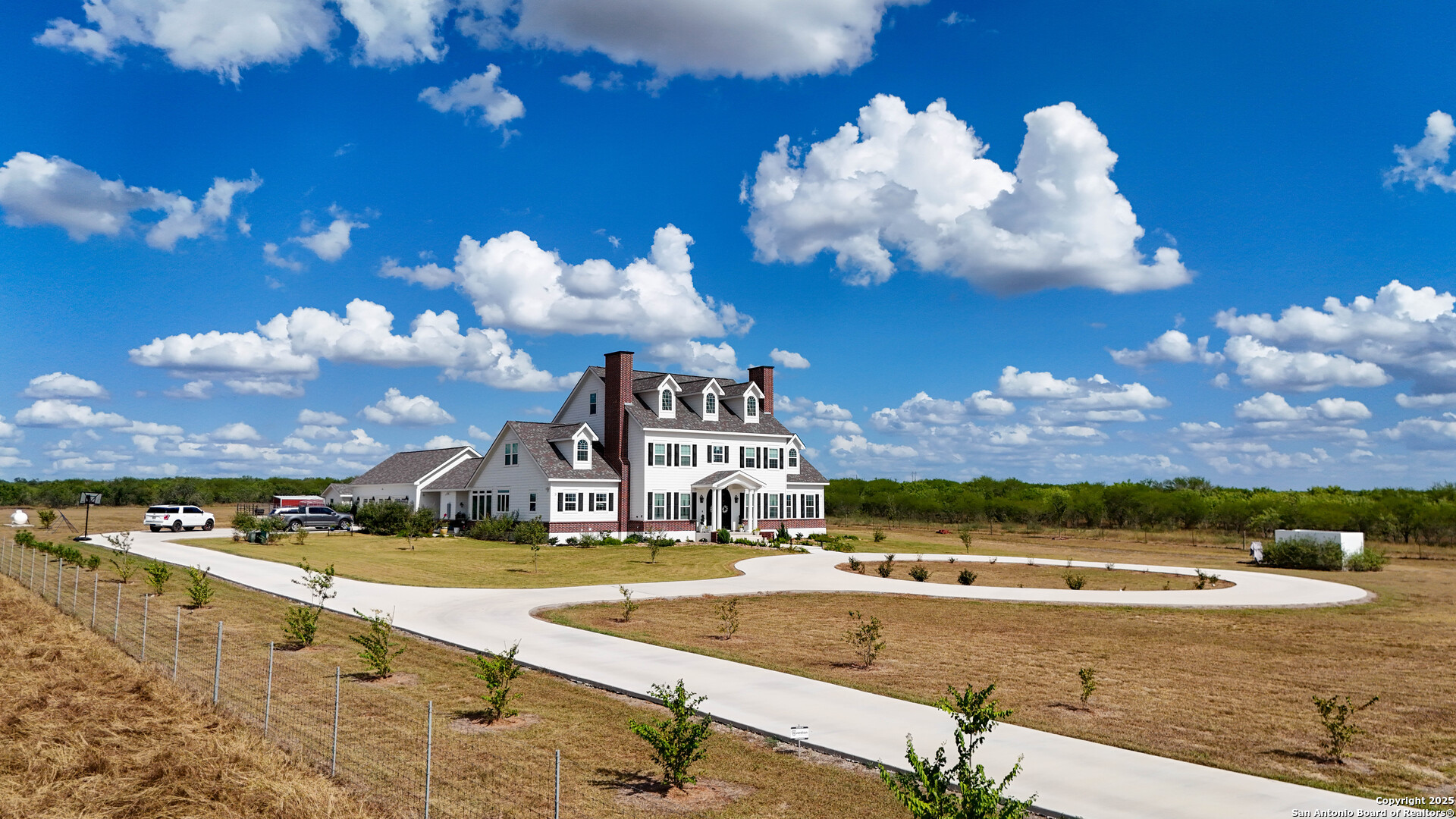 Experience timeless elegance in this stunning two-story Colonial estate, perfectly situated on 5 fully fenced acres. Offering up to 8 bedrooms and 5.5 bathrooms, this residence is ideal for multi-generational living, those who love to host in style, or possibly an event destination. Step into the grand foyer, where the formal dining room graces the left and the formal living room sits to the right-both featuring cozy fireplaces and custom built-ins. Beyond the main staircase, the Great Room beckons with its stately fireplace, built-in entertainment center, and a sophisticated wet bar. The chef's kitchen boasts high-end appliances, including a gas Thermador stove with pot-filler, double ovens, two dishwashers, a large island with prep sink, a farm sink, and a walk-in pantry. A beautiful Butler's Pantry connects to the dining room, while the adjoining keeping room offers a relaxed gathering space. Nearby, the mudroom-with built-in benches and storage, a powder room, and a dedicated dog-wash station-provides exceptional functionality. A spacious laundry room with abundant storage and a back staircase complete this wing of the home. The primary suite, located on the main floor, features a tray ceiling, crown molding, and two walk-in closets (one with a vanity). The spa-like primary bath includes separate sinks, a jetted soaking tub, walk-in shower with 3 digitally controlled shower heads, and water closet. A guest bedroom and full bath are also conveniently located on the first floor. Upstairs, you'll find two bedrooms with private en-suites, two bedrooms sharing a Jack & Jill bath, plus two additional rooms currently serving as a media room and craft room. A sunroom behind the Great Room offers sweeping views of the outdoor oasis, complete with a sparkling in-ground pool. A covered breezeway connects the home to the 3-car garage, which includes a fully floored attic for storage accessed by a permanent staircase. The 3rd floor attic of the house is also floored for more storage and accessed by a full staircase. Beyond the garage is a 320+/- sqft, air-conditioned storage building, livestock shed and pen. Additional features include high ceilings, wood floors, marble and granite countertops, chandeliers, ceiling fans, walk-in closets, 2 tankless water heaters, 3 HVAC units, water softener, and dual tank aerobic septic system. Outside, the homes elegance starts at the gated, brick front entrance with controlled access and continues up the concrete drive and large circular driveway. This exceptional property blends traditional charm, luxurious finishes, and thoughtful amenities-all within a serene, private setting.