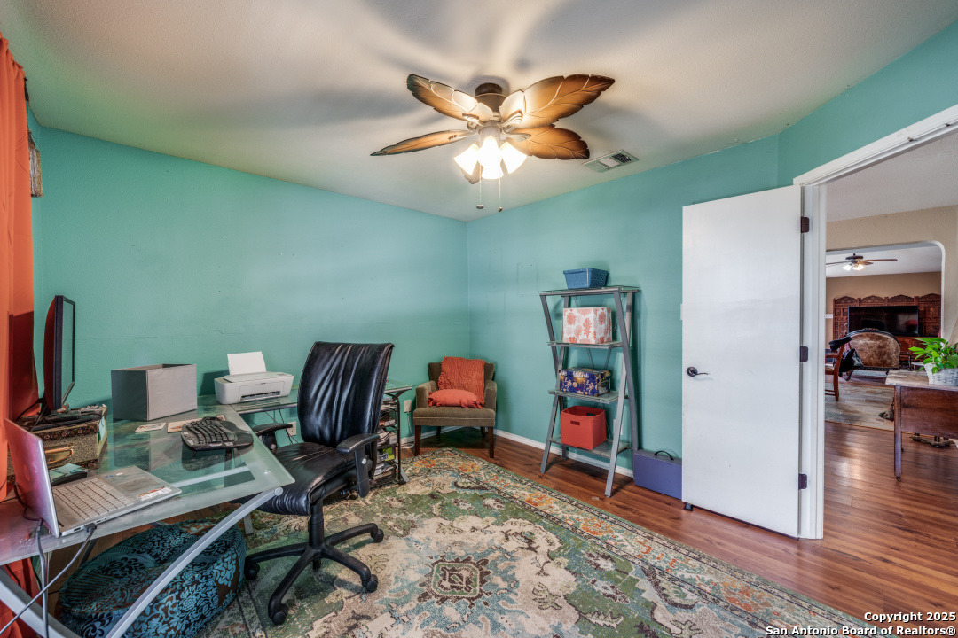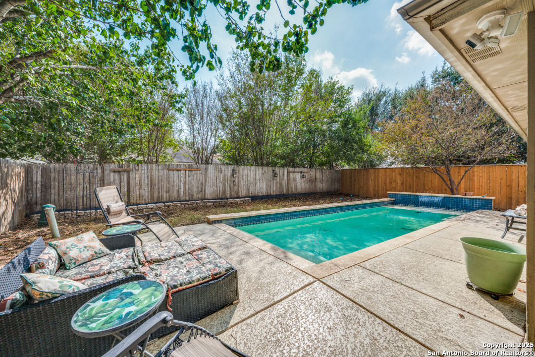 Discover your dream home at 7418 Tamburo Trail, a beautifully designed 4-bedroom, 2-bath residence spanning 2,125 sq ft in the desirable Rolling Meadows subdivision. This single-story gem combines modern comfort with thoughtful layout, perfect for families or entertaining. Step inside to a spacious dedicated office ideal for remote work or study, and a formal dining area for family gatherings. The heart of the home is the open concept kitchen, breakfast nook, and living area, where natural light floods the space, creating an inviting flow for everyday living and hosting. Retreat to the sequestered primary suite, featuring a generous walk-in closet and a luxurious private bath with a deep garden tub and separate shower. Three additional bedrooms offer ample space for family, guests, or hobbies. Outside, escape to your private oasis with a sparkling pool perfect for summer fun and relaxation. Prime location near I-35 and 1604 ensures easy commutes, with The Forum shopping center and a variety of restaurants just minutes away. Don't miss this exceptional opportunity!