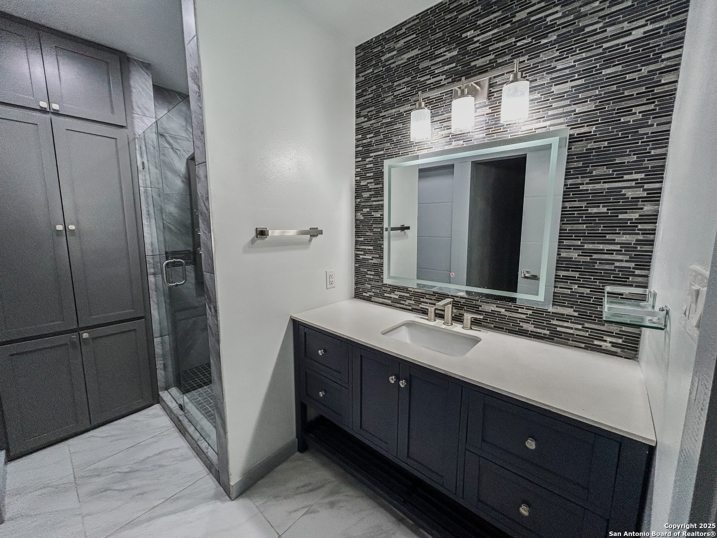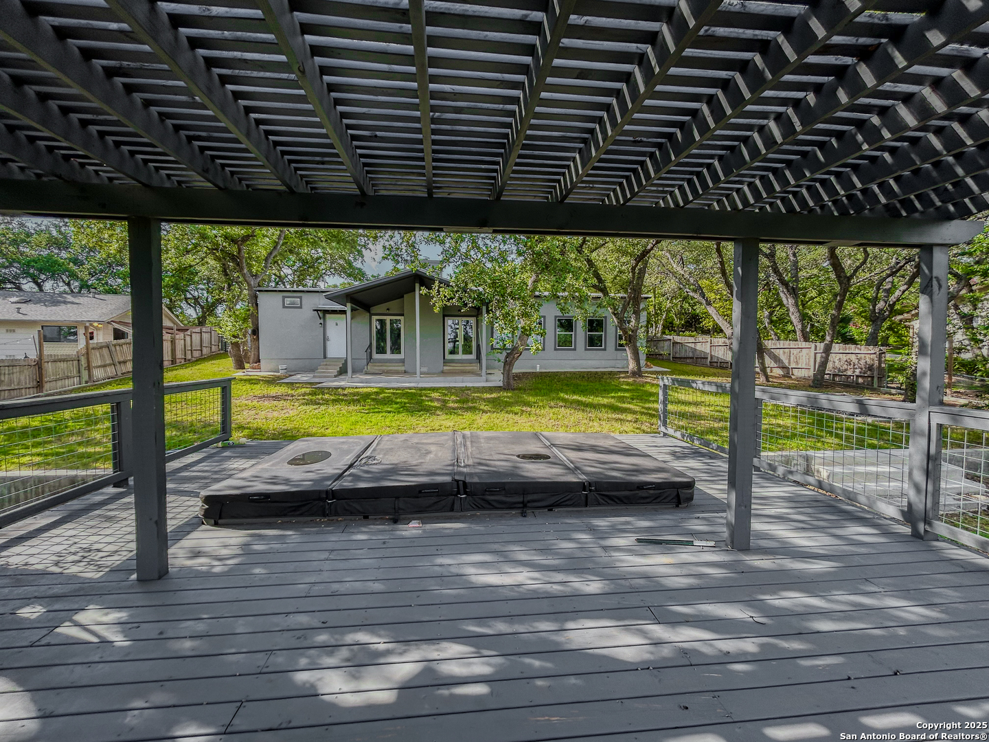 Upgraded Retreat in Prime Location - A True Hidden Gem! Exceptional fully renovated one-story home (2,700 sqft) on half an acre in the highly desirable Hills & Dales neighborhood. This unique sublevel residence blends modern elegance with resort-style comfort, featuring 4 spacious bedrooms, 3 beautifully updated bathrooms, and an oversized living area designed for entertaining. Energy efficiency is enhanced with 2" polystyrene panels installed over the brick, concrete, and stucco exterior. The aerobic septic-system maintenance was fully renovated for one more year until 2026. Interior highlights include high ceilings, glazed porcelain flooring throughout, a granite kitchen with modern cabinetry, and a large primary suite with custom built-ins. All bathrooms have been tastefully renovated with contemporary finishes. Step outside to your private retreat, complete with a professional-grade High performance 18D swim SPA (215"x94"x60") Training/Therapy under a large deck area for relaxation, and mature trees providing natural shade and privacy. Ideal for multigenerational living or those seeking a peaceful work-from-home environment. Additional features include 4 covered garage spaces and ample storage. Ideally situated near Loop 1604, IH-10, and the newly opened H-E-B, this one-of-a-kind property offers space, flexibility, and a rare opportunity to own a move-in-ready retreat in a prime location