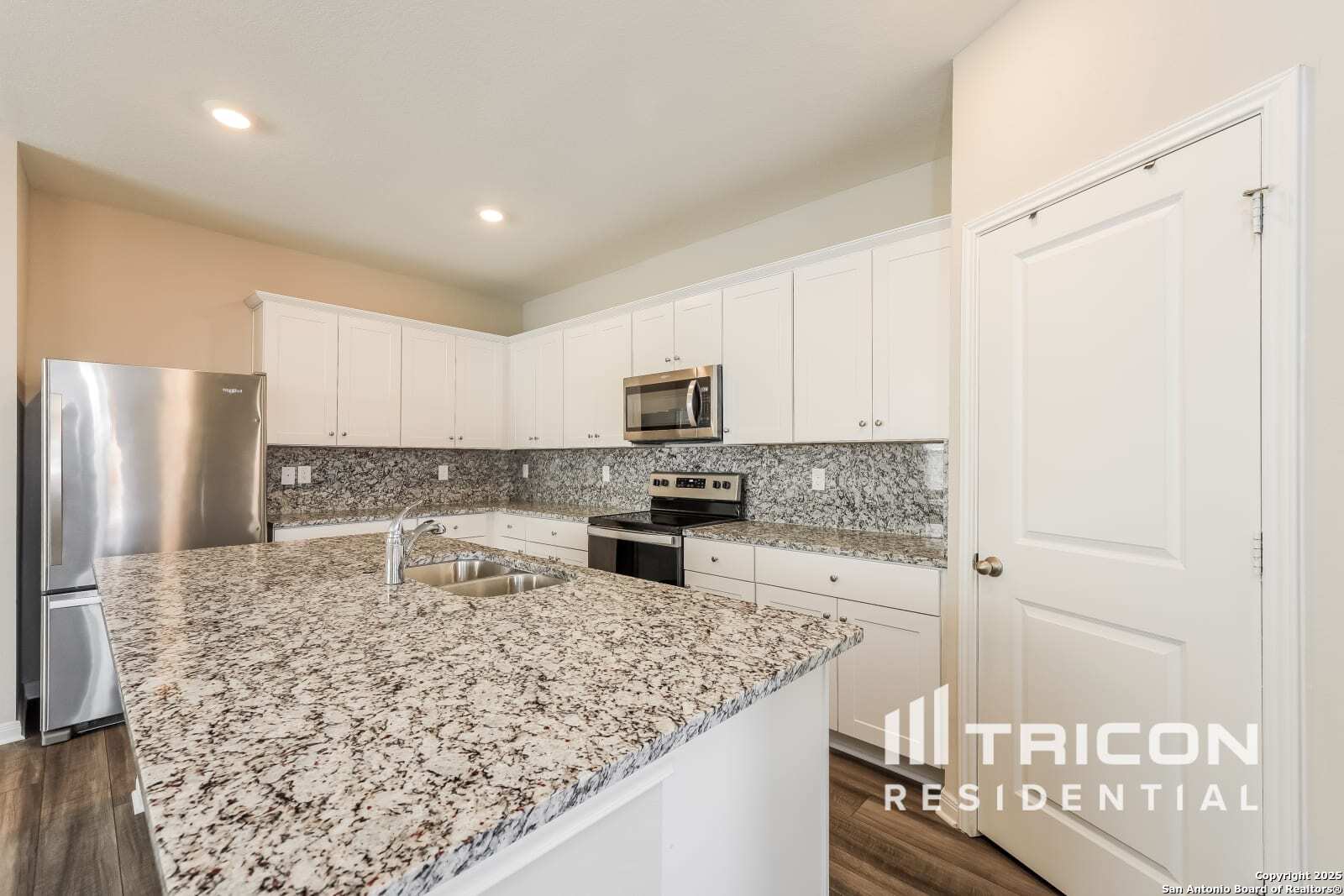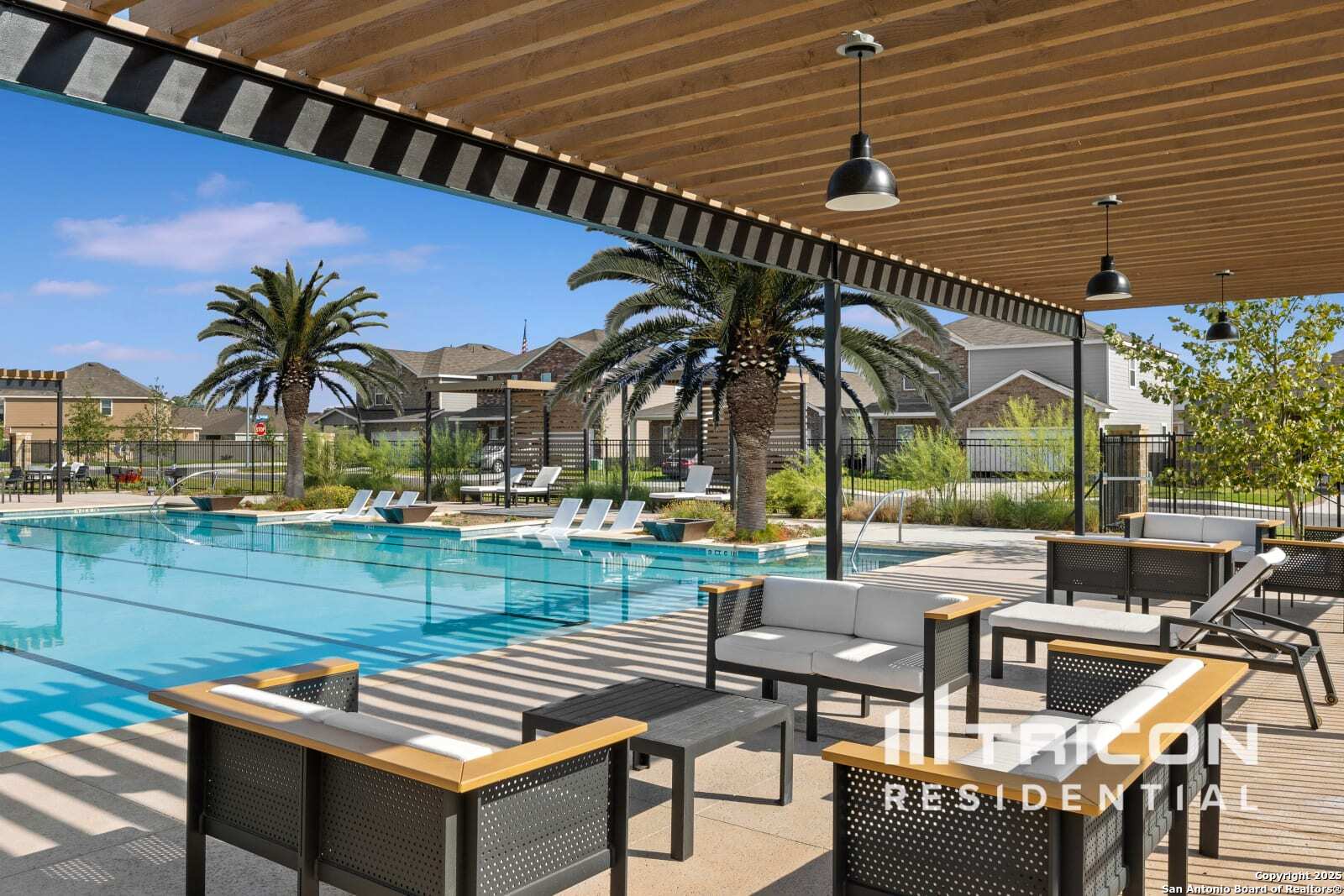 This home is professionally managed by Tricon Residential, dedicated to creating exceptional rental experiences. Featuring 4 bedrooms, 2.5 bathrooms, and approximately 1912 square feet, this well-maintained home offers a high standard of rental living, supported by a team that puts residents first. Enjoy virtually maintenance-free living with the conveniences of smart home technology including automatic thermostat control and keyless front door entry.new single-family rental home community located in San Antonio's far west side. Every fully-maintained home includes a gourmet kitchen with granite countertops and stainless steel appliances, smart home technology, and a fully fenced backyard. Enjoy well-maintained community amenities including a resort-style pool, playground, splash pad, poolside cabanas, full-size basketball court and barbecue pavilion with shaded seating.