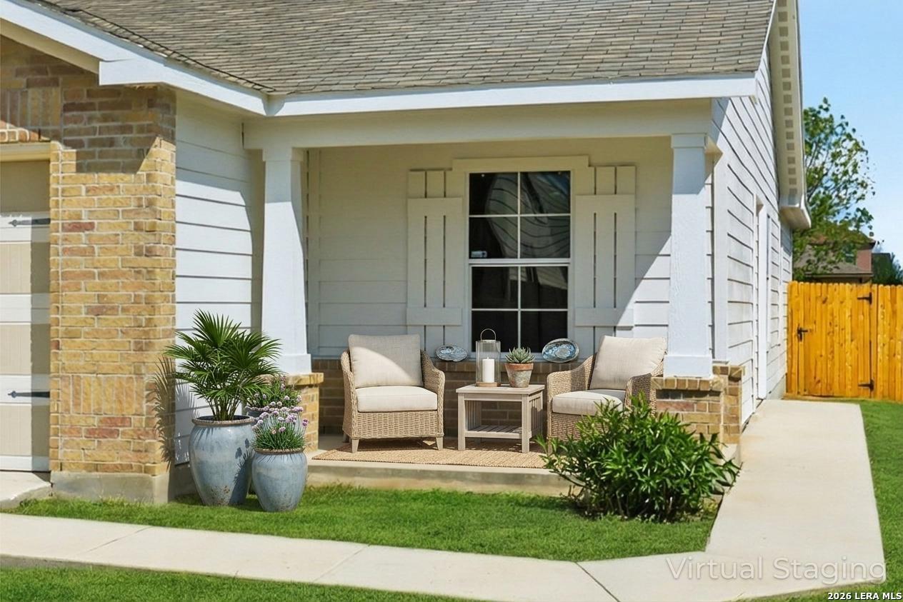 Welcome to this beautifully updated 3-bedroom, 2-bath home nestled in the quiet neighborhood of Meadows of Copperfield. Offering 1,327 square feet of thoughtfully designed living space, this home features abundant natural light, vaulted ceilings, and brand-new laminate flooring throughout, creating a bright, airy feel and enhancing the sense of spaciousness. Major updates include a new roof (2022) and a new A/C system (2023), providing peace of mind for years to come. Step inside to a welcoming open-concept living area that flows seamlessly into the updated kitchen and separate dining area. The kitchen features tall cabinets, ample counter space with new quartz countertops, and a brand-new sink, faucet, and disposal, along with a new dishwasher, stove, vent hood, and mircrowave-perfect for both everyday living and entertaining. The private primary suite offers a relaxing retreat, featuring an ensuite bathroom with an oversized soaking tub and a spacious closet. Two additional bedrooms, a full guest bath, and a dedicated laundry room complete the interior layout. Both bathrooms have been updated with new faucets, quartz countertops and new toilets. Enjoy outdoor living in the spacious backyard with a privacy fence-ideal for gatherings or quiet evenings at home. A two-car garage adds convenience and extra storage. Conveniently located near Loop 1604 and I-35, and just minutes from Randolph AFB, this move-in-ready home perfectly blends comfort, style, and accessibility. Don't miss your opportunity to make it yours!
