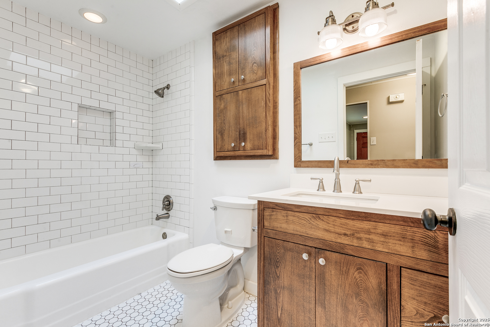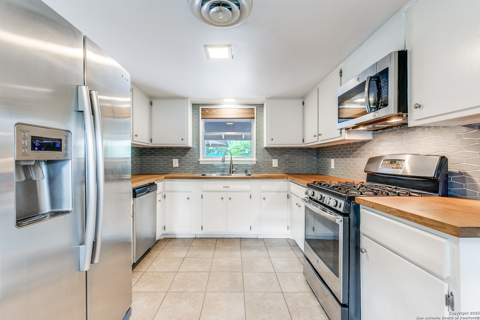 Nice 3-Bedroom, 2-Bathroom Home in Northwood Neighborhood in San Antonio, TX. Great Location Near HWY-410 & Harry Wurzbach Rd, Minutes to the Alamo Quarry Market, McNay Art Museum, Restaurants, Entertainment, & More. Enter to Spacious Living/Dining Area Open to Gourmet Kitchen, Finishes Include Tiled & Vinyl Wood Flooring, Recessed Lighting, & Neutral Paint Colors. Kitchen Features Lots of Counterspace, Tiled Backsplash, Stainless Steel Appliances, Sufficient Cabinet Space, & Large Apron Sink. Primary Suite with Great Natural Light, Ceiling Fan, Renovated Full Bathroom, Walk-In Shower, w/ Jack & Jill Closets. Nicely Sized Secondary Bedrooms, Full Bathroom with Tub/Shower Combo. Laundry Adjacent to Garage, Washer/Dryer Connections. Huge Backyard with Privacy Fence. Pets Case-by-Case, N.E.I.S.D.