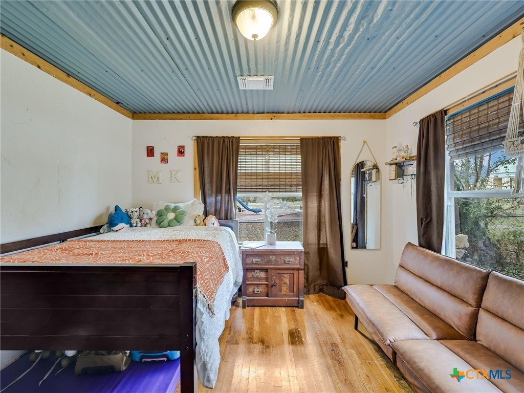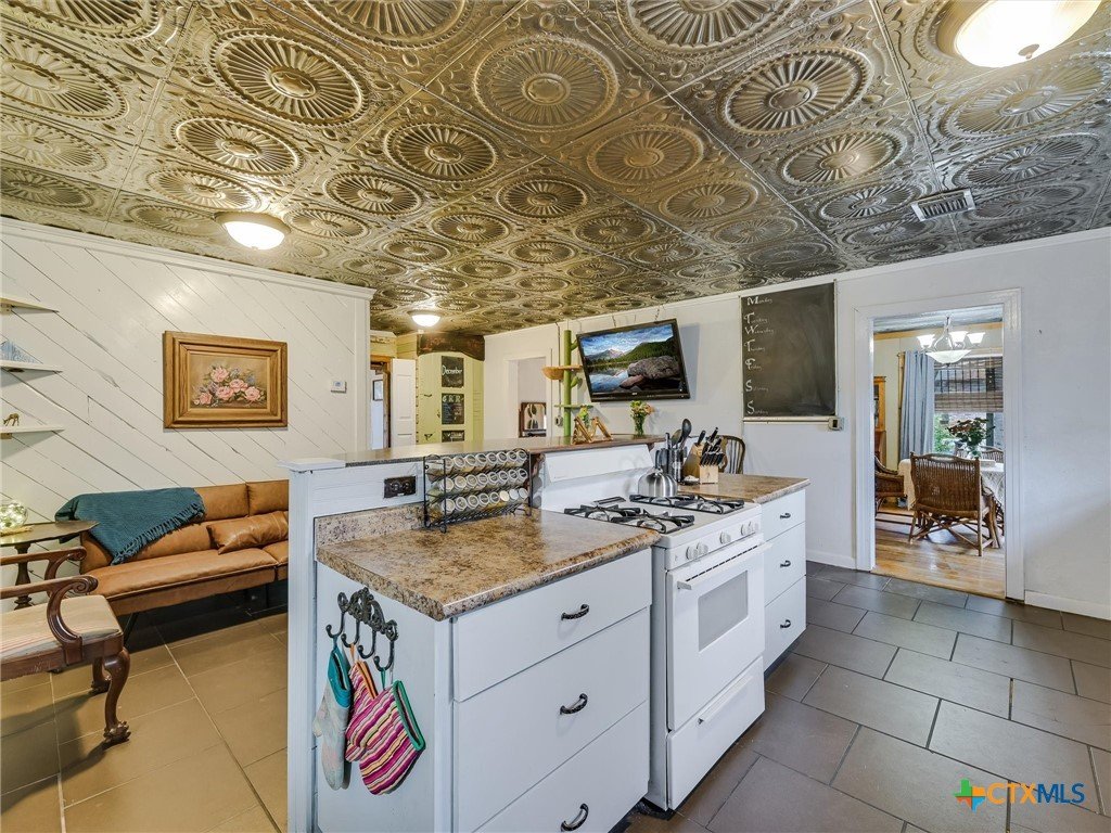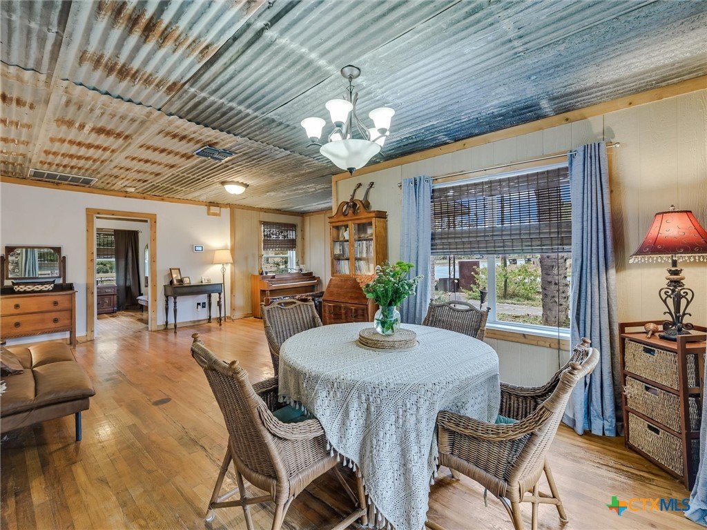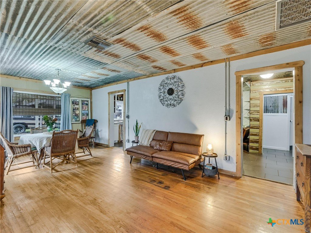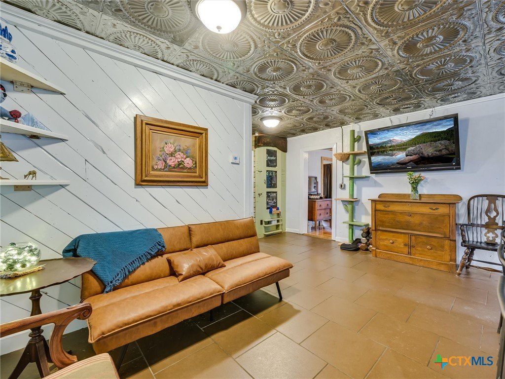 This charming 3-bedroom, 1-bath home bursting with character is nestled on nearly half an acre in the heart of the Dunbar historic district of San Marcos. This unique property seamlessly blends vintage charm with modern convenience, offering a rare opportunity to own a piece of history in a prime location. Step inside and fall in love with the home’s timeless features, including original wood floors that exude warmth and the rustic tin ceilings in the living/dining areas add a distinct, one-of-a-kind touch. The kitchen/second living area features beautifully stamped tin ceilings, elevating the space with vintage elegance. Uniquely painted, refurbished wood siding adds a spark of personality and ensures this home stands out with its artistic flair. The outdoor space is equally enchanting, with nearly half an acre shaded by a variety of mature trees, including fruit trees, pecan, and black walnut. The property is equipped with an irrigation system to keep the fruit trees and garden area thriving, making it ideal for anyone with a green thumb or a love for fresh, homegrown produce. Location is everything, and this home delivers! Enjoy being within walking distance to the lively restaurants and bars on the square and only about a mile from Texas State University and the San Marcos River. Future trails connecting the neighboring park to the river are already in the works, adding even more value and accessibility to this incredible property. This historic gem offers not just a home, but a lifestyle filled with charm, character, and convenience. Don’t miss the opportunity to own this one-of-a-kind property in one of San Marcos' most sought-after locations. Welcome home!