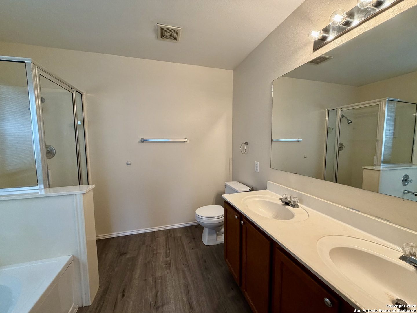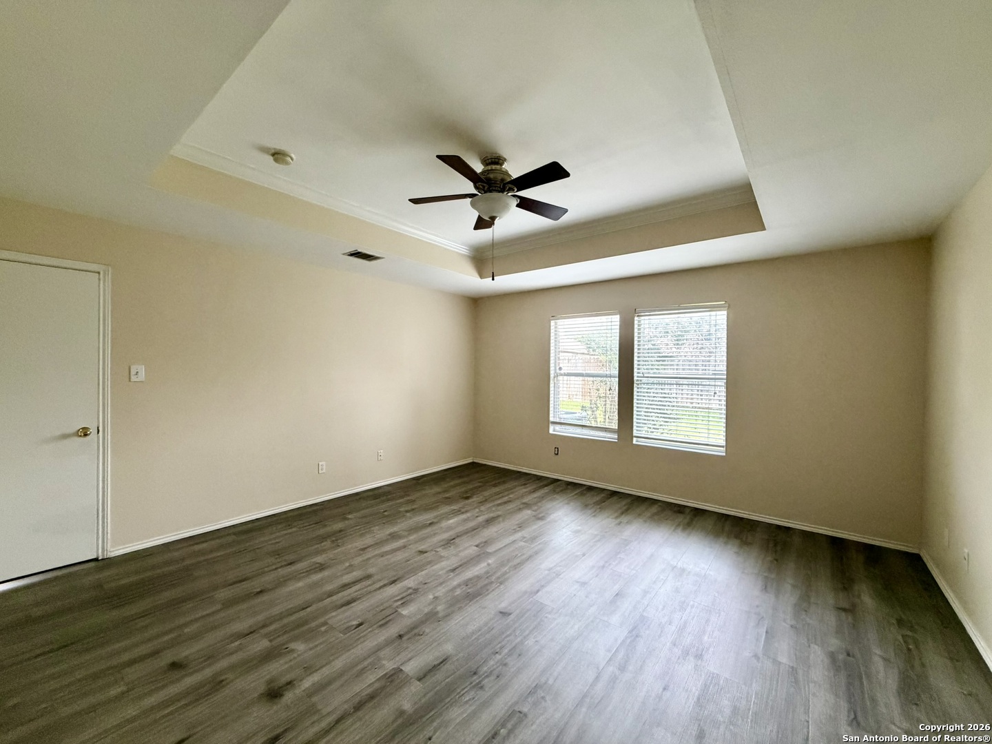 This beautiful Northwest side all brick, immaculately well-kept 3bed, 2bath single story home is nestled in Overlook @ Carriage Hills subdivision. As you walk through the front door, enjoy the open airy concept.*Spacious master bedroom with decorative trey ceiling & large walk-in closet * Master bath features separate garden tub & shower* No carpet* All laminate wood flooring except the entry and half bathroom are tiles.*Close to UTSA, USAA, LA CANTERA, IH10, LOOP 1604*