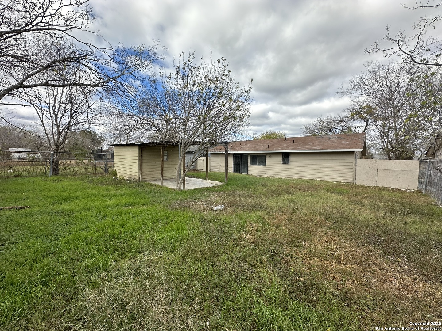 4-Bedroom, 2-Bathroom Home Near Lackland AFB, Hwy-410 & Old Pearsall Rd. Great Location Convenient to Major Intersections & Highways, Downtown, & Major Employers. Large, Fenced Yard & Quiet Street. Covered Front Porch Enters to Living Room with Wood-Vinyl Flooring. Large Kitchen with Gas Cooking Connection, Great Natural Light & Sliding Doors to Backyard. Nicely-Sized Primary Bedroom with New Carpet, Full Bathroom with Walk-In Shower. Secondary Bedrooms have New Carpet, Full Bathroom with Tub/Shower. Laundry Connections off Kitchen in Utility Room, Huge Converted Garage could be 4th Bedroom, Secondary Living, or Playroom. Large Backyard with Detached Shed with Covered Patio Slab. Pets Case-by-Case.