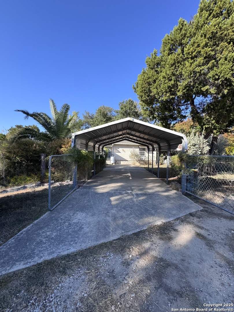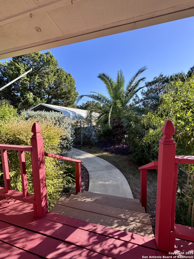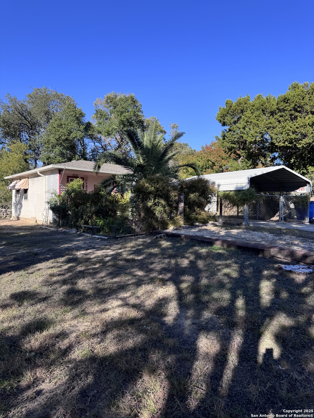 Charming 2-bedroom, 2-bath home on a 0.25-acre corner lot in Canyon Lake. This property features mature trees and established landscaping. The front porch has been repaired and freshly painted, and the back porch has been fully replaced and painted as well. Additional exterior updates include gutters and a rainwater collection barrel added in 2021. Inside, the home offers an open floor plan, a spacious kitchen, and a primary suite with a large walk-in closet and full bathroom. The secondary bedroom functions well as a guest room or home office. The lot includes a large carport, fenced front and back yard areas, a rear courtyard, and a sizable storage building. The corner lot layout provides extra open space and a larger overall feel. Recent system updates include a roof replacement in 2019, HVAC replacement in 2024, water heater replacement in 2025, and a septic pump-out in 2025. Located in Canyon Springs Resort with access to a neighborhood pool, park, playground, and public boat ramp. Only minutes from local dining, shopping, the Guadalupe River, and Canyon Lake recreation. Approximately 40 minutes from San Antonio International Airport. Suitable for full-time living, a second home, or an investment property. Schedule your showing today!