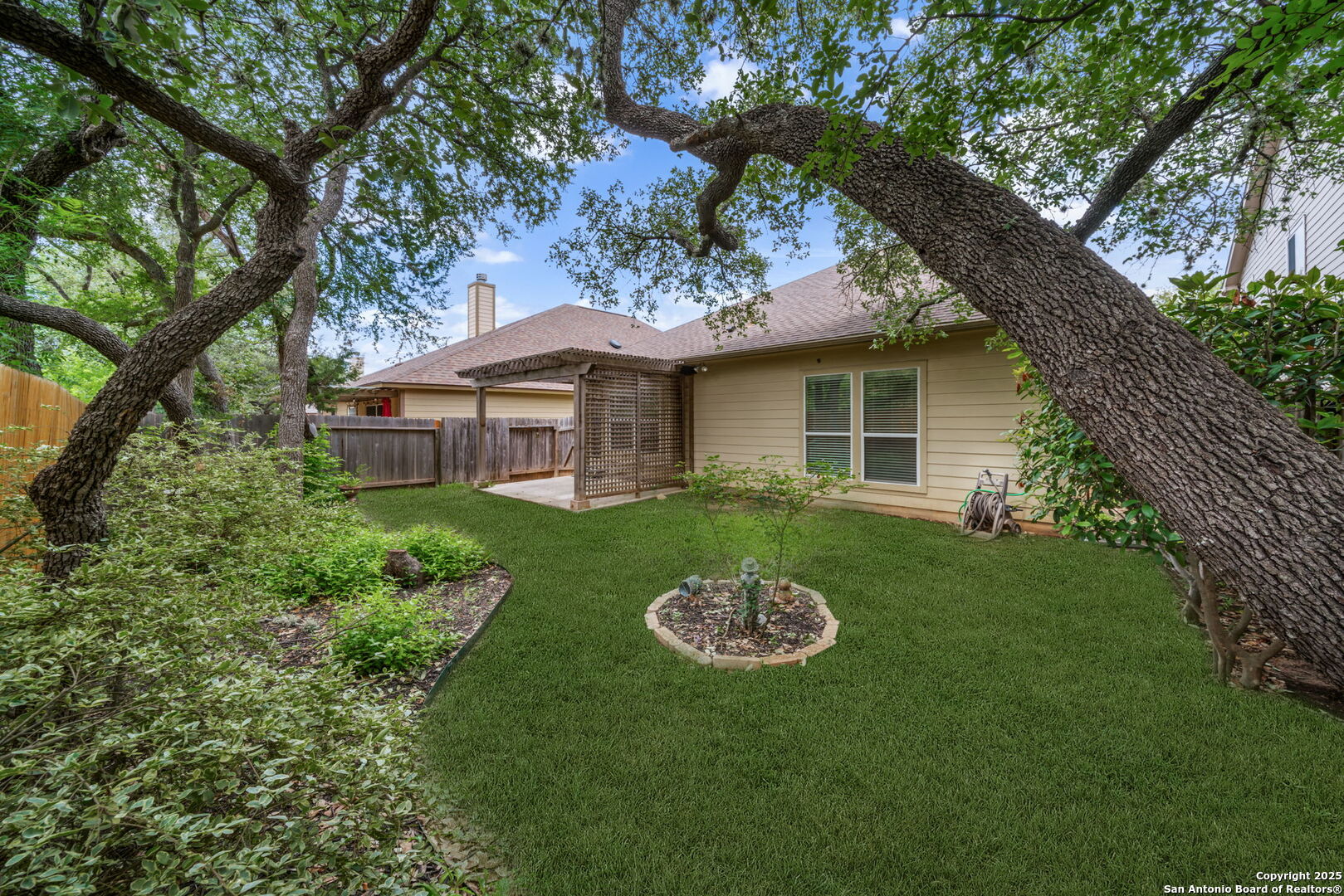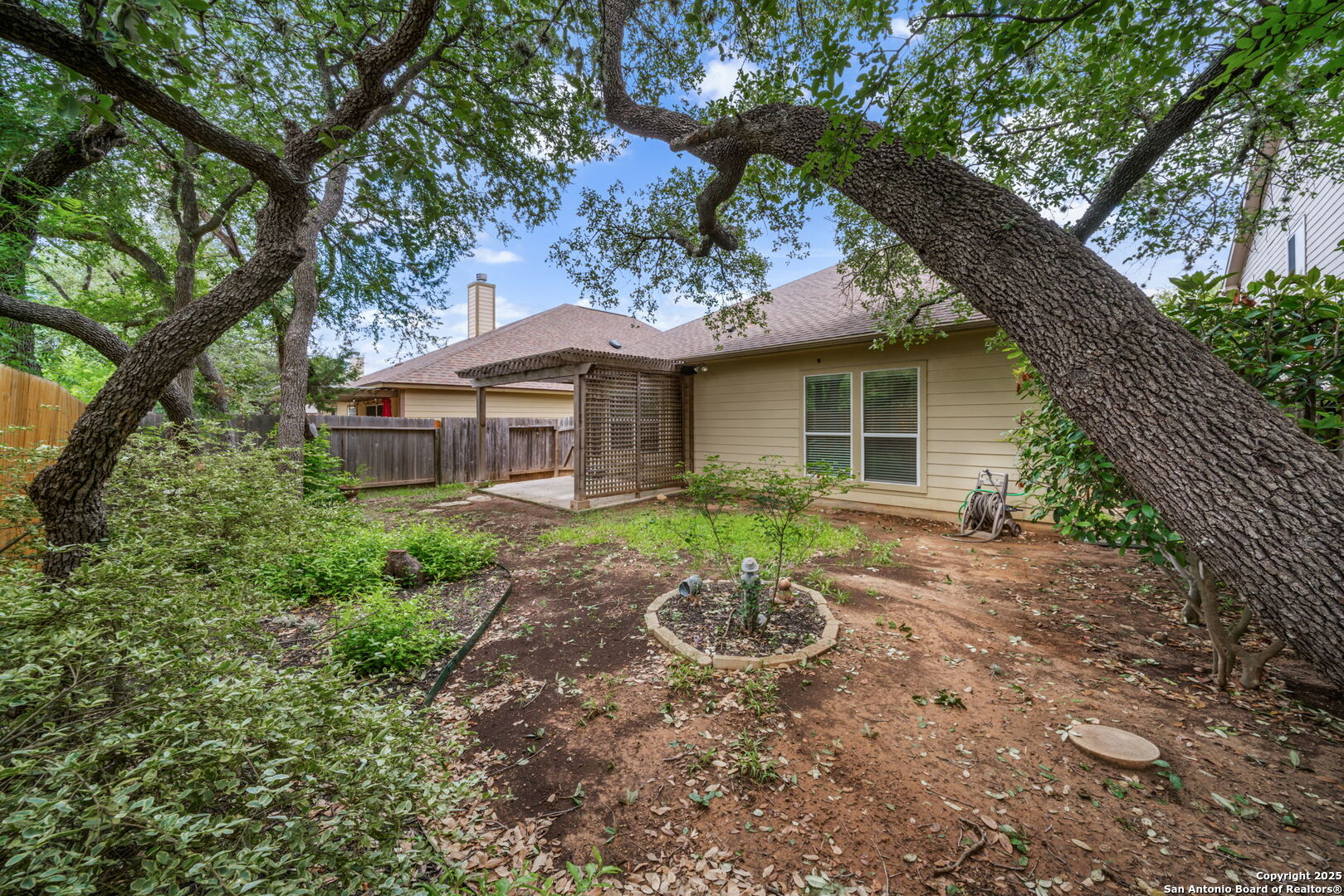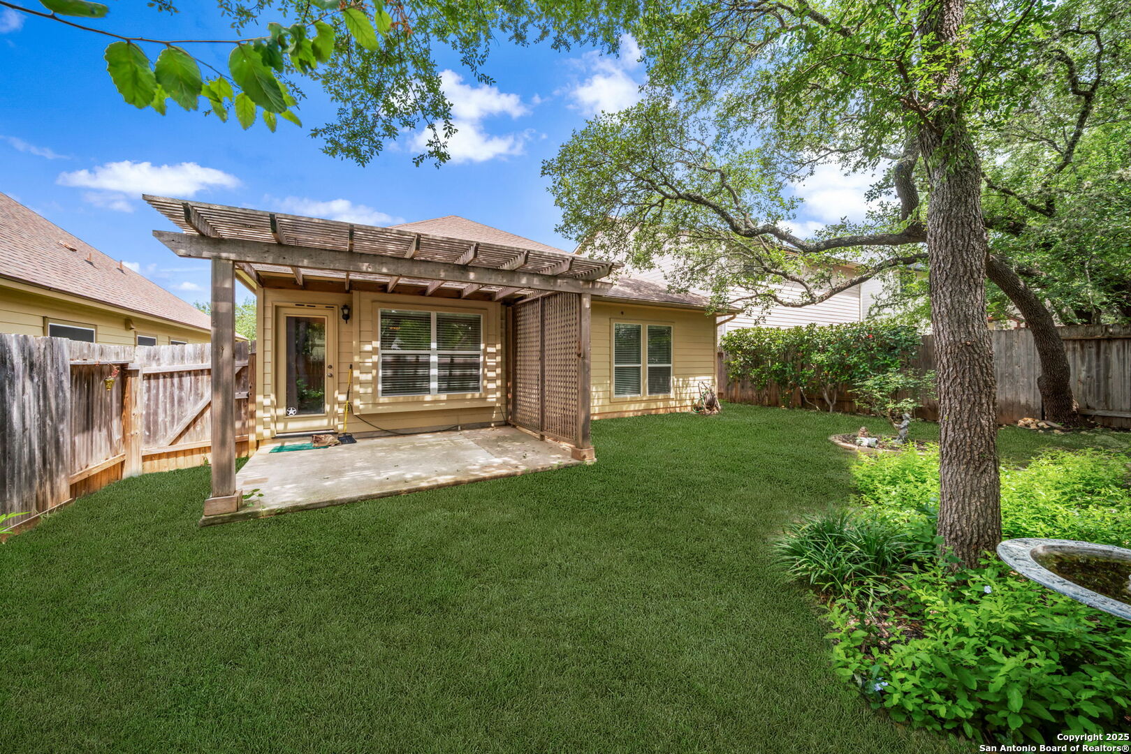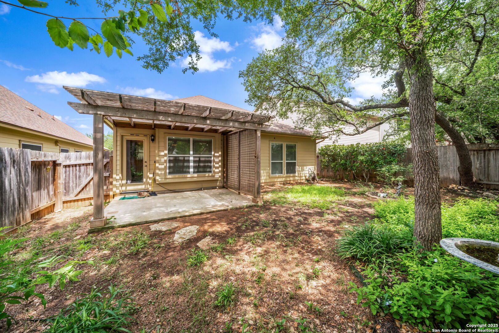 Beautiful and well built Medallion home located in Eagle Bluff Subdivision. Perched on a slope with a level backyard, this home has an entry way that leads into an inviting living room with nice wood floors. The living area also features a wood burning fireplace and can accommodate a dining room table if so desired. The kitchen opens to the living area and features all granite countertops, ceramic tile floors and has a convenient island as additional cooking space. The kitchen opens up to a cozy patio with a pergola and overlooks a tree studded backyard that is easy to manage. The Main bedroom is split from the other two bedrooms and has a full bath with double vanities and tub and shower are separate. This home is located near the Medical Center, USAA and The University of Texas at San Antonio. Nice quiet home and a very convenient location!