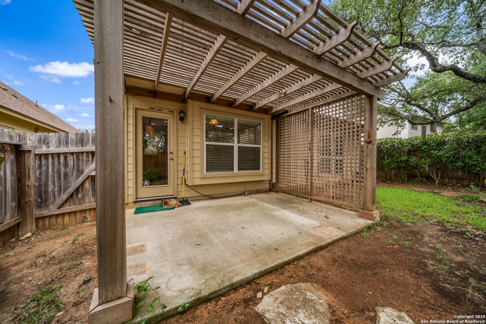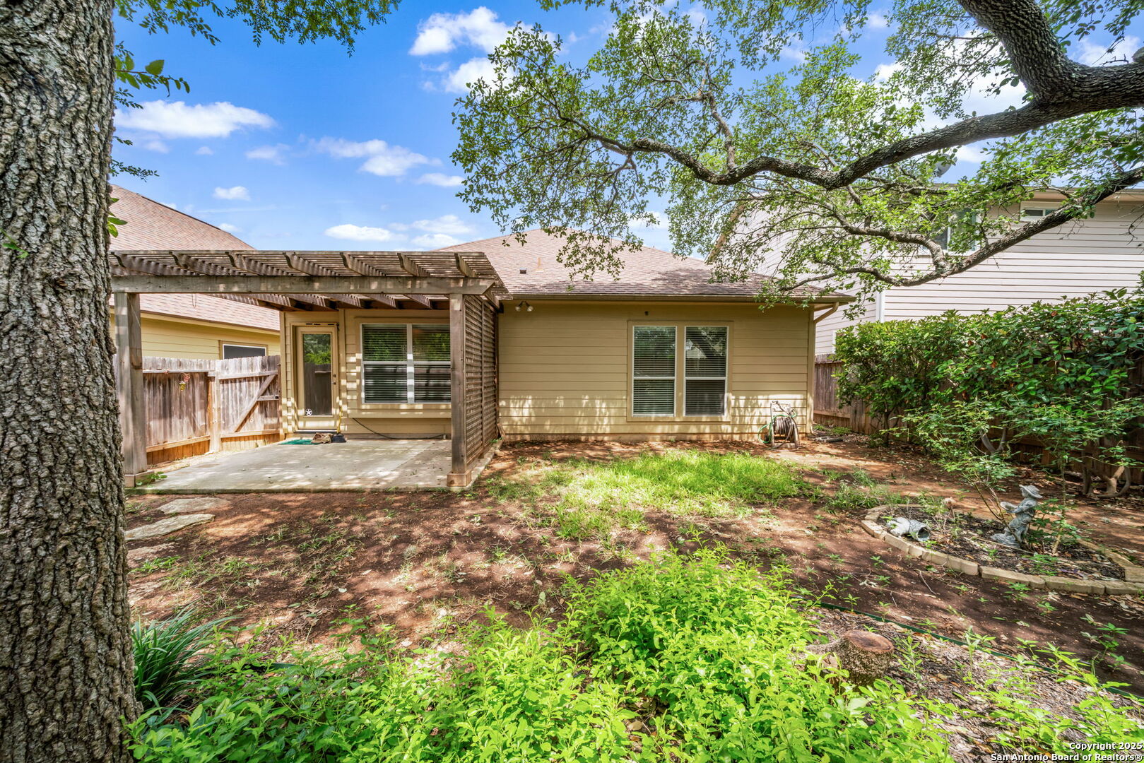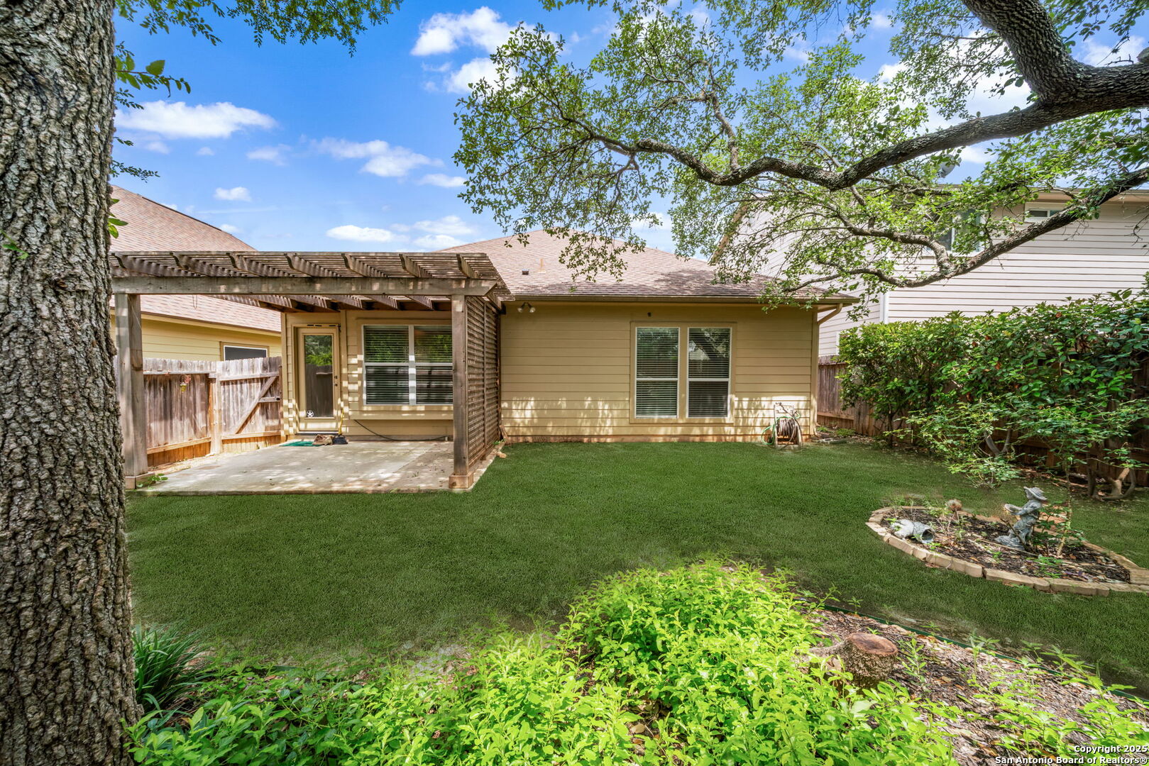 Beautiful and well built Medallion home located in Eagle Bluff Subdivision. Perched on a slope with a level backyard, this home has an entry way that leads into an inviting living room with nice wood floors. The living area also features a wood burning fireplace and can accommodate a dining room table if so desired. The kitchen opens to the living area and features all granite countertops, ceramic tile floors and has a convenient island as additional cooking space. The kitchen opens up to a cozy patio with a pergola and overlooks a tree studded backyard that is easy to manage. The Main bedroom is split from the other two bedrooms and has a full bath with double vanities and tub and shower are separate. This home is located near the Medical Center, USAA and The University of Texas at San Antonio. Nice quiet home and a very convenient location!