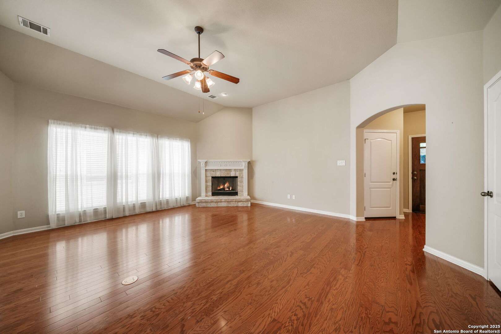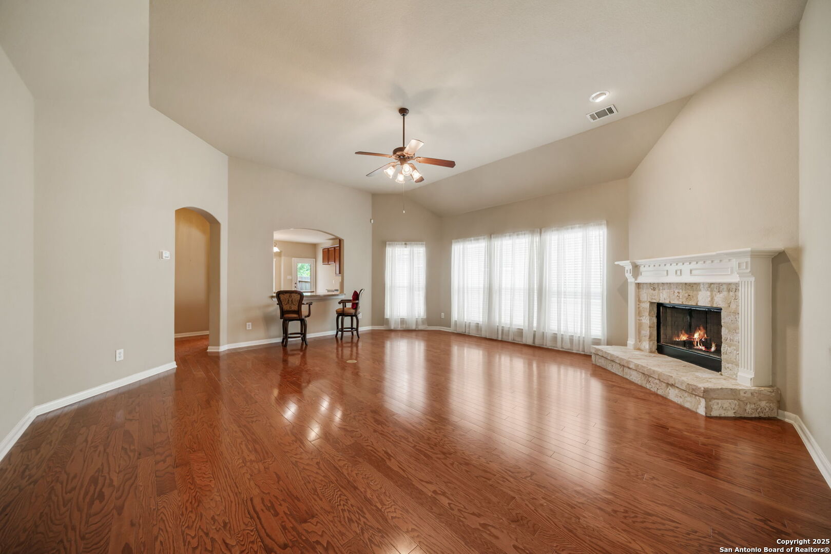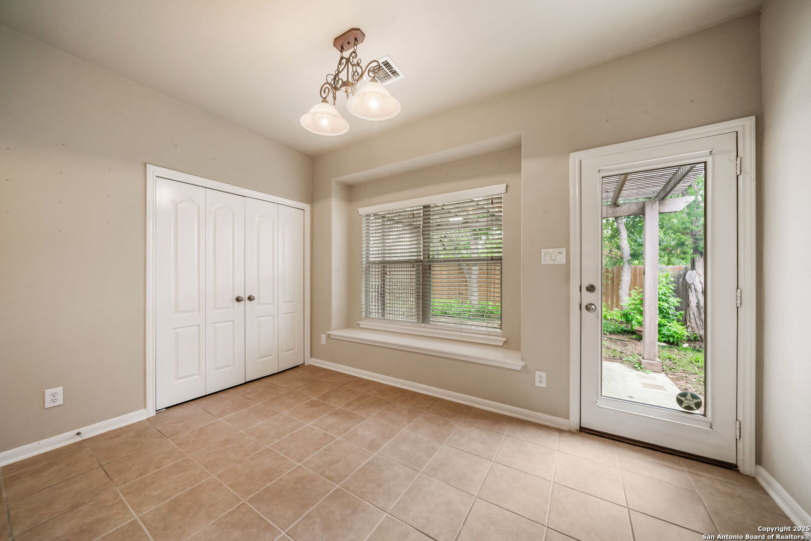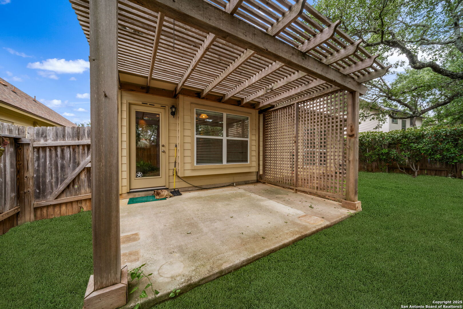 Beautiful and well built Medallion home located in Eagle Bluff Subdivision. Perched on a slope with a level backyard, this home has an entry way that leads into an inviting living room with nice wood floors. The living area also features a wood burning fireplace and can accommodate a dining room table if so desired. The kitchen opens to the living area and features all granite countertops, ceramic tile floors and has a convenient island as additional cooking space. The kitchen opens up to a cozy patio with a pergola and overlooks a tree studded backyard that is easy to manage. The Main bedroom is split from the other two bedrooms and has a full bath with double vanities and tub and shower are separate. This home is located near the Medical Center, USAA and The University of Texas at San Antonio. Nice quiet home and a very convenient location!