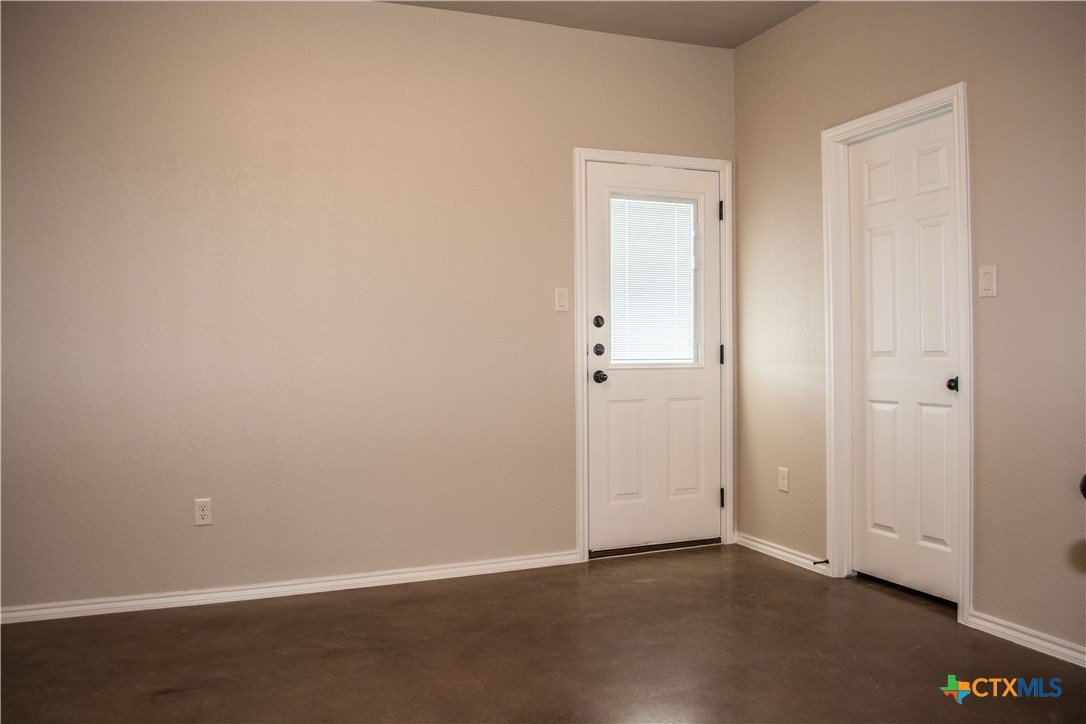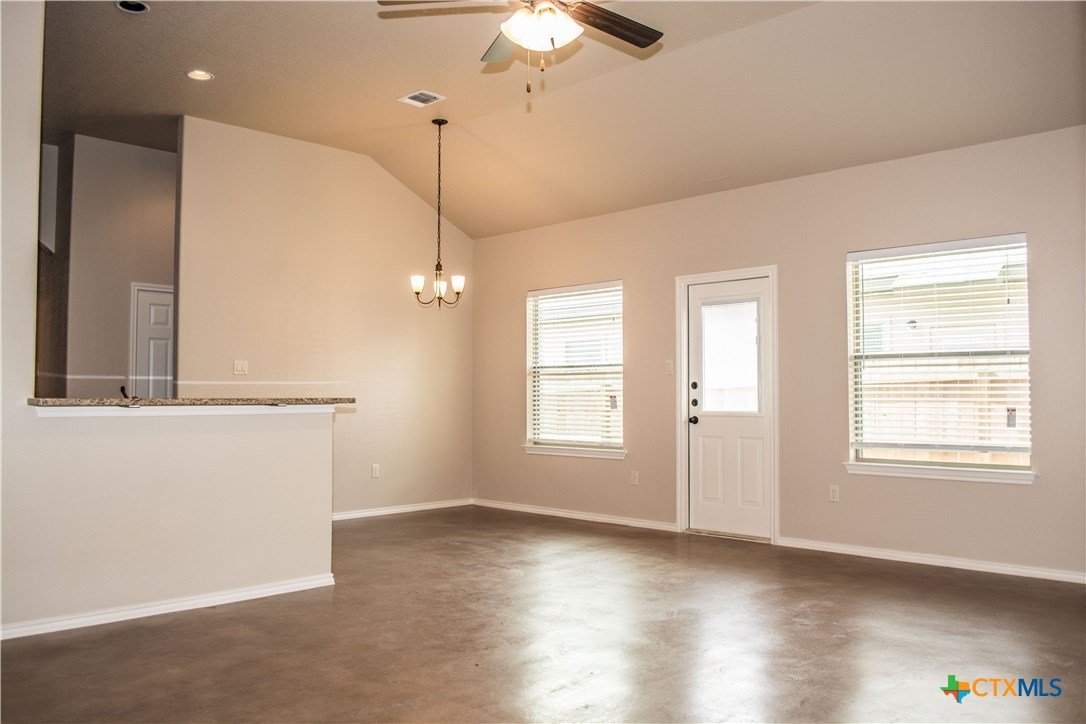 Take a look at this three-bedroom, two bath home located in the City of New Braunfels not far from Creekside Shopping Center. Soaring ceilings, stained concrete floors, granite counter tops in the kitchen and baths. The kitchen also features appliances and a breakfast bar and a place for your breakfast table. Bathrooms have ceramic tile surrounds in showers. Laundry room located just in between the kitchen and hallway. Master located in the back with its own entry door to the back yard.