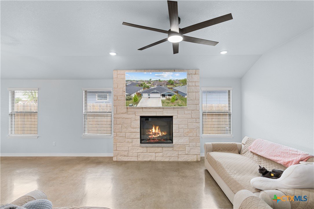 HONEY.....STOP THE CAR!!! Looking for space, convenience and an all around well-cared for home that has all the amenities and then some?? Look no further, this 1 owner 4/3/3 home has just what you are looking for! As you enter through the front door the spacious foyer welcomes you!! To your right are the 2 minor rooms with ceiling fans, spacious closets and a bathroom in between for convenience for the little ones. Across the hall on the left hand side is another Master Bedroom with its own bathroom (Perfect for a Mother-in-law suite) or the growing teenager. Continue on to the open floor-plan of the kitchen, living and dining area where you will find an electric fireplace for the cozy night or just enjoy the ambience of it all while your favorite meal is being prepared in the kitchen; custom cabinetry with a FULL stainless steel package including the refrigerator (BTW, the TV above the fireplace stays). Tucked away in the hallway behind the kitchen is the Master Suite, spacious for a California King Bedroom suite, his and her vanities in the master bath, separate garden tub to soak those tired bones & a separate shower to boot; large walk-in closet with shelving. The laundry room is spacious with a cubby for storage along with a hanging rod for clothes. ALSO...this home is equipped with a TESLA charger that has a 24' wire, 24 solar panels PAID IN FULL and a Solar Edge Inverter. Don't like mowing, no worries...small backyard with a covered patio to BBQ on those summer nights. Schedule your showing today! Owner MUST have 3 hour notice due to pets! Monday - Saturday showings available from 11am - 6pm