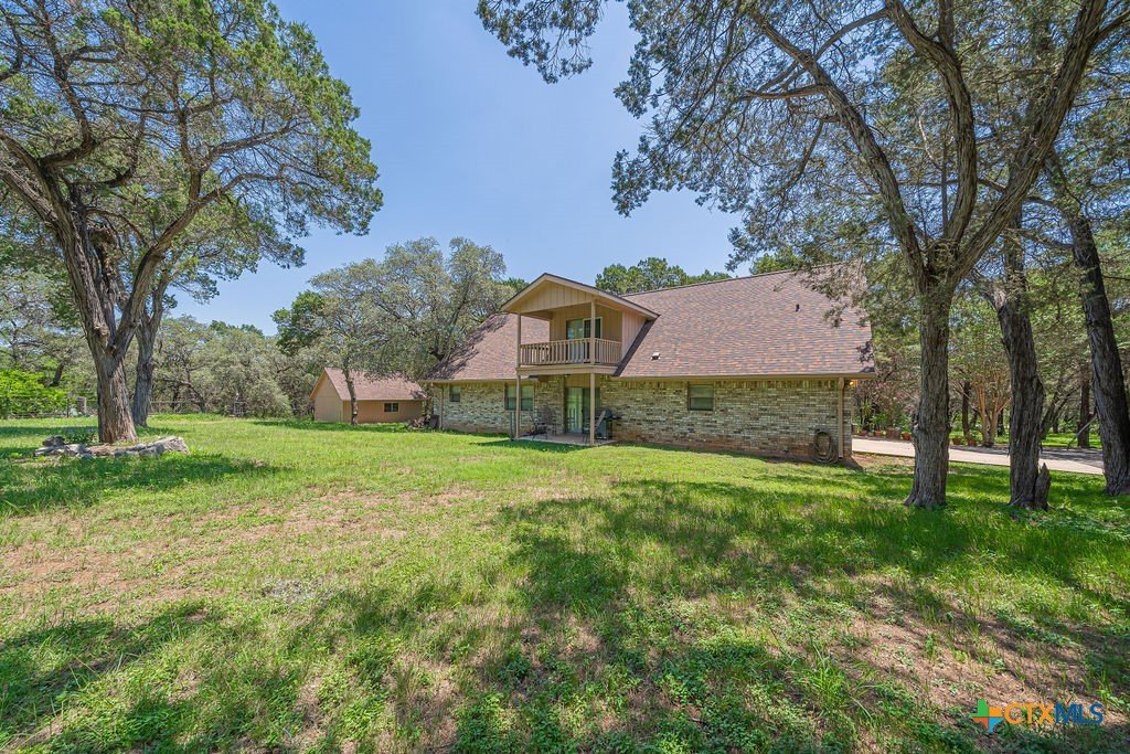 BELOW APPRAISED VALUE!!! Welcome to this custom home on 4.3 acres in the beautiful hill country. No HOA and no city taxes. 18 X 25 Shop. Ample room for horses and great yard for dogs. VERY WELL MAINTAINED HOME. New roof 2022, driveway asphalt ($10,980) done 2021, bathroom faucets and master toilet 2025, kitchen and all baths textured and painted 2025 ($6000), well house built 2024, kitchen sink, faucet and disposal replaced 2025, downstairs sliding glass door and blinds replaced 2023 and upstairs blinds and screen door replaced on the glass door in 2025, septic pumped and drain lines replace from 4 inch to 8 inch in 2025 ($12,000), upstairs carpet replaced 2025, water well replaced 2019. Mature trees with secluded living yet close to everyday essentials. Outside city limits yet close to multiple restaurants, convenient sores and HEB grocery store within 3 miles.