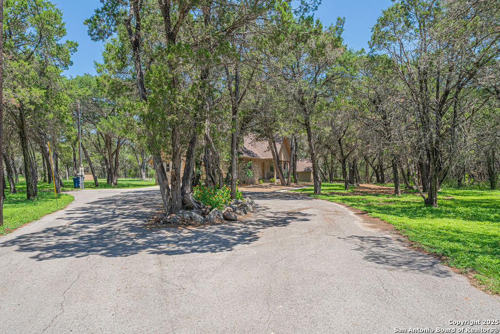 BELOW APPRAISED VALUE! Welcome to this custom home on 4.3 acres in the beautiful hill country. No HOA and no city taxes. 18 X25 Shop. Ample room for horses and great yard for dogs. VERY WELL MAINTAINED HOME. New roof 2022, driveway asphalt ($10,980) done 2021, bathroom faucets and master toilet 2025, kitchen and all baths textured and painted 2025 ($6000), well house built 2024, kitchen sink, faucet and disposal replaced 2025, downstairs sliding glass door and blinds replaced 2023 and upstairs glass door blinds and screen door in 2025, septic pumped and drain lines replace from 4 inch to 8 inch in 2025 ($12,000), upstairs carpet replaced 2025, water well replaced 2019. Mature trees with secluded living yet close to everyday essentials. Outside city yet close to multiple restaurants, convenient store and an HEB grocery store within 3 miles.
