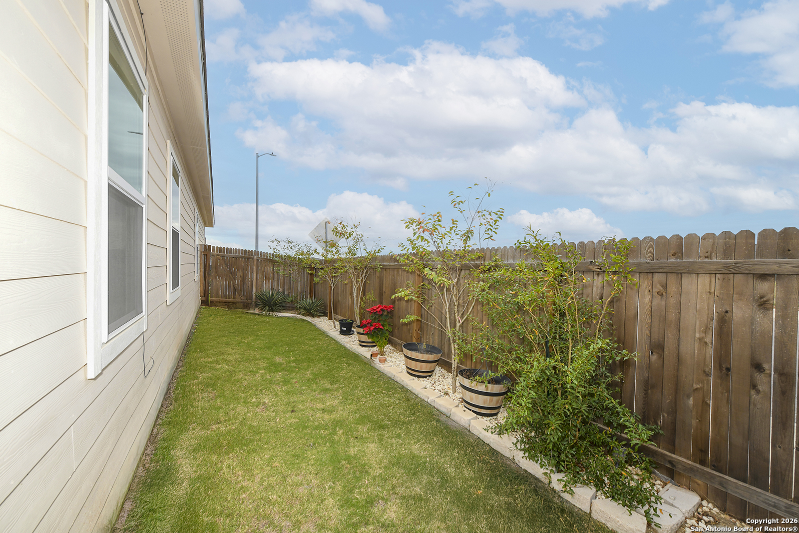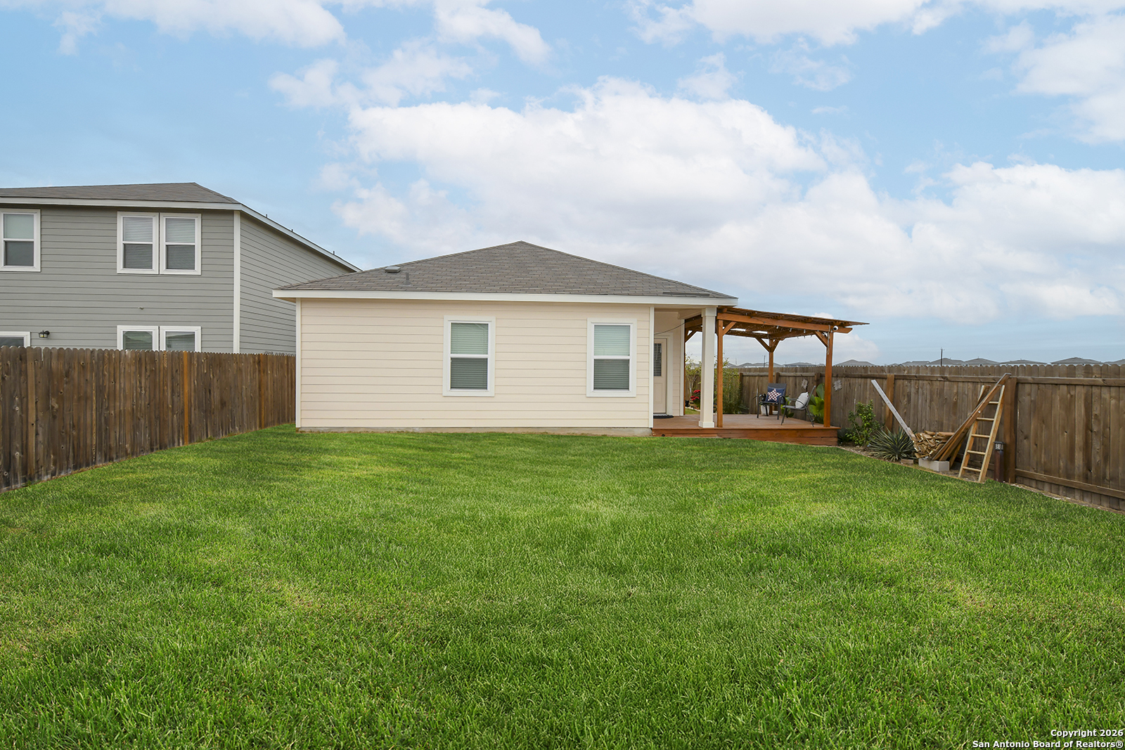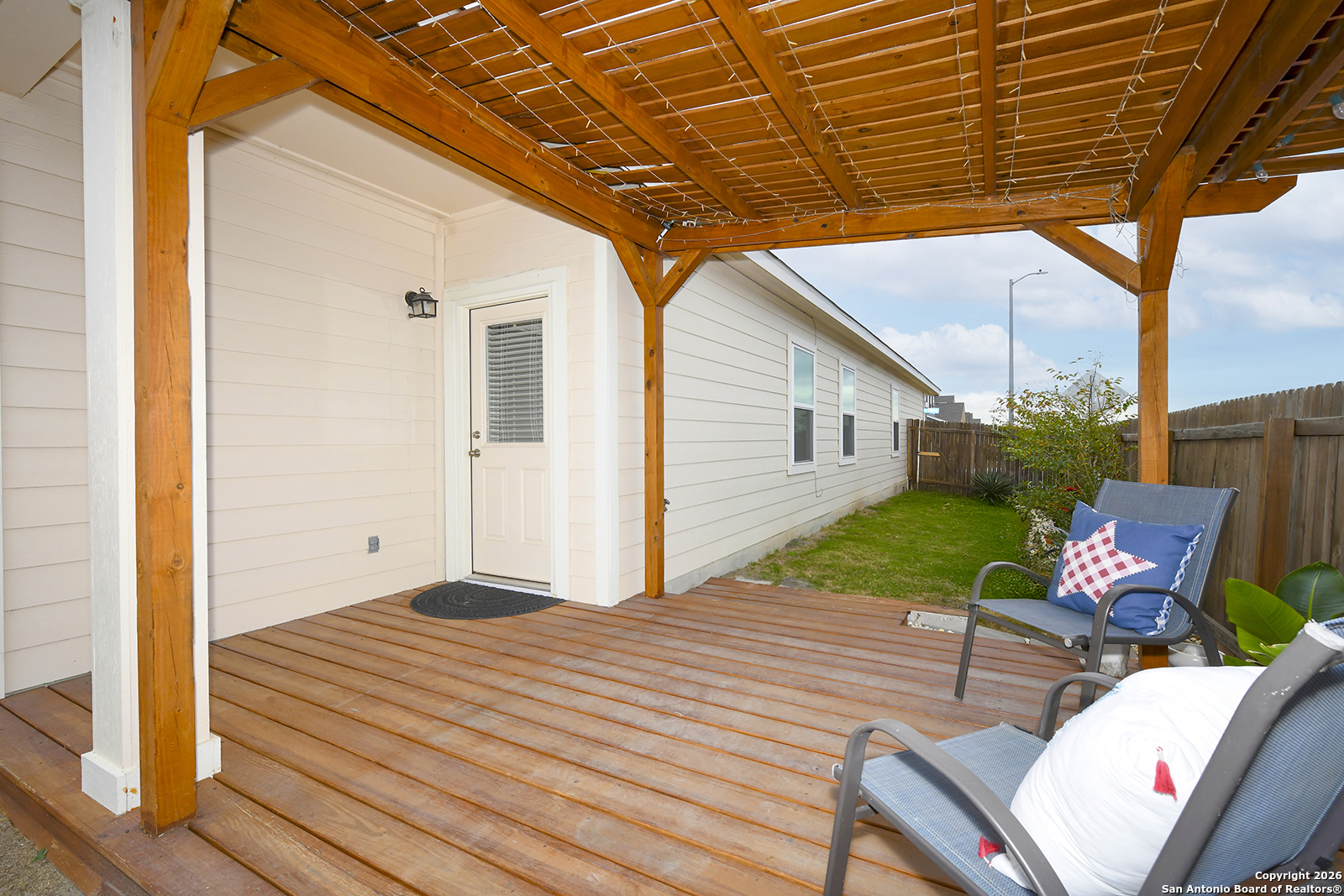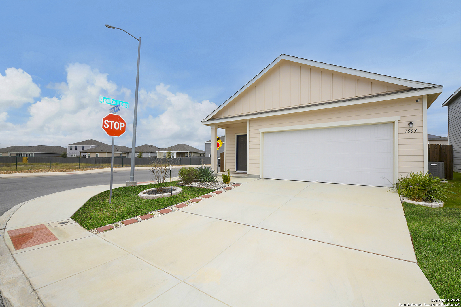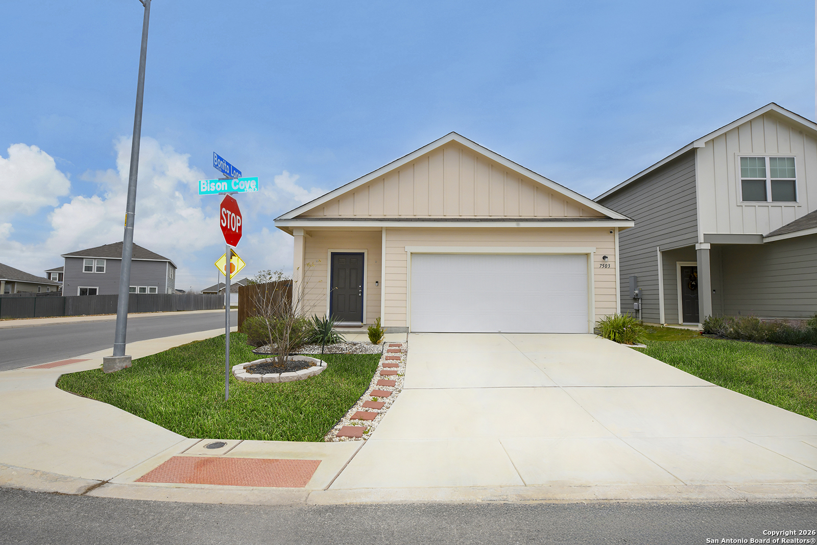 Welcome home to 7503 Bison Cove, a well-kept single-story home on a desirable corner lot in one of the most convenient pockets of the Far West Side. This 3-bedroom, 2-bath home with a 2-car garage delivers the kind of layout buyers want and the upgrades that make everyday living easier. Inside, the floor plan is open, functional, and easy to live in. No stairs. No wasted space. Just a comfortable flow that works whether you're hosting friends or enjoying a quiet night at home. The home includes a water softener, electric garage door opener, and thoughtful touches throughout that reflect pride of ownership. Step outside and this home really separates itself. The rear patio deck with pergola creates the perfect spot for grilling, relaxing, or entertaining. Being on a corner lot gives you extra breathing room, added privacy, and a more open feel. The front and backyard landscaping with mature trees adds shade and curb appeal, while the extended wood fence completes the space and makes the yard feel private and finished. Location is a huge win here. You're just minutes from Alamo Ranch shopping, dining, and entertainment, with easy access to grocery stores, restaurants, and everyday conveniences. Whether it's a quick dinner out or weekend shopping, everything you need is near by, with major roads nearby to keep commuting simple. This home checks the boxes buyers are looking for right now: single story, corner lot, outdoor living space, and a prime location. Whether you're a first-time buyer, downsizing, or simply want a smart layout in a growing area, this one makes sense. Homes like this don't sit long. Don't miss the opportunity to make this beautiful home your own. Schedule a viewing today! (Grass images enhanced)