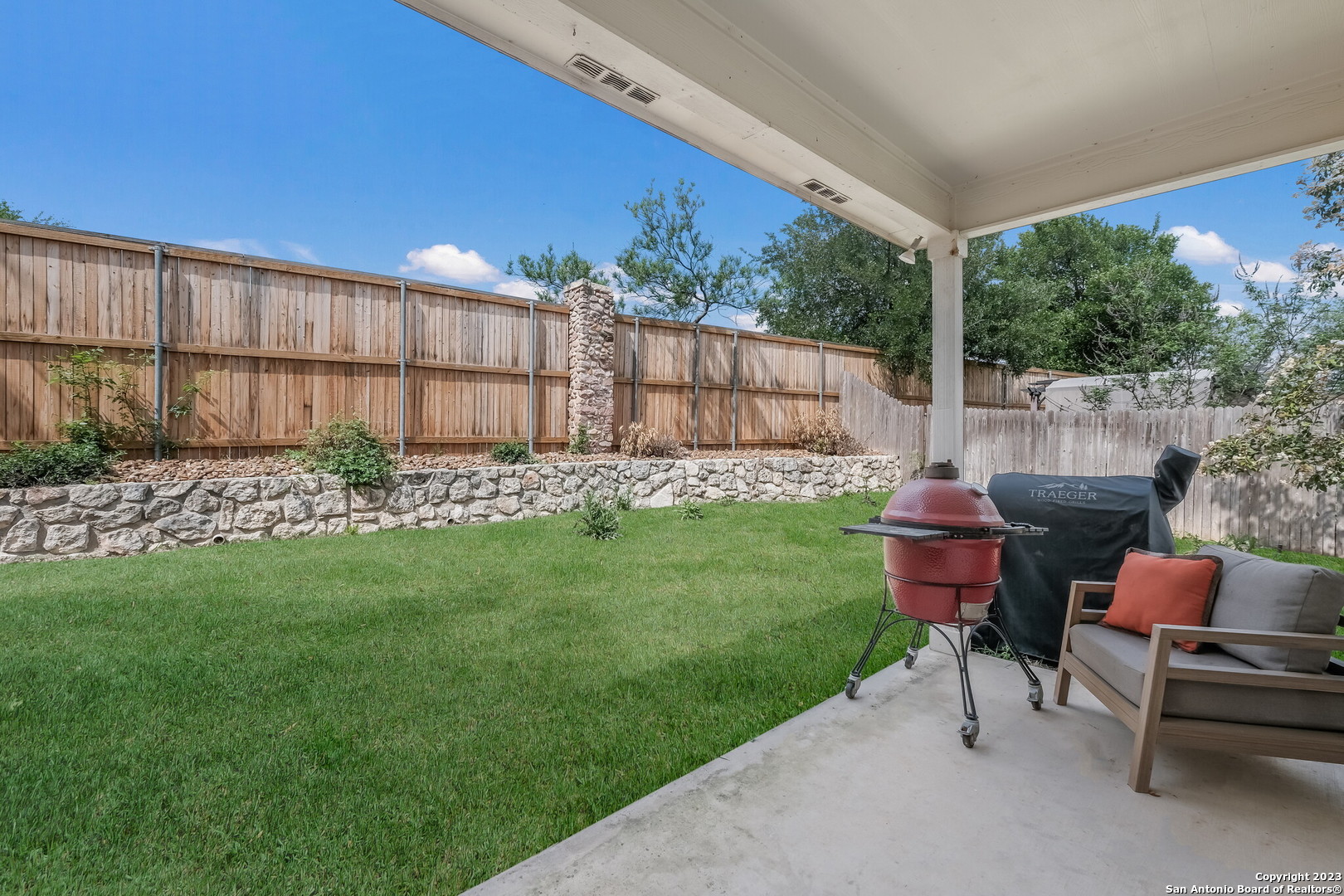 Beautiful one-story home in highly desired Bluffs of Lost Creek! Open & spacious floor plan with 3 bedrooms + office, dining room, and upgrades throughout. Large gourmet kitchen with granite counter tops, updated cabinets and stainless steel appliances. Master suite features garden tub + separate shower. Updated tile & wood laminate flooring, plantation shutters, updated fixtures, washing machine, dryer, & so much more. Easy to maintain backyard with covered patio, sprinklers, mature landscaping, & storage. Enjoy ultimate privacy with no homes behind it. Award-winning Boerne ISD schools. Tenant needs a minimum of 680 credit score. Don't miss out!
