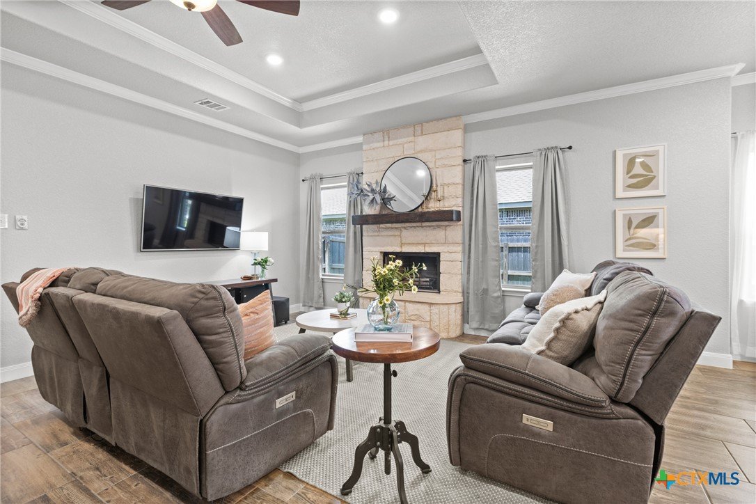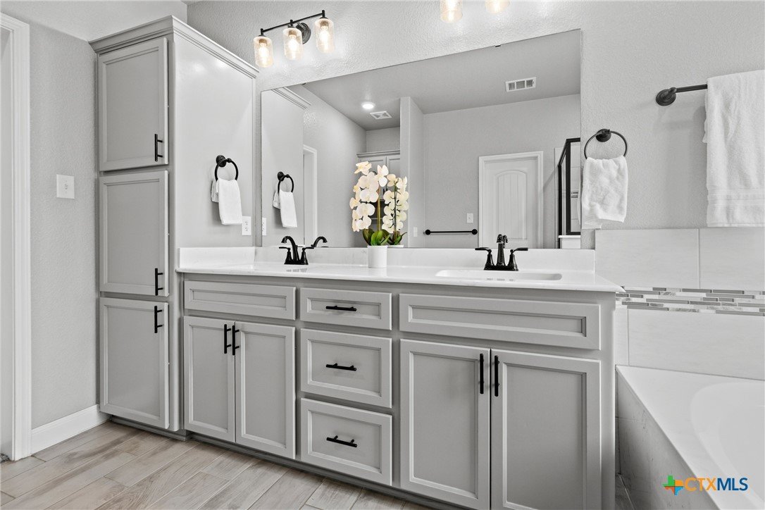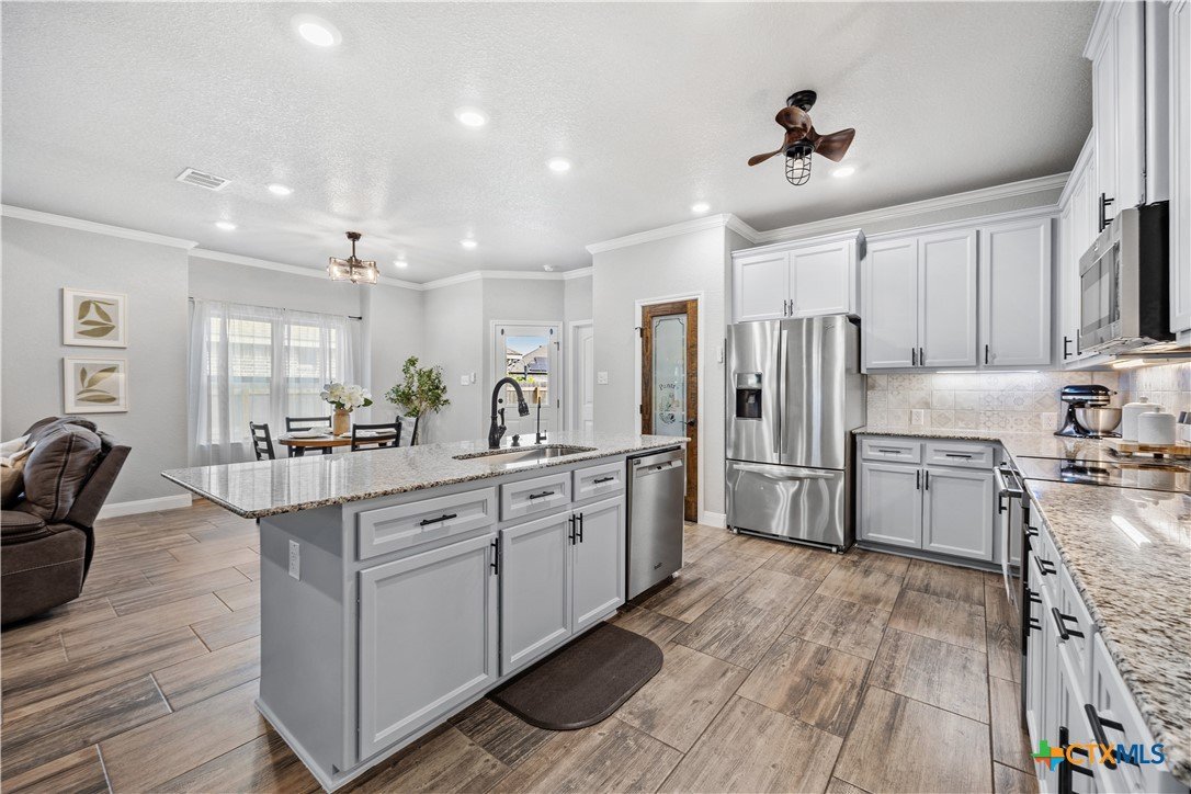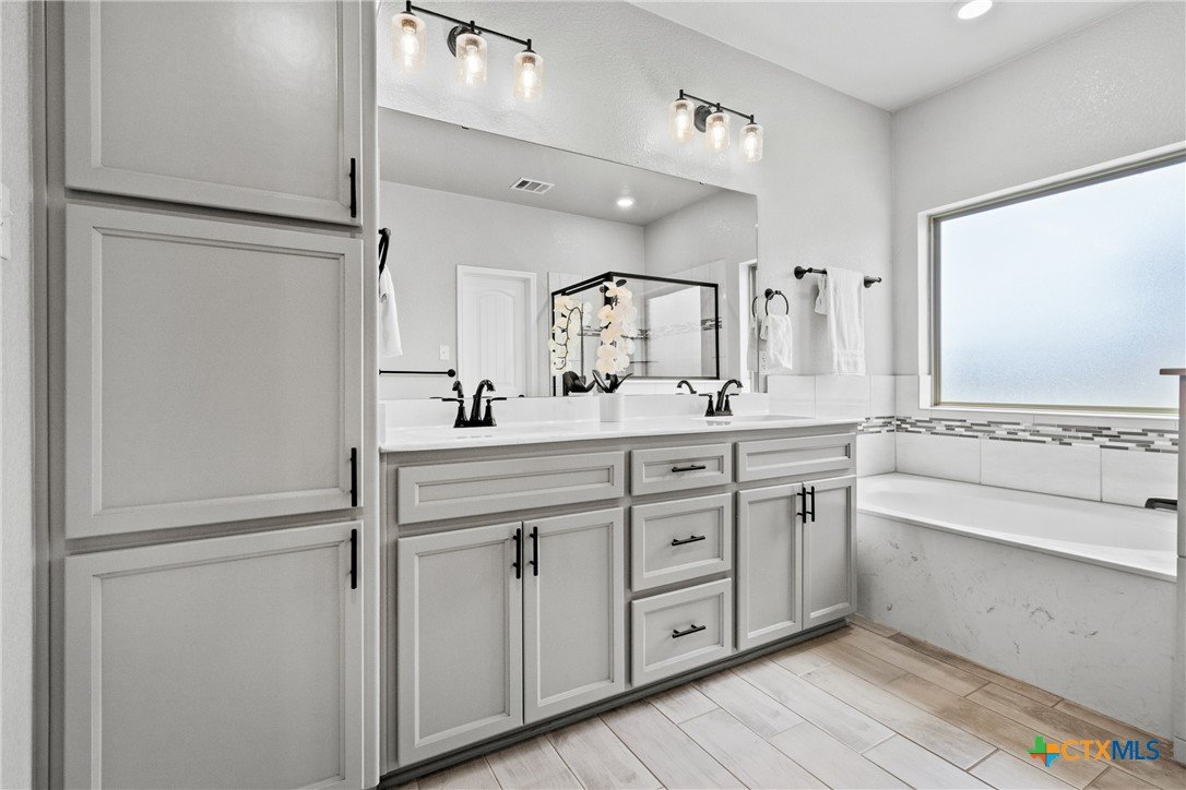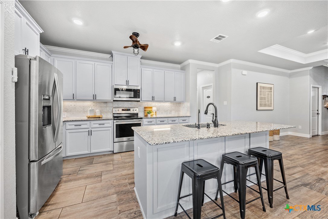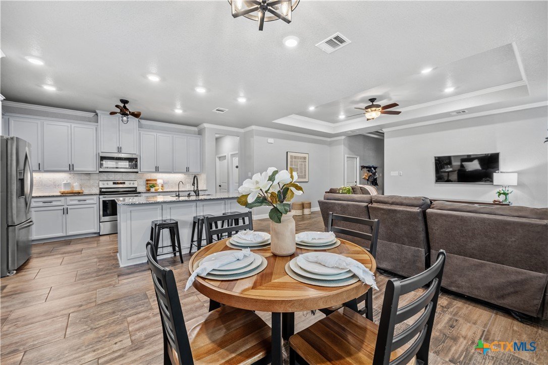 Step into comfort, style, and functionality with this stunning 4-bedroom, 2-bathroom home located in the heart of Belton ISD. Spanning 1,937 square feet, this thoughtfully designed home offers a spacious and open floor plan that balances everyday living with modern elegance. From the moment you enter, you’re welcomed by an airy layout filled with natural light and warm finishes. The generous living area flows seamlessly into the dining space and kitchen-complete with ample cabinetry, bar seating, and a layout perfect for entertaining. The primary suite is privately tucked away and features a spacious bedroom, en suite bath with dual vanities, a soaking tub, and a walk-in closet. The secondary bedrooms are well-sized and thoughtfully positioned to offer privacy and comfort for family or guests. One of the standout features of this home is the rare 3-car garage, offering space for vehicles, storage, or a home gym. Plus, the garage includes a convenient utility sink-ideal for cleanups after projects, gardening, or muddy shoes. Enjoy outdoor living year-round with two distinct outdoor living spaces-whether you’re sipping morning coffee under a covered patio or hosting evening gatherings under the stars, these areas are made to enjoy. Nestled in a quiet, established neighborhood and zoned for highly regarded Belton ISD schools, this home combines thoughtful design, desirable amenities, and a location that supports every stage of life. Don’t miss the opportunity to make this exceptional home yours!