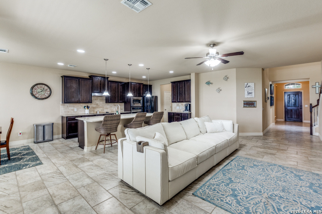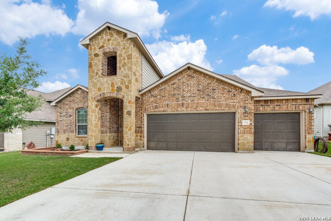 Immaculate, fully updated, and move-in ready, this beautifully maintained home backs to a greenbelt, offering rare privacy with no rear neighbors and a spacious backyard to enjoy the peaceful setting. Featuring a striking brick and stone exterior and a rare three-car garage, the home immediately stands out with its curb appeal. Inside, you'll find a spacious, open layout anchored by an oversized kitchen island-perfect for gathering and everyday living. A dedicated downstairs flex space provides the ideal setup for a home office, or study. The primary suite is generously sized and features a relaxing walk-in shower, double vanity, and an expansive walk-in closet. Upstairs, a huge game room offers endless possibilities for a second living area, media space or playroom, while the secondary bedrooms are all well-sized for comfort and versatility. Located in a quiet neighborhood with convenient access to shopping, dining, and I-35, this home combines comfort, functionality and privacy in one exceptional package. Schedule your private viewing today.
