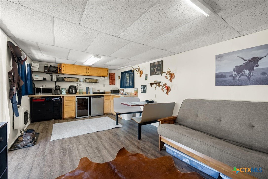 A gorgeous slice of hill country for recreation and hunting, this 40.3 acre property is located in gated Smith Ranch. Secluded with densely covered live oak, cedar, mesquite trees, white brush, persimmon and pear the land is rough and rocky with an abundance of hunting opportunities. Deer, hogs, turkeys, Aoudad and more roam within shooting range. This property features a simple hunters cabin with bunk room, small kitchen/living space, fully connected electrical, and rain water collection. Property includes 4 hunting blinds, 3 animal feeders, 3 water holding tanks for wildlife, fire pit, picnic area with lighting, rough trails and so many opportunities to enjoy nature. About Smith Ranch: all property owners in the ranch have access to seven common areas along the Colorado River for recreation including fishing and swimming, known for catfish and bass. Smith Ranch is a private ranch located on the western edge of Lampasas County and accessed through a private gate. All landowners within Smith Ranch have deeded access to seven "Common Areas" along the Colorado River. Updates include: Exterior paint, laminate flooring in main cabin and outhouse, new interior walls in main cabin, new roof on outhouse. Hunters cabin has full electrical, fiber wifi up to 1 GB, and rain water collection for water source