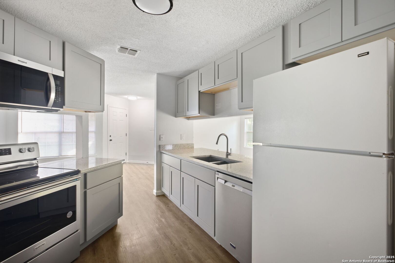 Welcome to your dream rental! This beautifully renovated three-bedroom, two-bathroom, and two-car garage home offers modern upgrades and a fresh, inviting atmosphere. Nestled in a quiet and friendly neighborhood, this property is ready to be your next cozy retreat. Located in the heart of San Antonio, this home is conveniently close to shopping, dining, schools, and parks. With easy access to major highways, you'll enjoy a smooth commute to nearby cities. This home features a renovation, which includes new vinyl flooring, new light fixtures, a renovated kitchen, bathrooms, recessed light in the master bathroom, and crisp and clean grey paint. This property has a generously sized yard perfect for relaxing or entertaining. Don't miss this opportunity to rent a move-in-ready home that combines modern updates with timeless charm. Schedule a viewing today and experience the transformation for yourself! For inquiries or to schedule a tour!