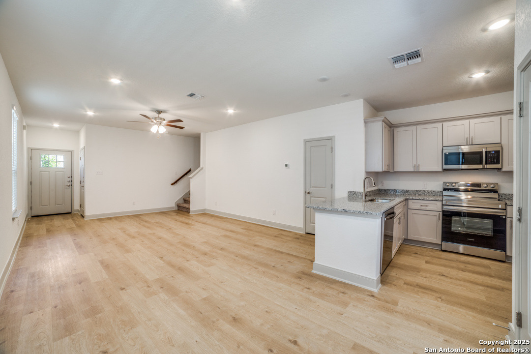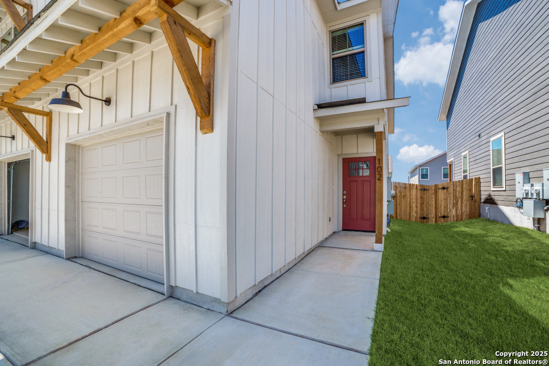 Brand New Construction in a Gated Community Just Minutes from Lackland AFB! This 1,505 sq ft home features 3 bedrooms, 2.5 bathrooms, a 1.5-car garage with extra storage, and a private backyard. Modern upgrades include stainless steel appliances-refrigerator, stove, microwave, and dishwasher-granite countertops, two-inch faux wood blinds, and luxury vinyl plank flooring throughout the downstairs and all wet areas. Enjoy 9 ft ceilings, foam insulation for energy efficiency, and an electric vehicle charging outlet in the garage. Included in Rent: Water/sewer, HOA dues, front yard maintenance, refrigerator, and soon a water softener. Community Amenities: Gated entry, playground, BBQ/picnic area, dog park, and visitor parking. Renter's Insurance Required