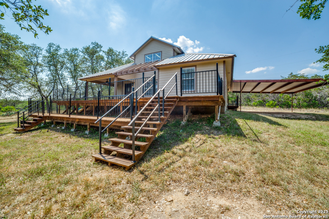 Peaceful Texas Hill Country Living on Nearly 5 Acres. Discover peace and quiet in this Texas Hill Country retreat. Situated on 4.994 acres and surrounded by larger parcels, this property offers privacy, open space, and the charm of country living-just a short drive from the new Microsoft Data Center in Castroville. The home features 3 bedrooms and 2 bathrooms, along with an upstairs loft that is perfect for a home office, creative studio, or guest space. The loft includes three built-in easels with storage, making it an ideal setup for artists or hobbyists. A large wood deck off the back of the home provides the perfect spot for evening relaxation, stargazing, or entertaining guests. A 900 sq ft workshop with electricity offers ample space for projects or storage and includes a single carport on each side for added functionality. The main residence also includes a 2-car carport, and the entire property is fully fenced-making it ideal for pets, livestock, or added peace of mind. Whether you are looking for a private homestead, a weekend getaway, or land with room to grow, this property offers the perfect blend of seclusion and convenience.