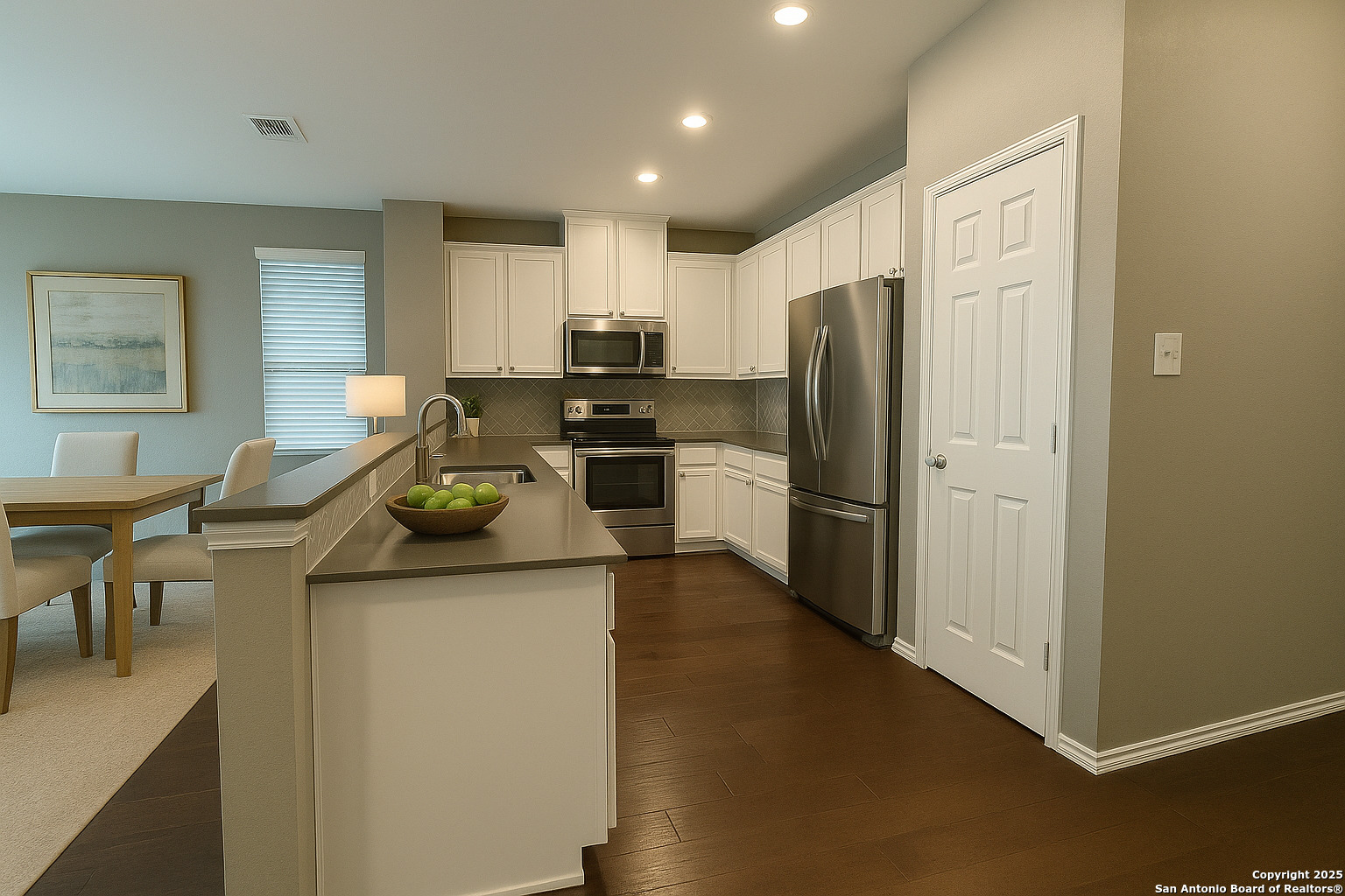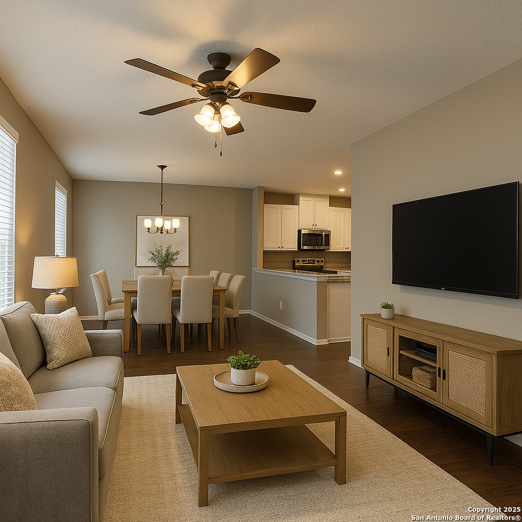 Beautiful and move-in ready 3-bedroom, 2-bath single-story home with a studio/flex space that can be used as a home office, playroom, or even a 4th bedroom. Located in the quiet and desirable Copperfield subdivision, this home offers an open-concept layout, neutral finishes, and great natural light. The kitchen is fully equipped with a refrigerator, stove, microwave, and dishwasher, and opens into the main living and dining area-ideal for hosting and day-to-day life. The primary suite features a walk-in closet and private bath, while the two secondary bedrooms and flex room offer additional functionality. Enjoy a low-maintenance backyard, up to 4-car parking, and the benefits of living in a well-kept HOA community with easy access to local amenities. Minutes from Randolph AFB, Fort Sam Houston, shopping, restaurants, and major highways.