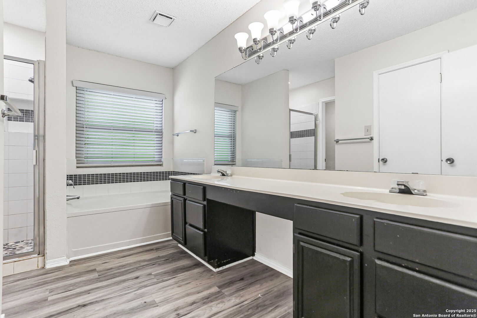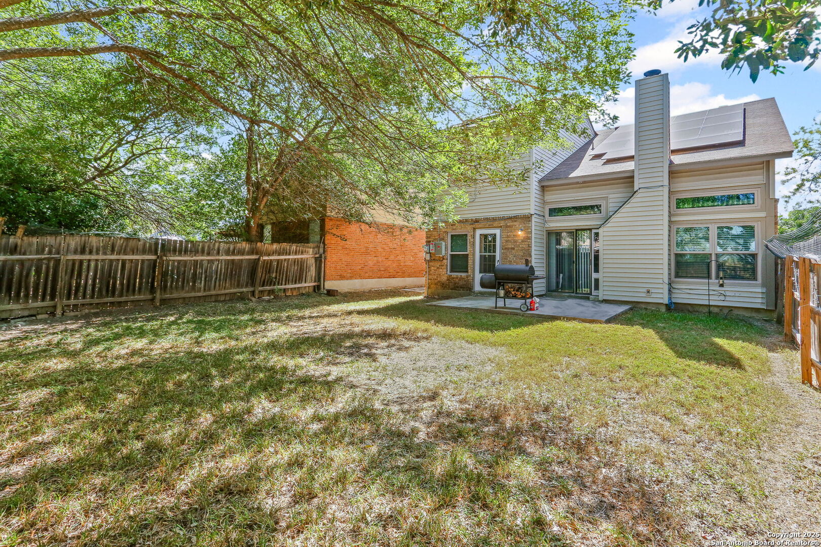 Welcome Home! Located only 10 minutes from Helotes and a few blocks away from a major highway, you will enjoy plenty of shopping, entertainment and dining just minutes away! This home features 3 bedrooms, 3 full baths plus an office downstairs with a closet that can be used as a 4th bedroom! This home also has a 2 car garage with a driveway for plenty of parking and no carpet downstairs. The living area boasts high 12ft and 9ft ceilings for an open and spacious living experience along with a cozy wood burning fireplace. The primary bedroom and bathroom up stairs includes a large double vanity with plenty of counter space, stand up shower and garden tub for those relaxing baths. Enjoy a large, flat back yard for pets and entertainment year round. Did I mention this home also comes with an over $22k solar panel system for lower electric bills!? Make it your and come take a look!