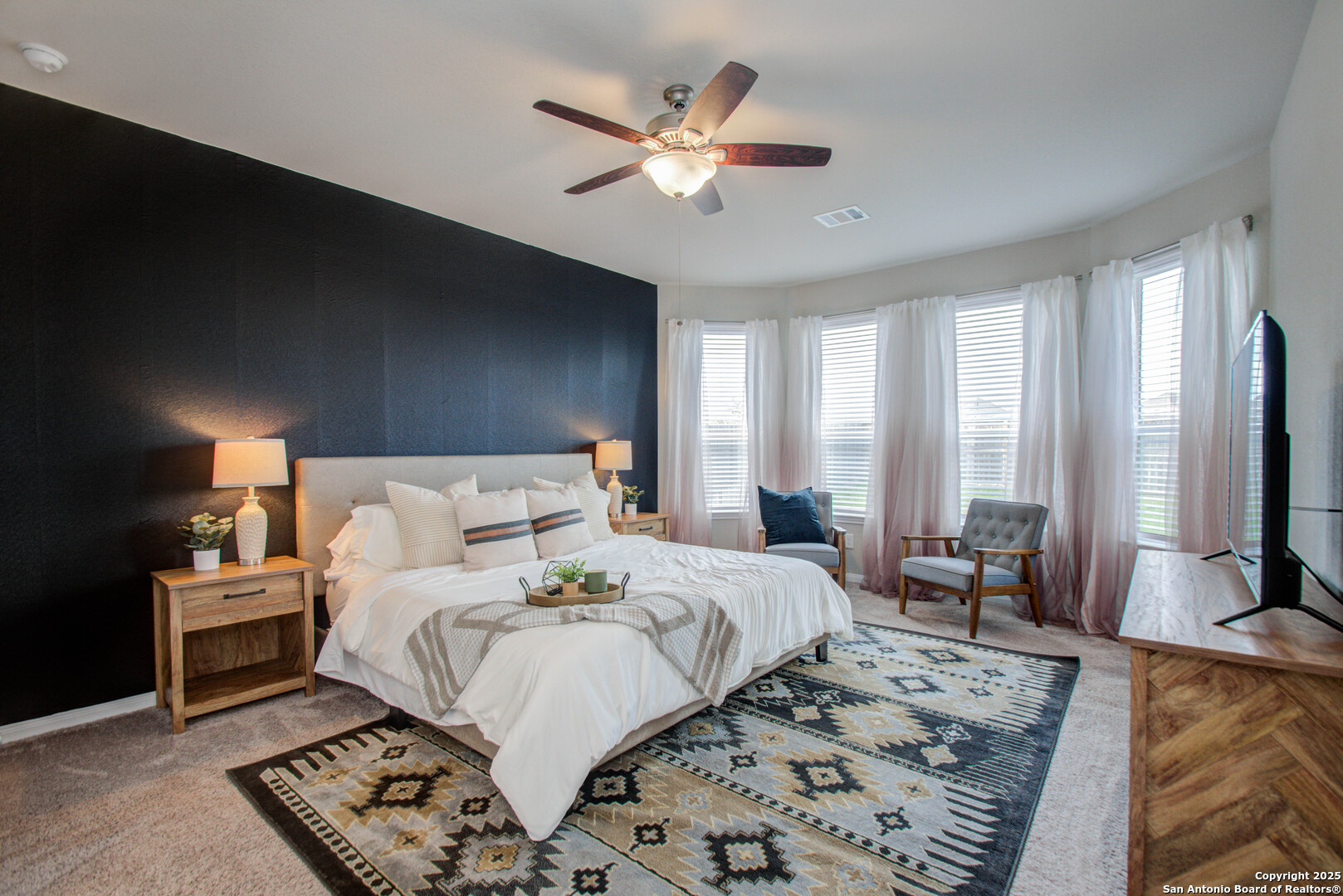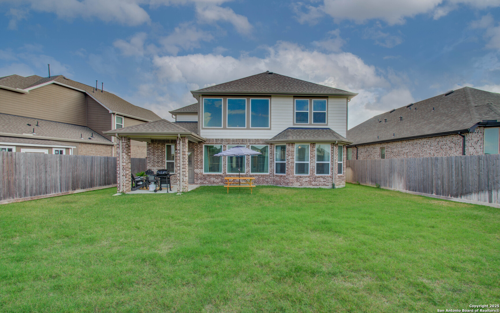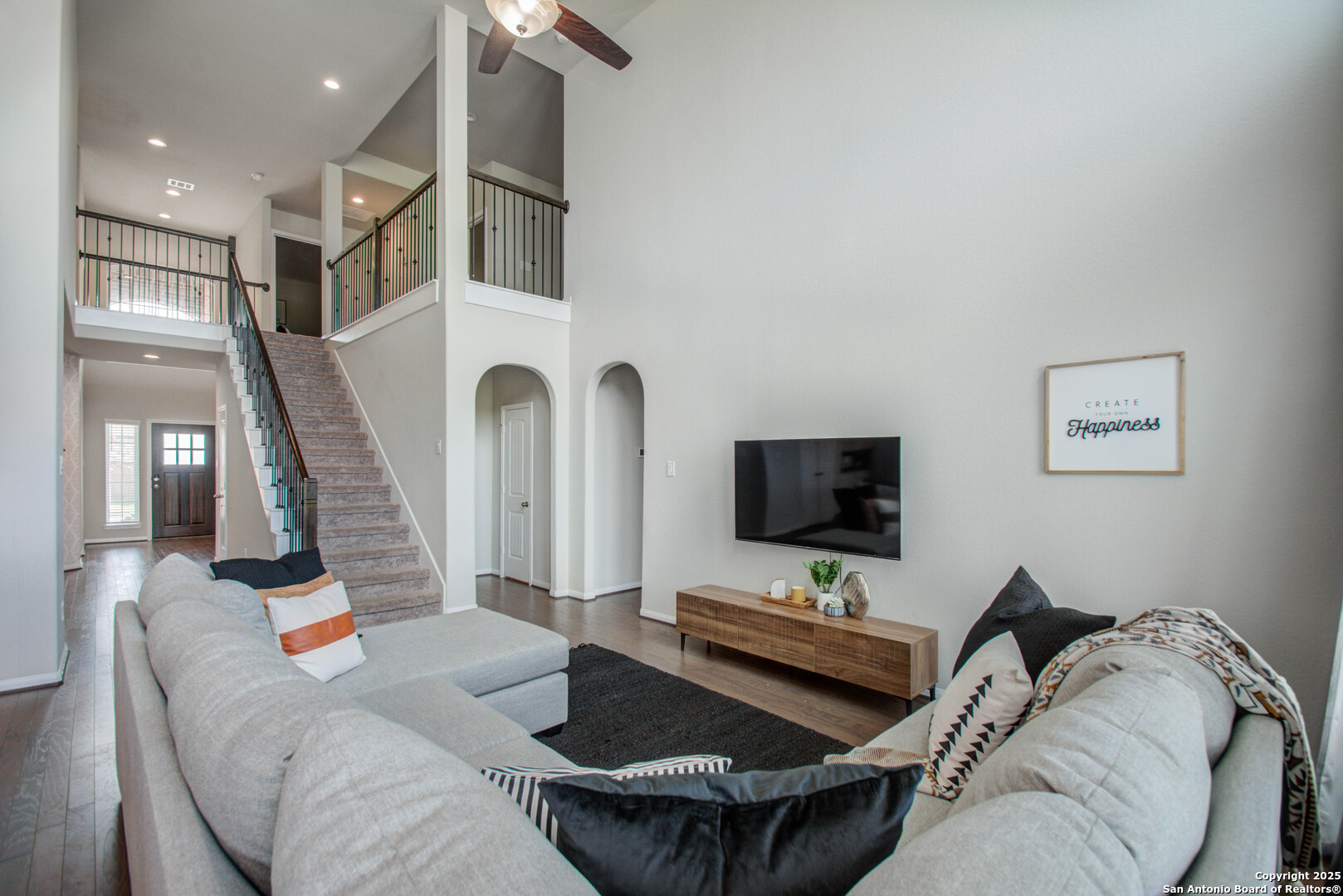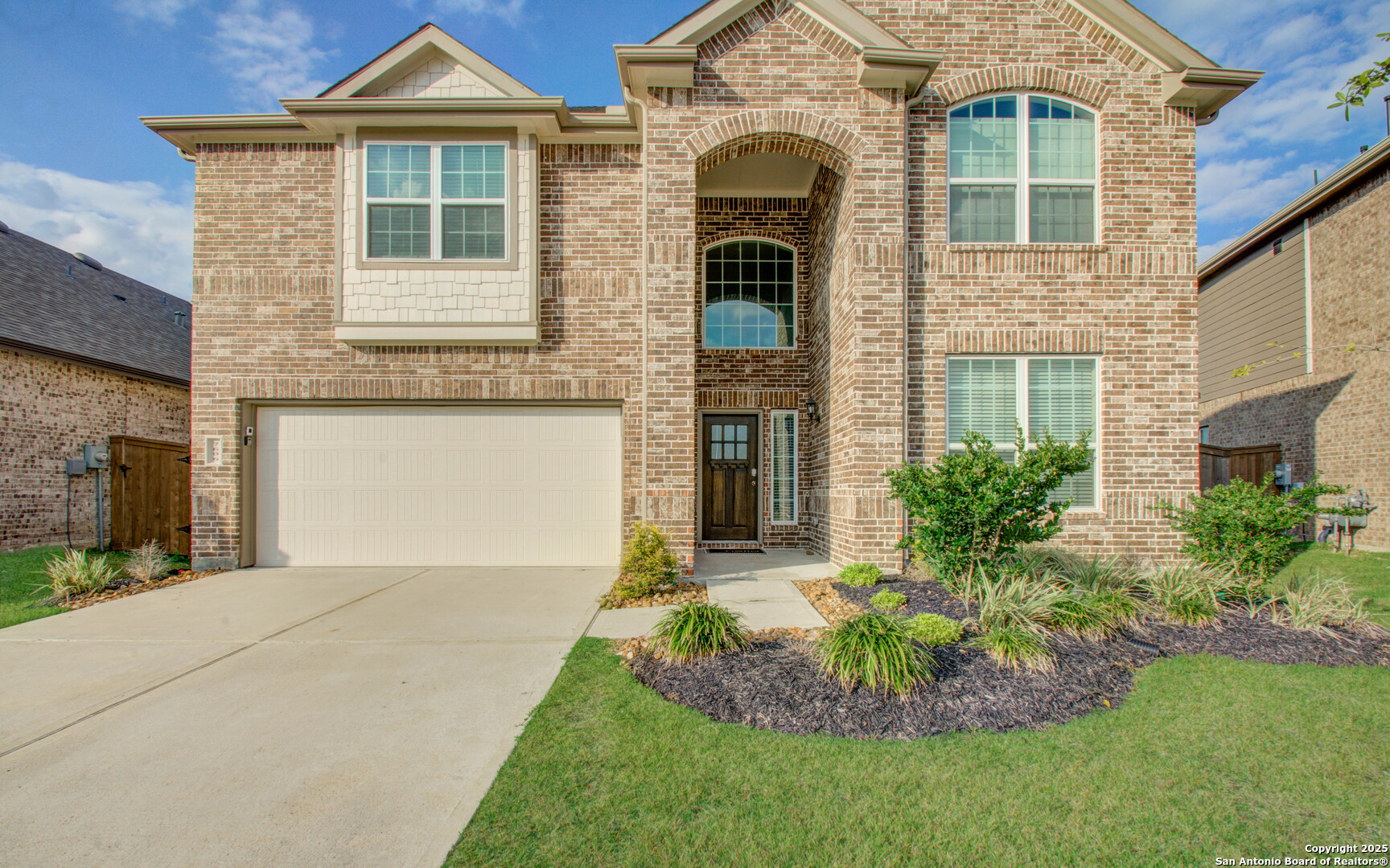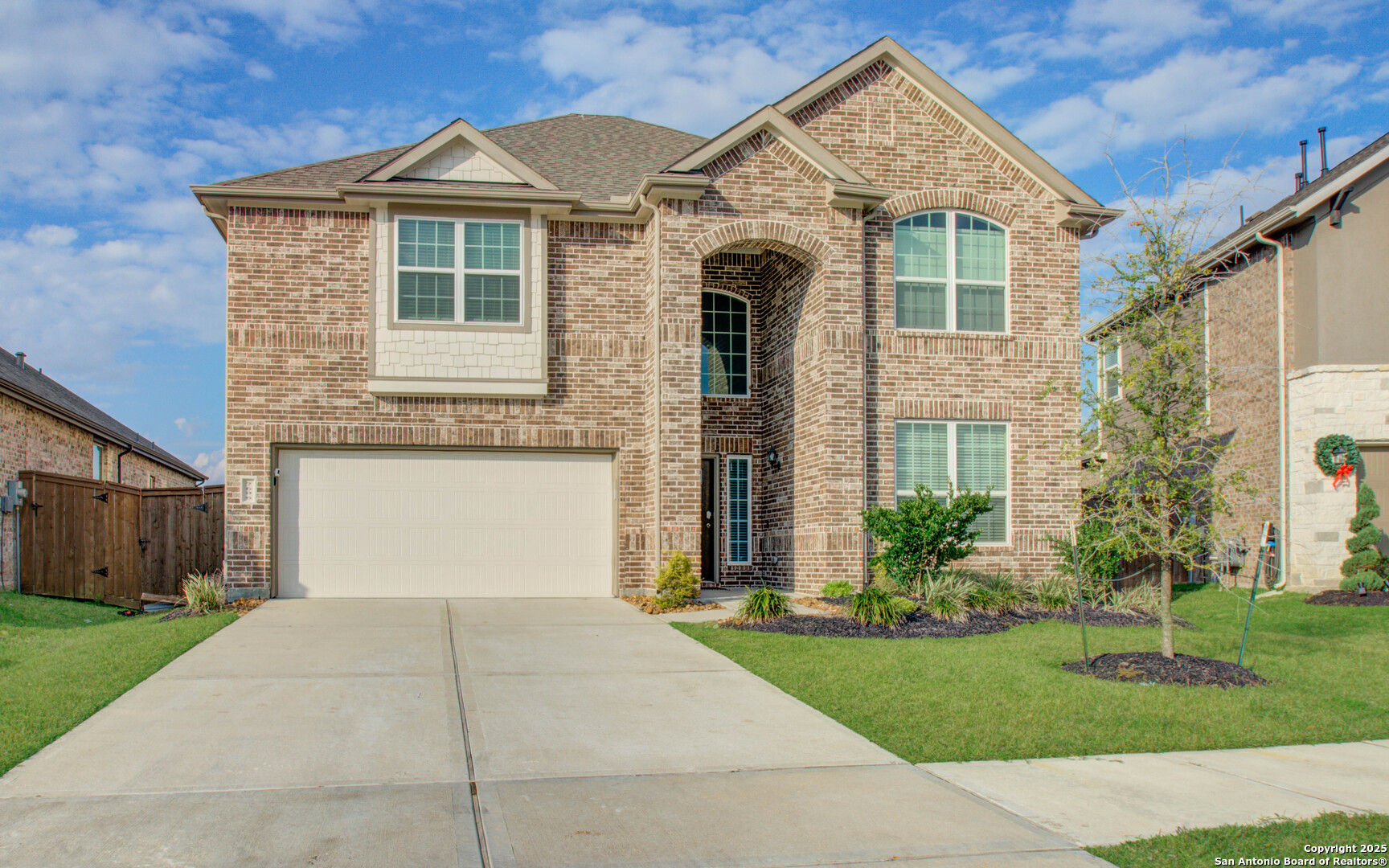 Welcome to this beautifully designed home featuring a striking elevation with a blend of brick and cement fiber siding. A grand entryway with arching entrances creates an elegant first impression as you make your way to the front door. Inside, the living room boasts soaring ceilings and large windows that flood the space with natural light. A separate dining room offers an ideal space for gatherings, while the modern island kitchen is a chef's dream-complete with a breakfast bar, walk-in pantry, and ample cabinet space. The home features a mix of wood, ceramic tile, and carpet flooring, with ceiling fans throughout for added comfort. The primary bedroom is conveniently located downstairs and includes a walk-in closet and en-suite bath with double vanities, a garden tub, and a separate tub/shower. Step outside to enjoy a covered patio and a large, private backyard with a privacy fence and sprinkler system-perfect for entertaining or relaxing. Located in a community known for its welcoming atmosphere, residents enjoy access to a clubhouse, pool, and additional amenities. You'll also find excellent nearby options for fitness and training, including Athlete Training + Health in Spring & Farm League Park. With nearby hospitals, restaurants, bars, arcades with esports, gyms, and more, everything you need is just minutes away. Your dream home awaits-don't miss out! Schedule your showing today before it's gone!