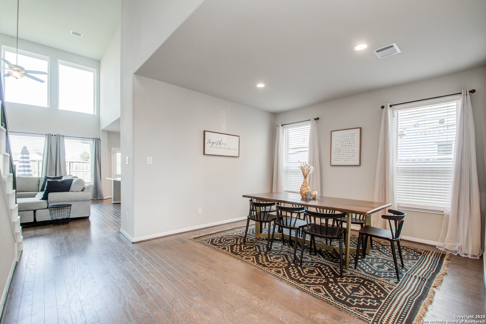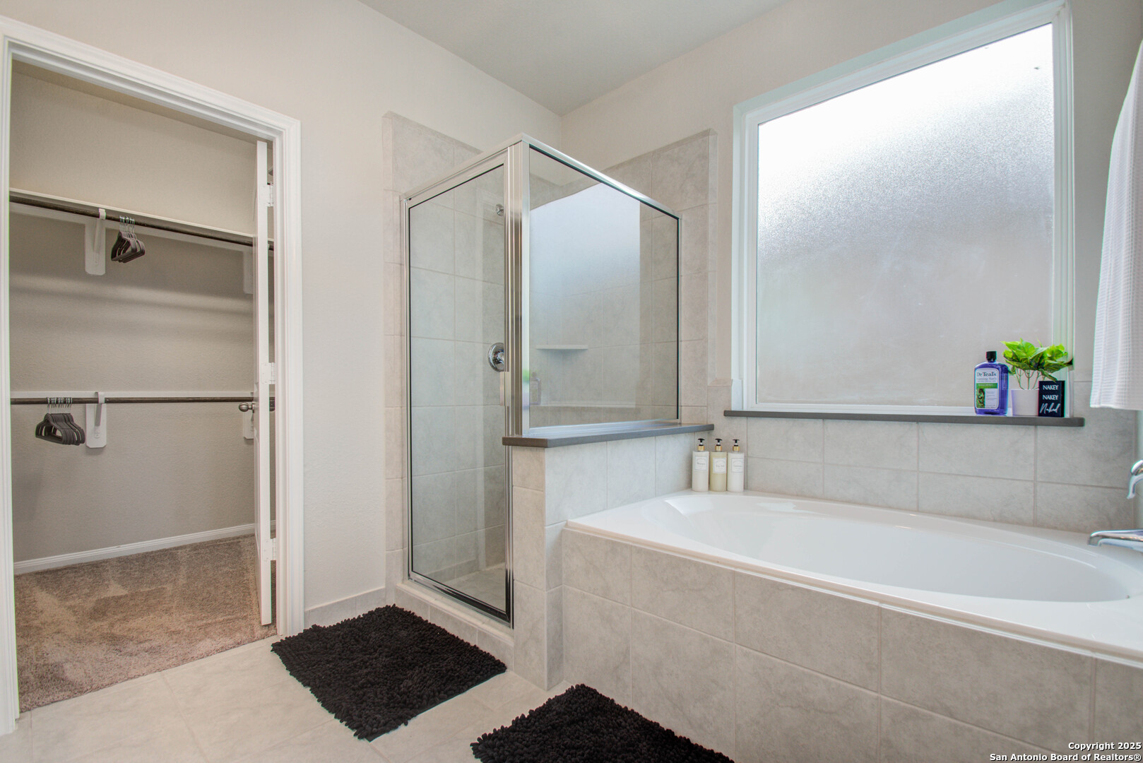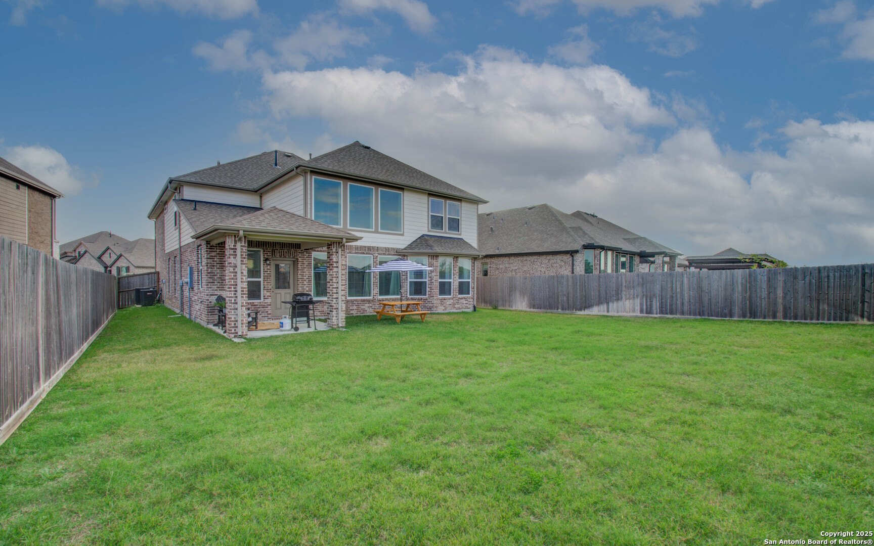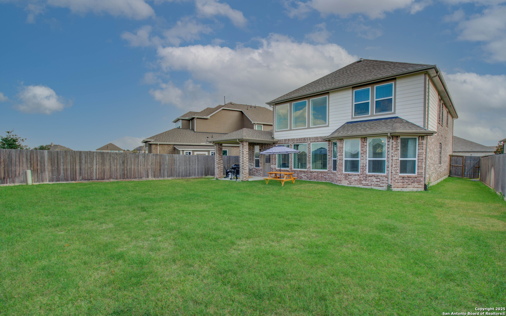 Welcome to this beautifully designed home featuring a striking elevation with a blend of brick and cement fiber siding. A grand entryway with arching entrances creates an elegant first impression as you make your way to the front door. Inside, the living room boasts soaring ceilings and large windows that flood the space with natural light. A separate dining room offers an ideal space for gatherings, while the modern island kitchen is a chef's dream-complete with a breakfast bar, walk-in pantry, and ample cabinet space. The home features a mix of wood, ceramic tile, and carpet flooring, with ceiling fans throughout for added comfort. The primary bedroom is conveniently located downstairs and includes a walk-in closet and en-suite bath with double vanities, a garden tub, and a separate tub/shower. Step outside to enjoy a covered patio and a large, private backyard with a privacy fence and sprinkler system-perfect for entertaining or relaxing. Located in a community known for its welcoming atmosphere, residents enjoy access to a clubhouse, pool, and additional amenities. You'll also find excellent nearby options for fitness and training, including Athlete Training + Health in Spring & Farm League Park. With nearby hospitals, restaurants, bars, arcades with esports, gyms, and more, everything you need is just minutes away. Your dream home awaits-don't miss out! Schedule your showing today before it's gone!