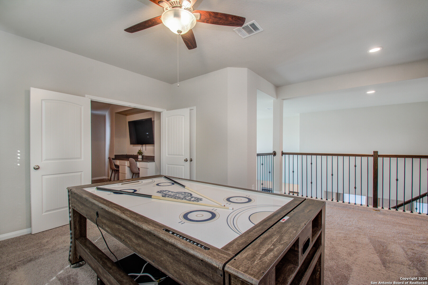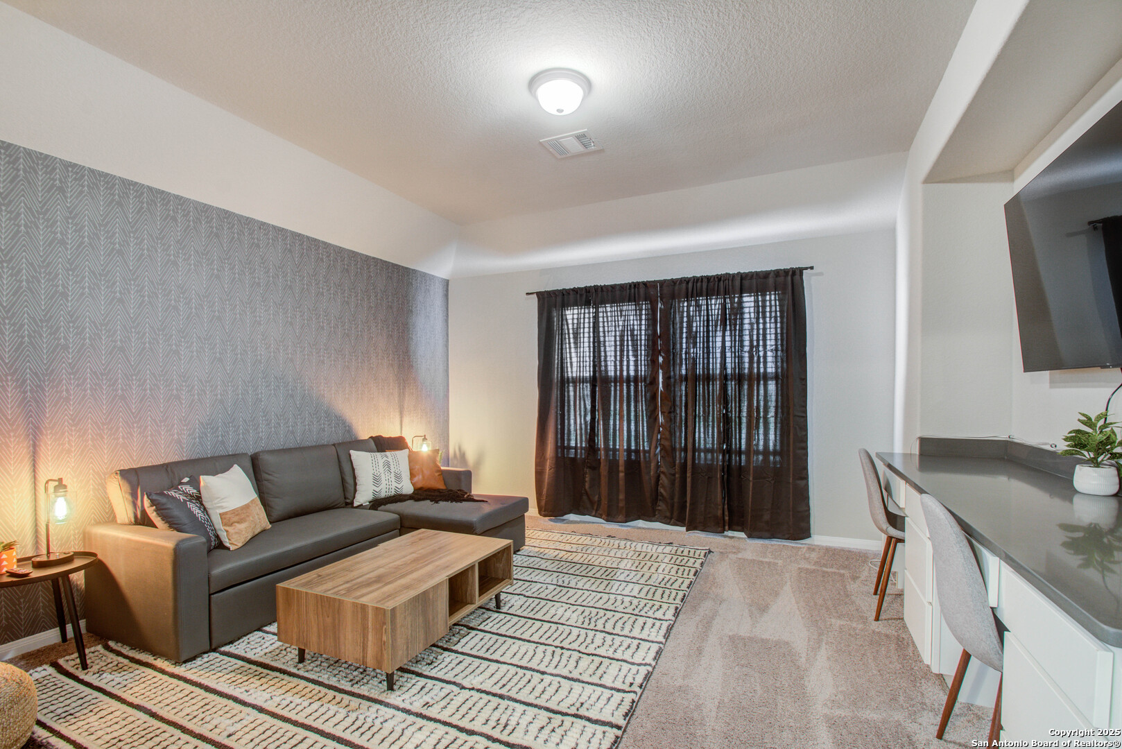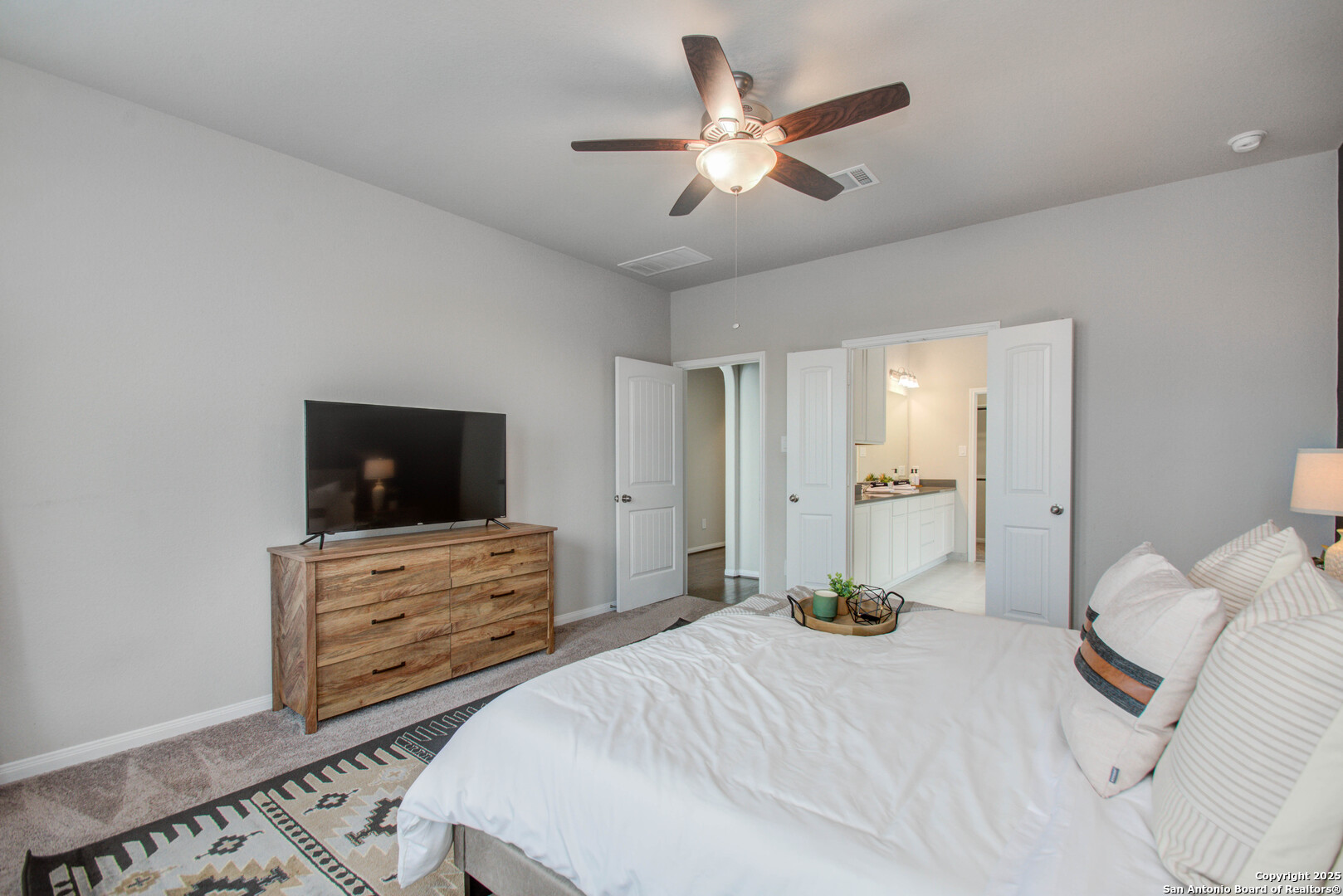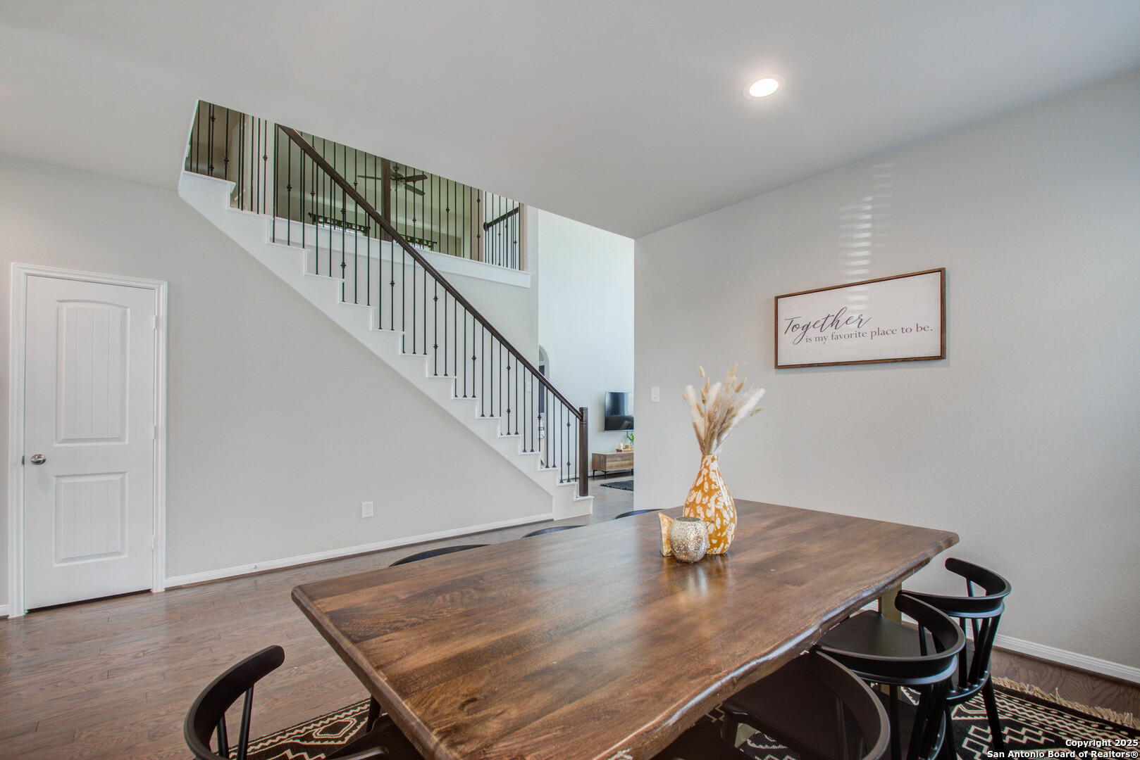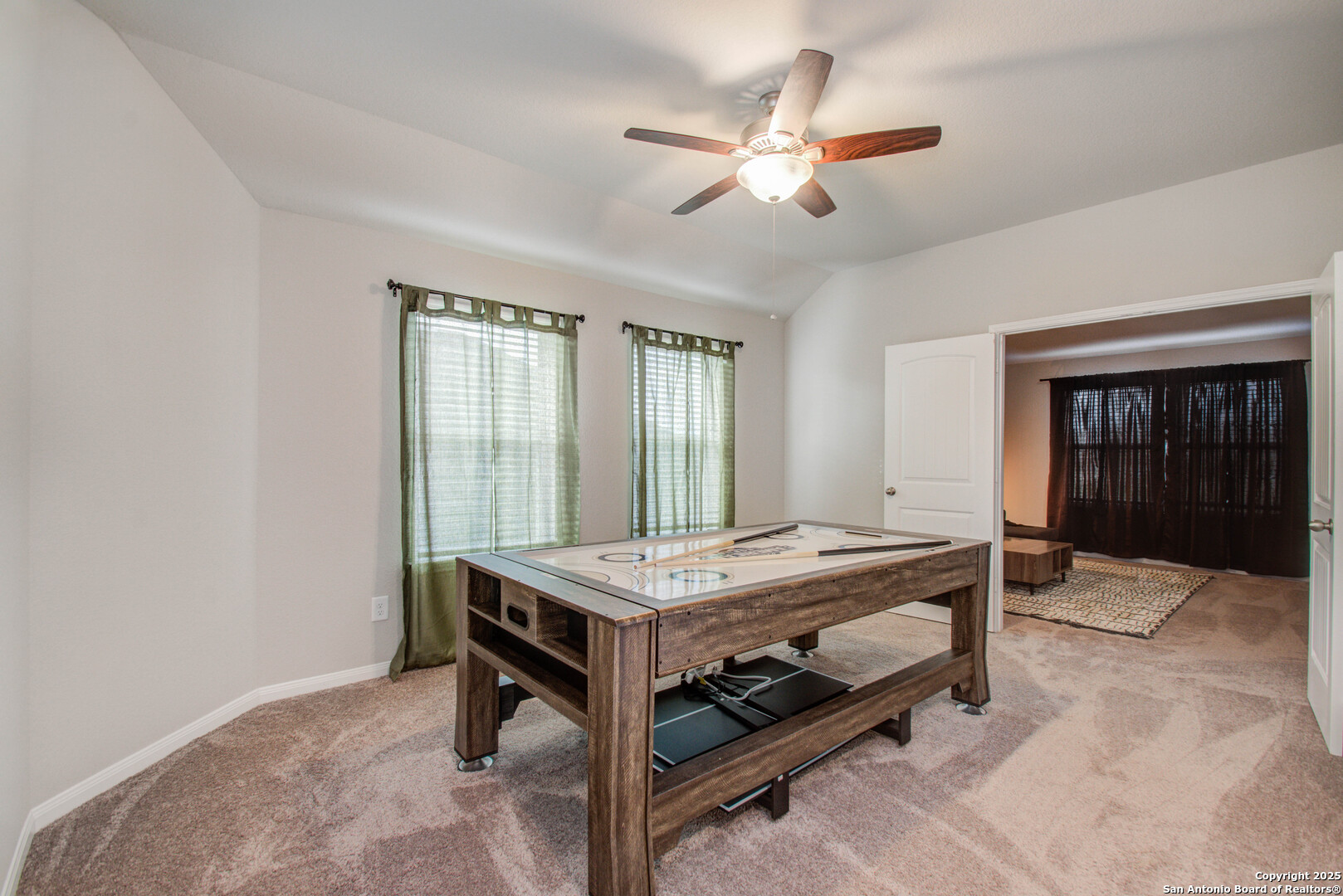 Welcome to this beautifully designed home featuring a striking elevation with a blend of brick and cement fiber siding. A grand entryway with arching entrances creates an elegant first impression as you make your way to the front door. Inside, the living room boasts soaring ceilings and large windows that flood the space with natural light. A separate dining room offers an ideal space for gatherings, while the modern island kitchen is a chef's dream-complete with a breakfast bar, walk-in pantry, and ample cabinet space. The home features a mix of wood, ceramic tile, and carpet flooring, with ceiling fans throughout for added comfort. The primary bedroom is conveniently located downstairs and includes a walk-in closet and en-suite bath with double vanities, a garden tub, and a separate tub/shower. Step outside to enjoy a covered patio and a large, private backyard with a privacy fence and sprinkler system-perfect for entertaining or relaxing. Located in a community known for its welcoming atmosphere, residents enjoy access to a clubhouse, pool, and additional amenities. You'll also find excellent nearby options for fitness and training, including Athlete Training + Health in Spring & Farm League Park. With nearby hospitals, restaurants, bars, arcades with esports, gyms, and more, everything you need is just minutes away. Your dream home awaits-don't miss out! Schedule your showing today before it's gone!