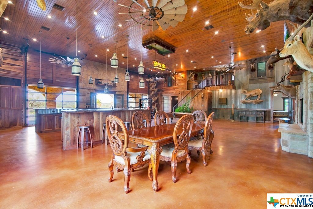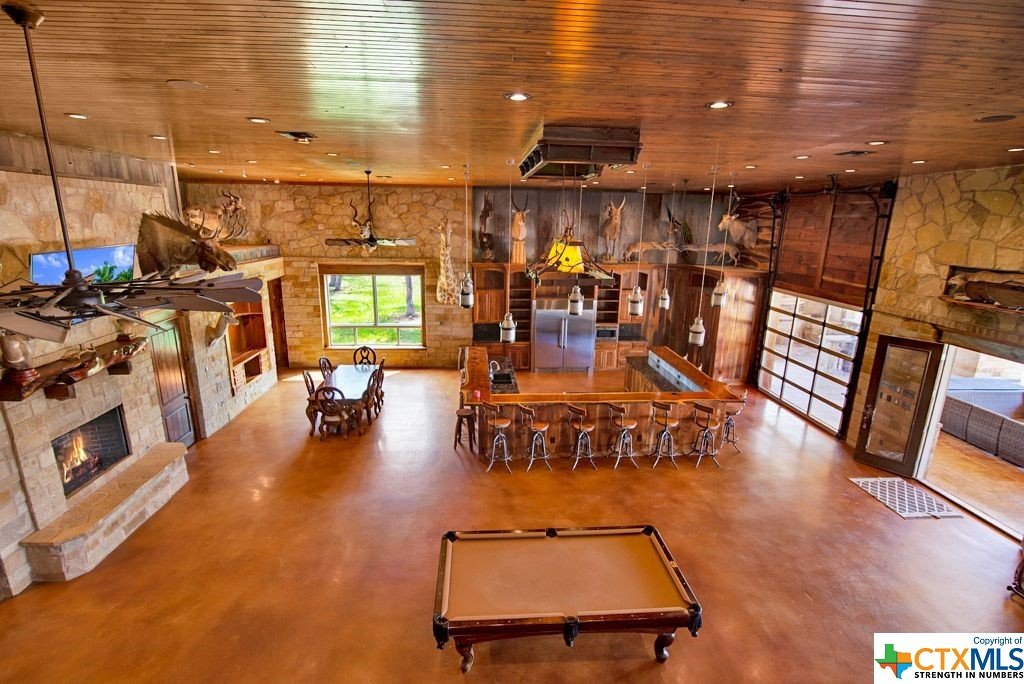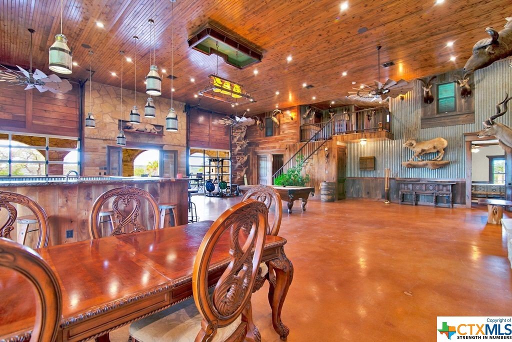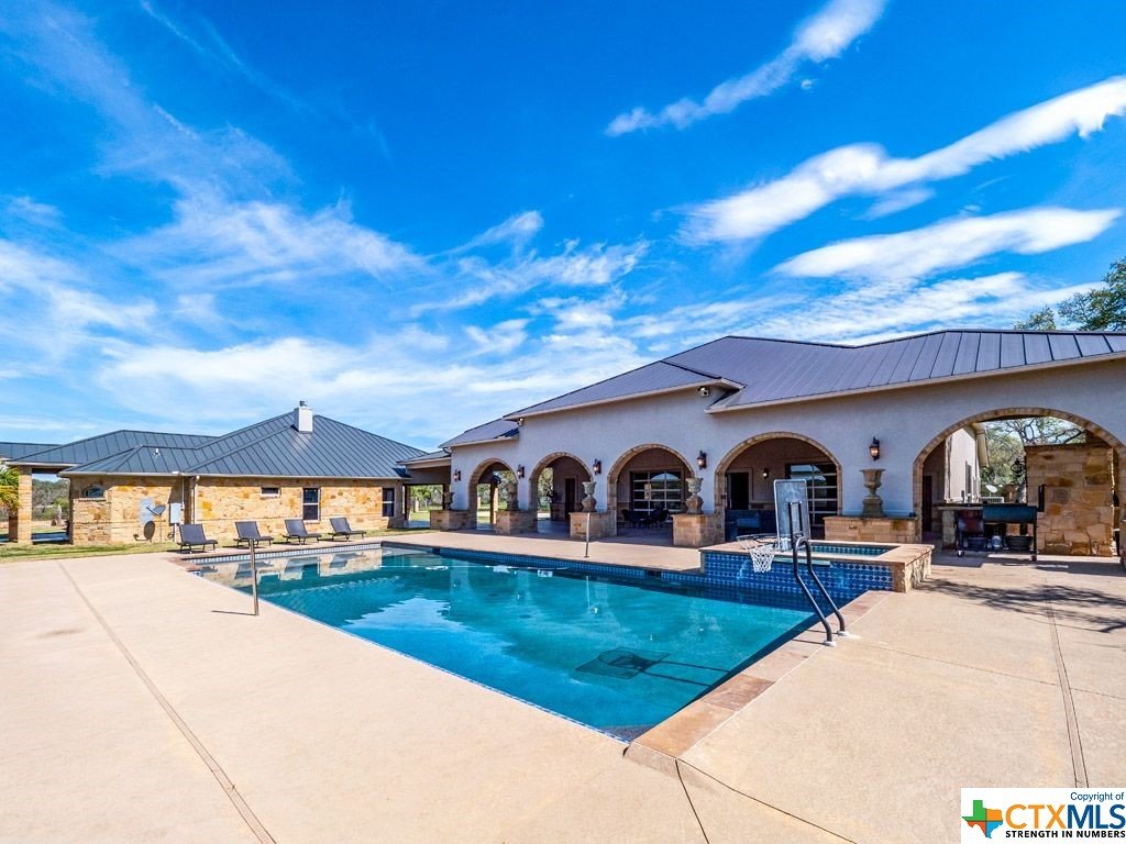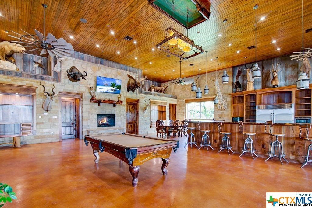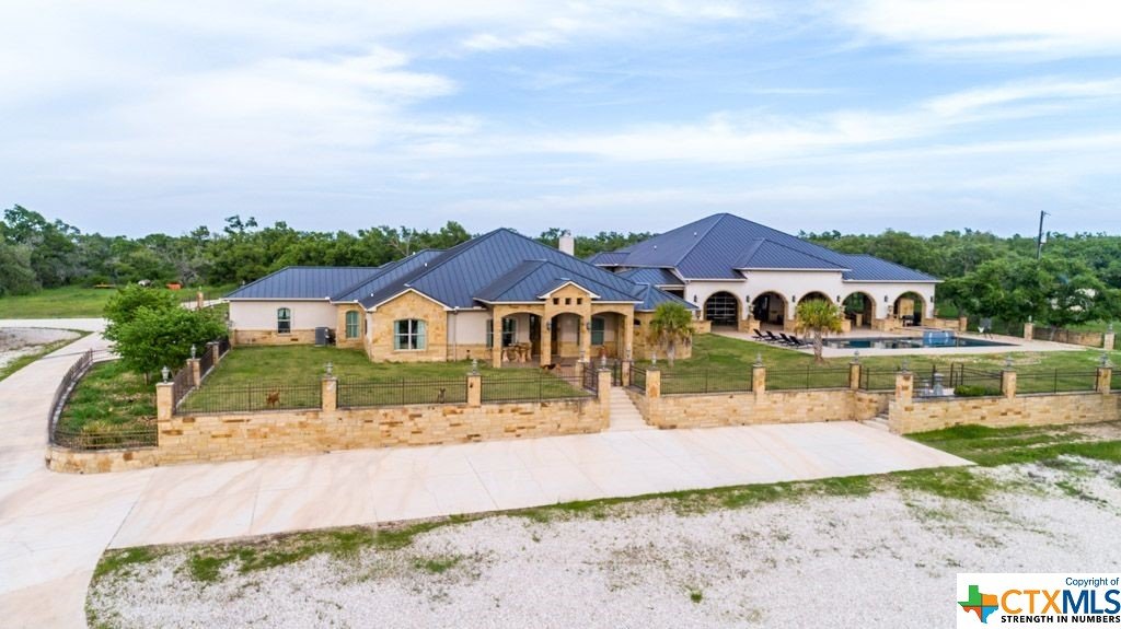 Large estate on 38.9 acres. Completely fenced with a 12-foot game fence and grand rock entrance. Live the life of luxury in this almost 9,000 sqft of living space with 8 bedrooms 8 full baths and 3 half baths. Custom built in every nook and cranny with Texas stone, hardwood, and granite cabinetry. Two large fireplaces, swimming pool, outdoor basketball court, indoor RV parking garage, indoor and an outdoor bar with complete catering setup, or just relax in your own private movie theatre. Other outdoor amenities include dog kennels, livestock pens, barns, and sheds. Large backyard area - fully fenced with wrought iron fencing. Gorgeous Views and beautiful sunsets right from your oversized covered porch. Super unique feature - your own private natural cave that you can explore! Centrally located in the heart of Texas Hill Country right next to the Wimberley Junction on R12 and FM 32. Estate is at the end of the gated subdivision of Trails End Ranch. Less than 30 minutes to Canyon Lake, Wimberley, San Marcos, or New Braunfels. Looking for country living near the big cities? You are less than an hour away from Austin or San Antonio! This is the Texas Hill Country Ranchette you have been waiting for!