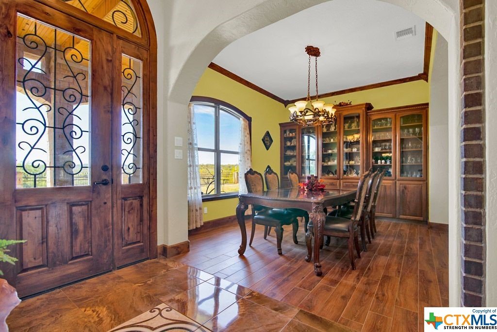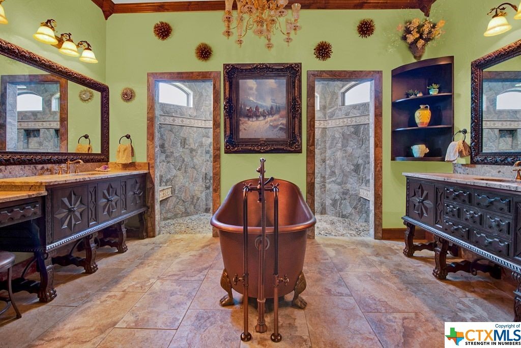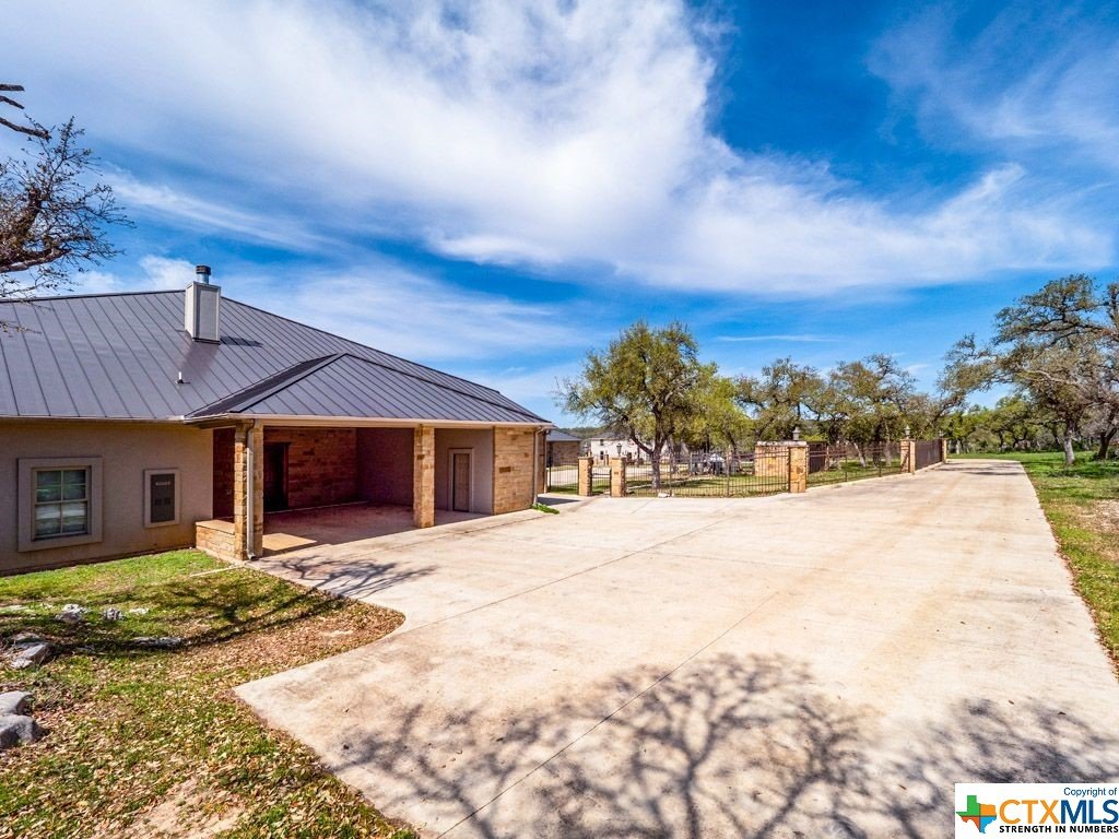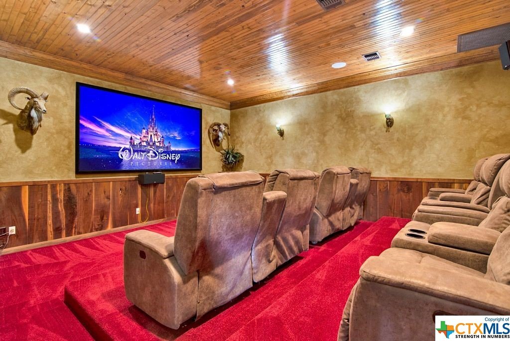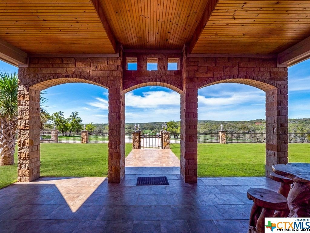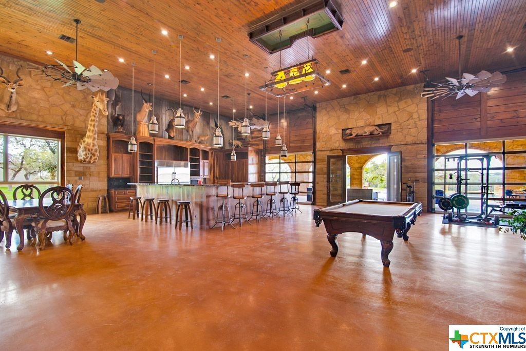 Large estate on 38.9 acres. Completely fenced with a 12-foot game fence and grand rock entrance. Live the life of luxury in this almost 9,000 sqft of living space with 8 bedrooms 8 full baths and 3 half baths. Custom built in every nook and cranny with Texas stone, hardwood, and granite cabinetry. Two large fireplaces, swimming pool, outdoor basketball court, indoor RV parking garage, indoor and an outdoor bar with complete catering setup, or just relax in your own private movie theatre. Other outdoor amenities include dog kennels, livestock pens, barns, and sheds. Large backyard area - fully fenced with wrought iron fencing. Gorgeous Views and beautiful sunsets right from your oversized covered porch. Super unique feature - your own private natural cave that you can explore! Centrally located in the heart of Texas Hill Country right next to the Wimberley Junction on R12 and FM 32. Estate is at the end of the gated subdivision of Trails End Ranch. Less than 30 minutes to Canyon Lake, Wimberley, San Marcos, or New Braunfels. Looking for country living near the big cities? You are less than an hour away from Austin or San Antonio! This is the Texas Hill Country Ranchette you have been waiting for!