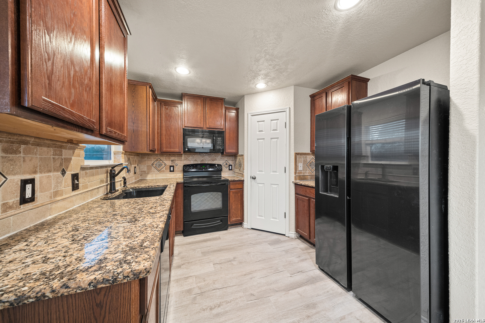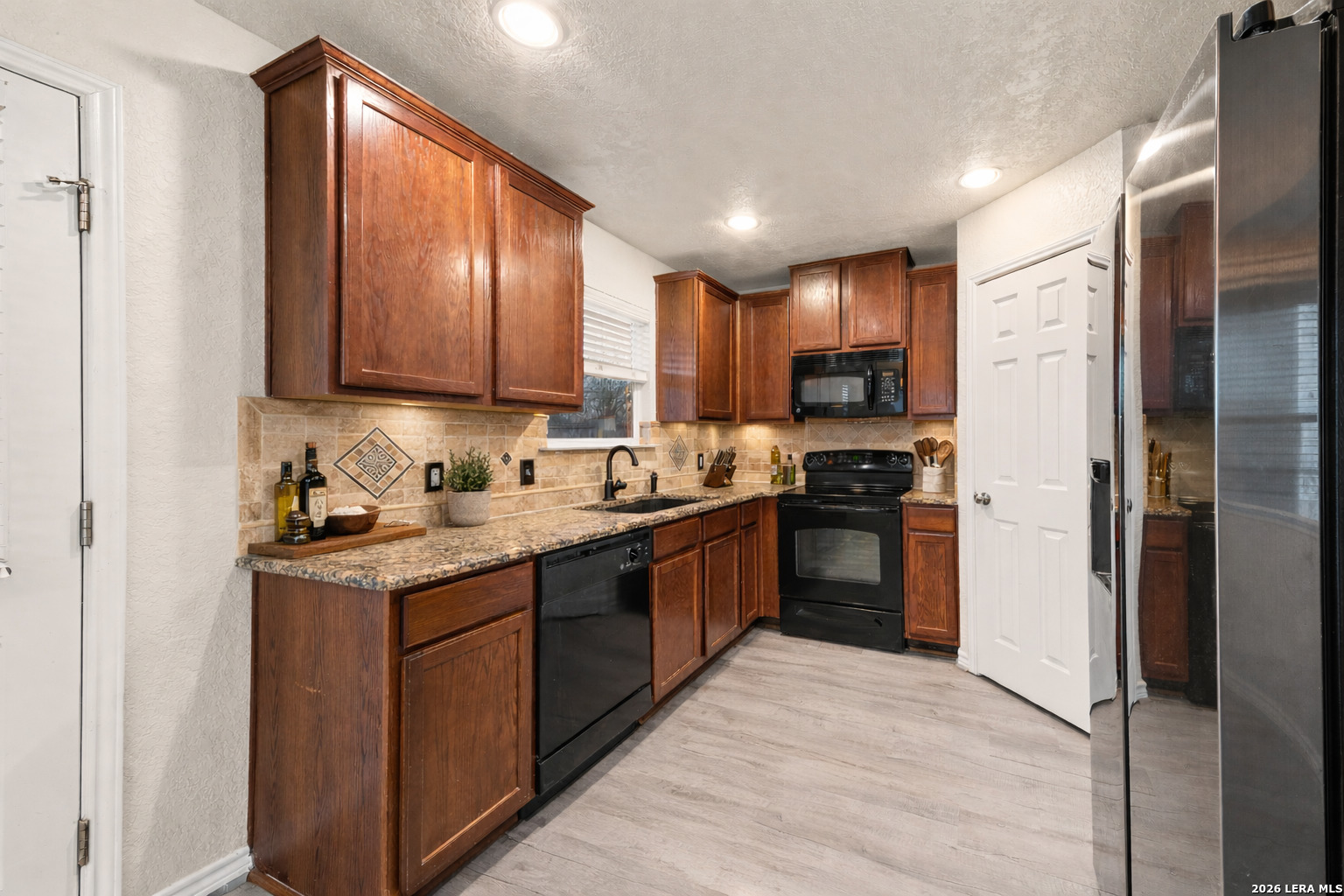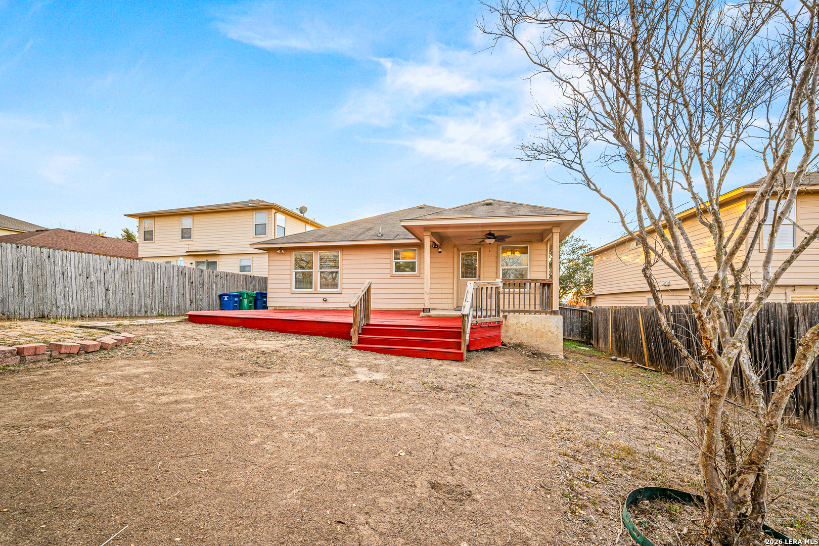 *OPEN HOUSE 02/15/2026 11:00 AM to 3:00 PM* Welcome to this stylish, spacious, and turnkey single story, 4-bedroom, 2-bath home where thoughtful upgrades and generous living spaces come together beautifully. Refrigerator, washer, dryer, and water softener all convey! From the moment you step inside, you'll notice soaring ceilings, crown molding, and durable hard-surface flooring throughout the main living areas. The layout is anchored by an expansive living room, ideal for entertaining, hosting holidays, or simply enjoying everyday life with room to breathe. The kitchen has been tastefully upgraded with granite countertops, designer backsplash, recessed lighting, and 42-inch cabinetry, delivering both elegance and functionality. Spacious bedrooms provide flexibility for guests, a home office, or multigenerational living. Enjoy ceiling fans in every room, updated bathroom vanities and mirrors, and faux-wood blinds which add comfort and continuity to the home's finish. The large backyard is designed for year round enjoyment, complete with a covered patio and extended wood deck. Conveniently located with quick access to major highways, minutes from Lackland AFB, local schools, grocery stores, SeaWorld, and just a short drive to downtown San Antonio.