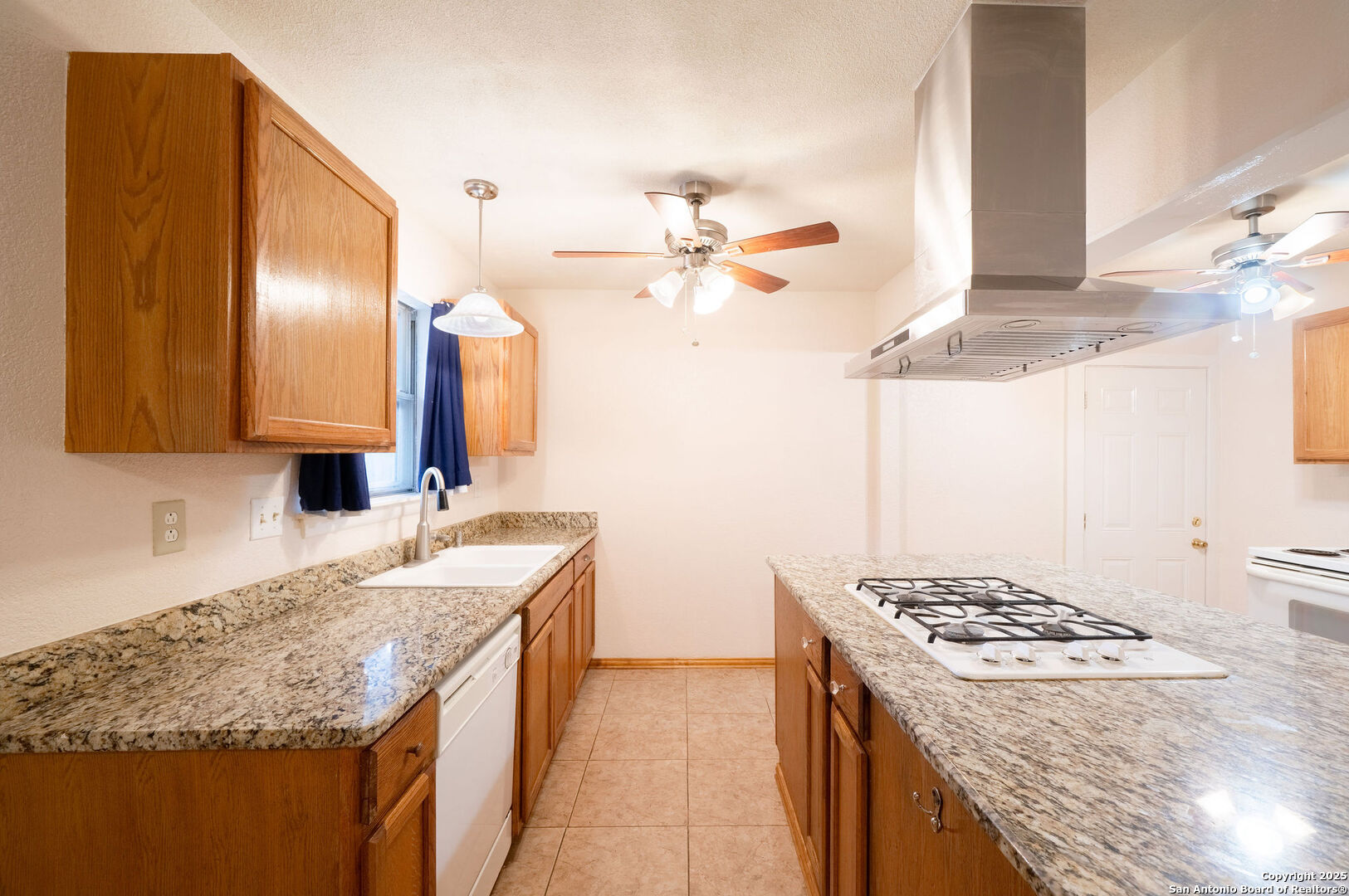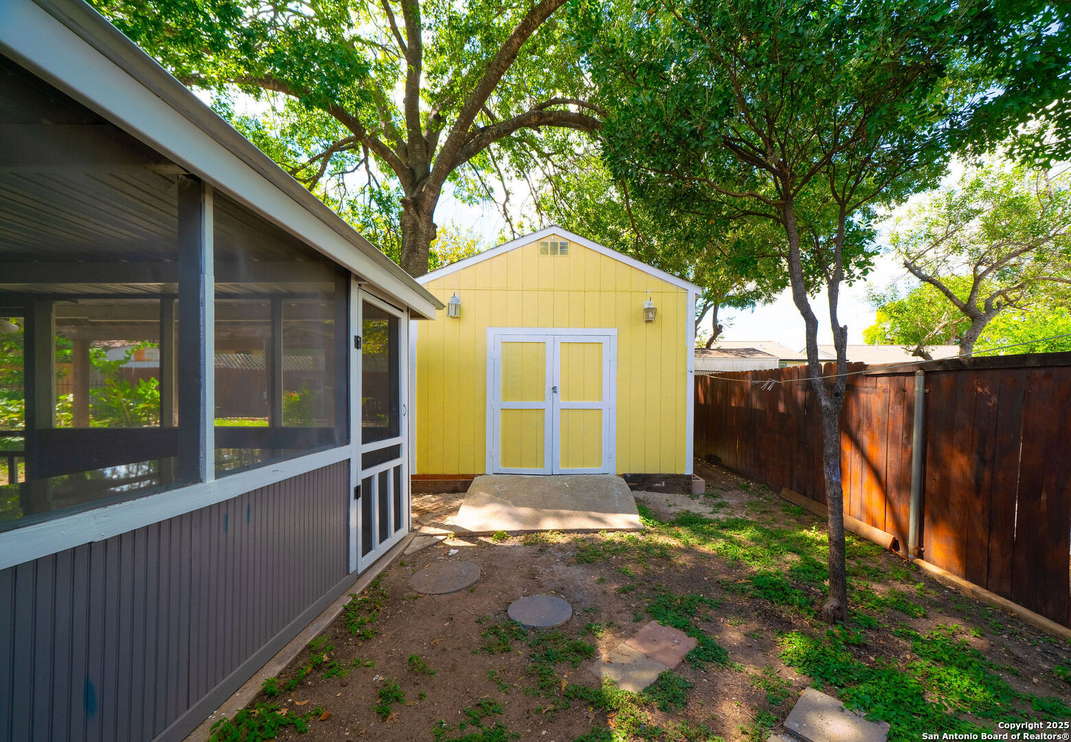 Welcome to this charming single story home located in Pipers Meadow. This well maintained 3-bedroom, 2-bathroom home offers both comfort and functionality, perfect for everyday living and entertaining. Inside, the inviting floor plan features a spacious living area that flows seamlessly into the dining and kitchen spaces. The renovated kitchen is thoughtfully designed and has been expanded with an island that includes a second gas cooktop, providing additional convenience for home chefs and a spacious pantry. Enjoy added versatility with an enclosed sunroom, ideal for a relaxing sitting area, hobby space, or year-round entertaining. The home includes a garage, covered carport, and generous sized storage shed with electricity, offering ample space for parking and organization. Outdoors, a privacy fence, pergola, and mature trees create a peaceful backyard retreat perfect for gatherings or quiet evenings at home. Conveniently located to loop 410, 151, Gustafson Stadium, and various shopping and dining options, this home is a wonderful opportunity to enjoy comfort and charm in a central location!