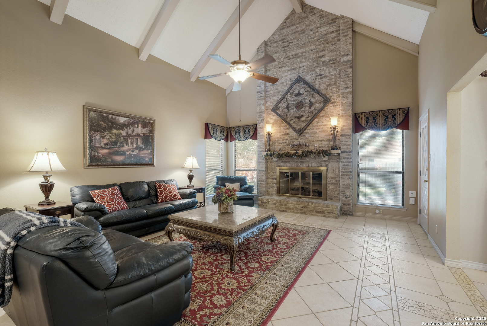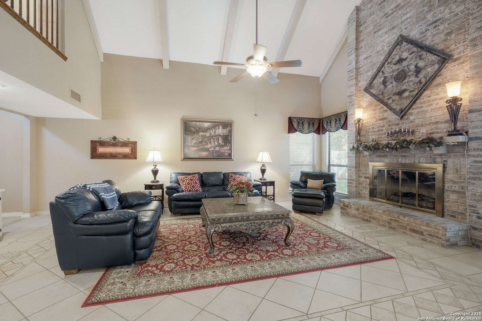 Welcome to 7622 Lynn Anne - a unique gem nestled in a neighborhood full of character, where no two homes are alike. This charming 4-bedroom, 2.5-bath home offers thoughtful upgrades and a flexible layout. Step inside to find custom-designed ceramic tile flooring downstairs (no carpet anywhere!), soaring vaulted ceilings in the living room, and a stunning floor-to-ceiling brick fireplace that anchors the space with cozy charm. The primary suite is conveniently located on the main level, while upstairs you'll find spacious secondary bedrooms-including one oversized bedroom that's large enough to serve as a den, office, media room, or playroom. Love to entertain? The outdoor living space is a showstopper, featuring a massive covered patio with an extended paver area under the shade of mature trees-perfect for BBQs or relaxing evenings outdoors. The neighborhood features a voluntary HOA that offers access to pickleball and tennis courts, a pool, summer swim team, and fun community traditions throughout the year that bring neighbors together. Plus, you're just a block away from an access point to O.P. Schnabel Park-home to miles of bike trails, a YMCA, playgrounds, pavilions, and sports fields. Nestled between 1604 and 410, commuting around the city is a breeze!