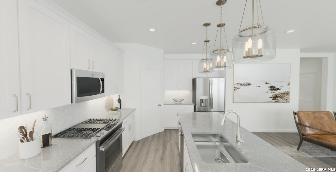 This home features a gourmet kitchen with a center island open to the spacious family room. Downstairs primary suite with a private bath including an oversized shower and a walk-in closet. Downstairs secondary bedroom perfect for a guest suite. Three bedrooms with walk-in closets and a loft upstairs. Covered patio on back of home. Full landscaping and sprinkler system included. This home is part of our Timeless Collection - classic, elegant, and beautiful in any era or setting. Smooth finishes, graceful details, and an easy flow between spaces make this design as versatile as it is stunning. Perfect for afternoon tea in the garden or evenings filled with Southern hospitality, Timeless is the kind of style that never goes out of fashion. This home is in Hennersby Hollow, with easy access to Hwy 90, Jungman Rd., major employers, SeaWorld, shopping, and top Medina Valley ISD schools. Community amenities include a pool, lazy river, playground, and activity lawn.