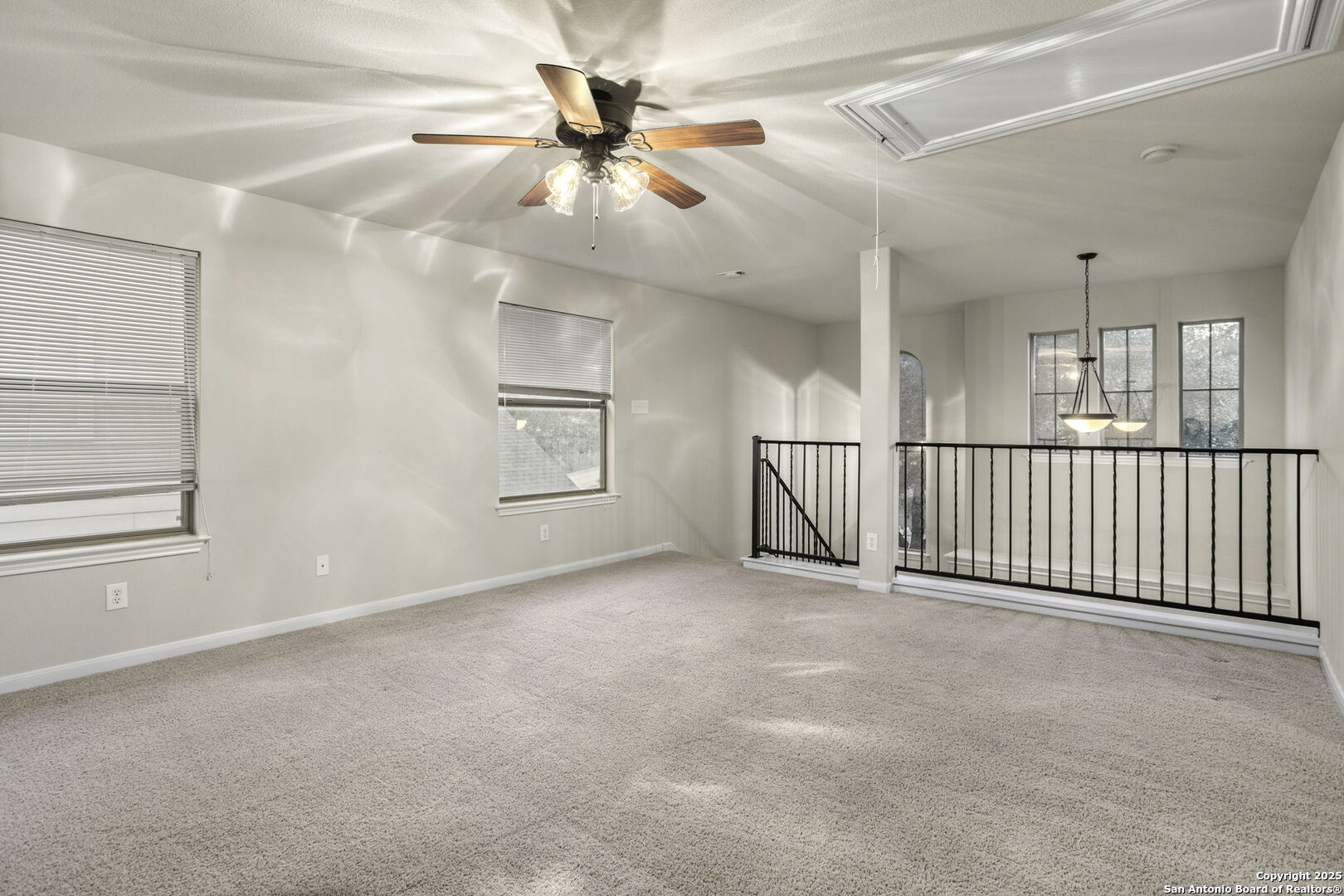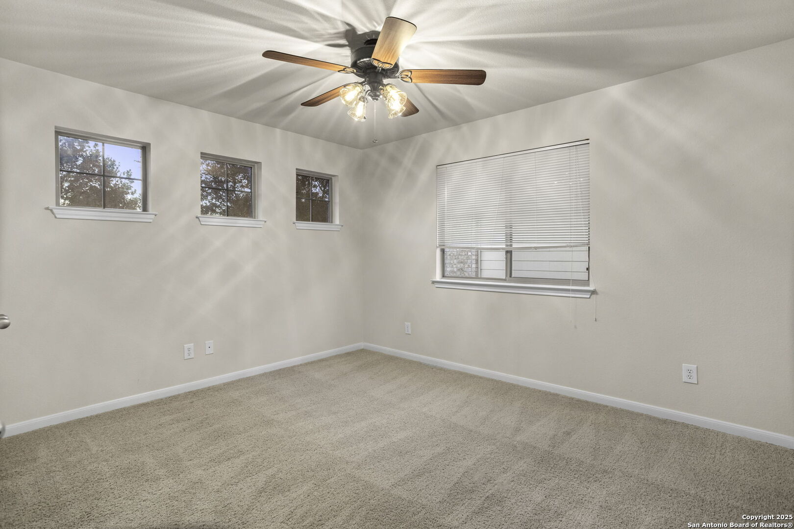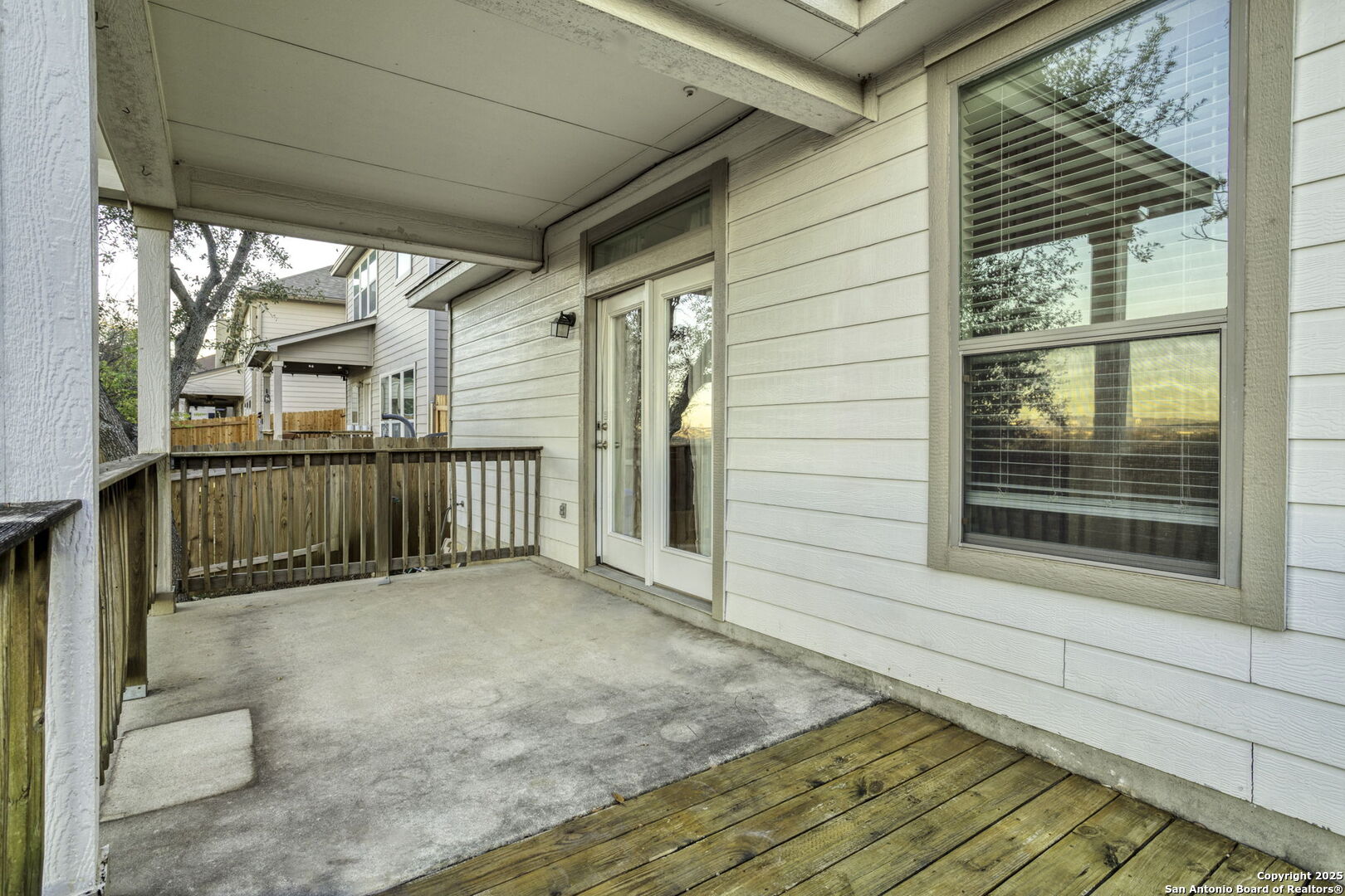 Welcome Home to this beautiful 3 bedroom 2 1/2 bathroom 2 story home. Enjoy an open living area with a built-in desk with a downstairs master with separate shower & relaxing jetted garden tub. Kitchen features granite countertops with large island and upgraded 42 maple cabinetry. Big covered patio & wood deck with spectacular views!Plus a water softener in your 2 car garage. Located just minutes from IH-10/1604, UTSA, La Cantera, The Rim, Valero, FBI, and the Medical Center, with endless shopping and dining options. NISD schools! Come see it today!