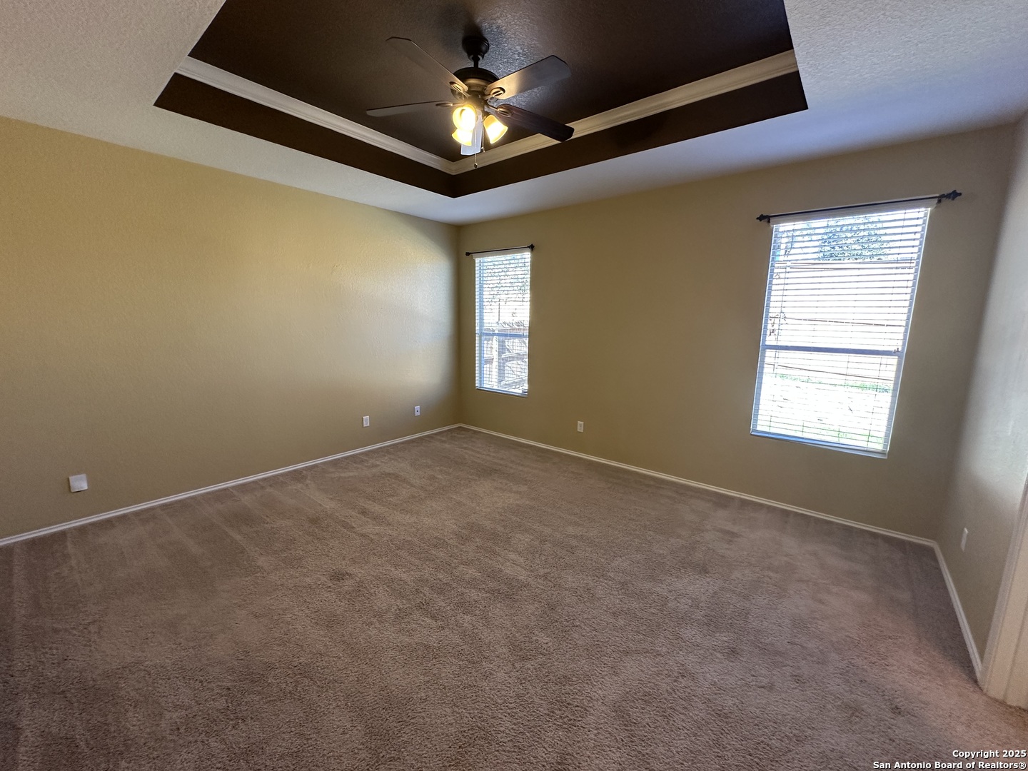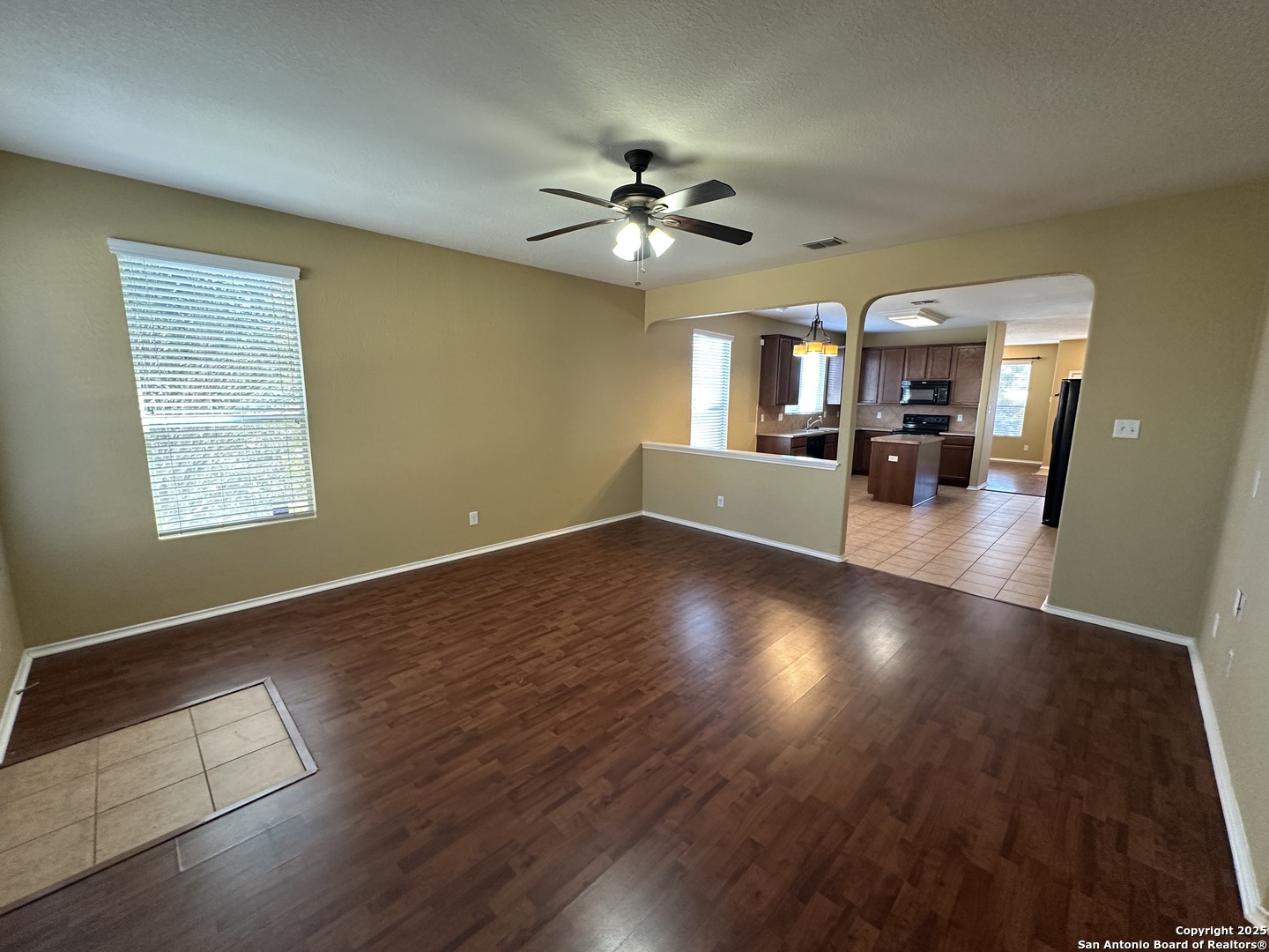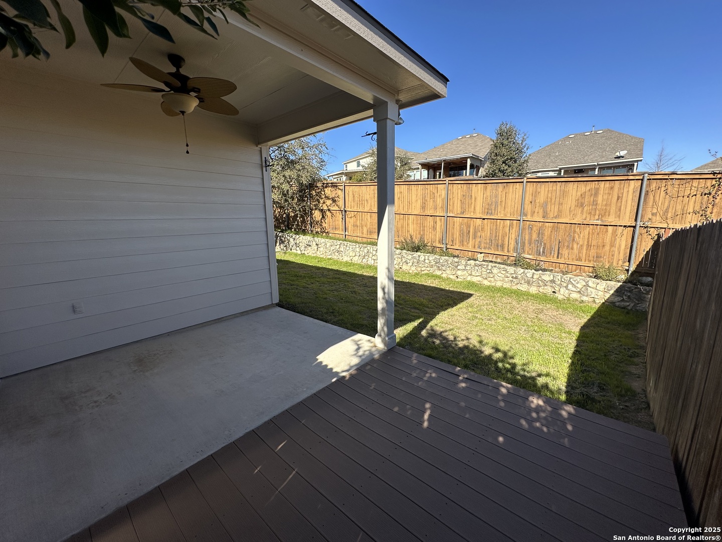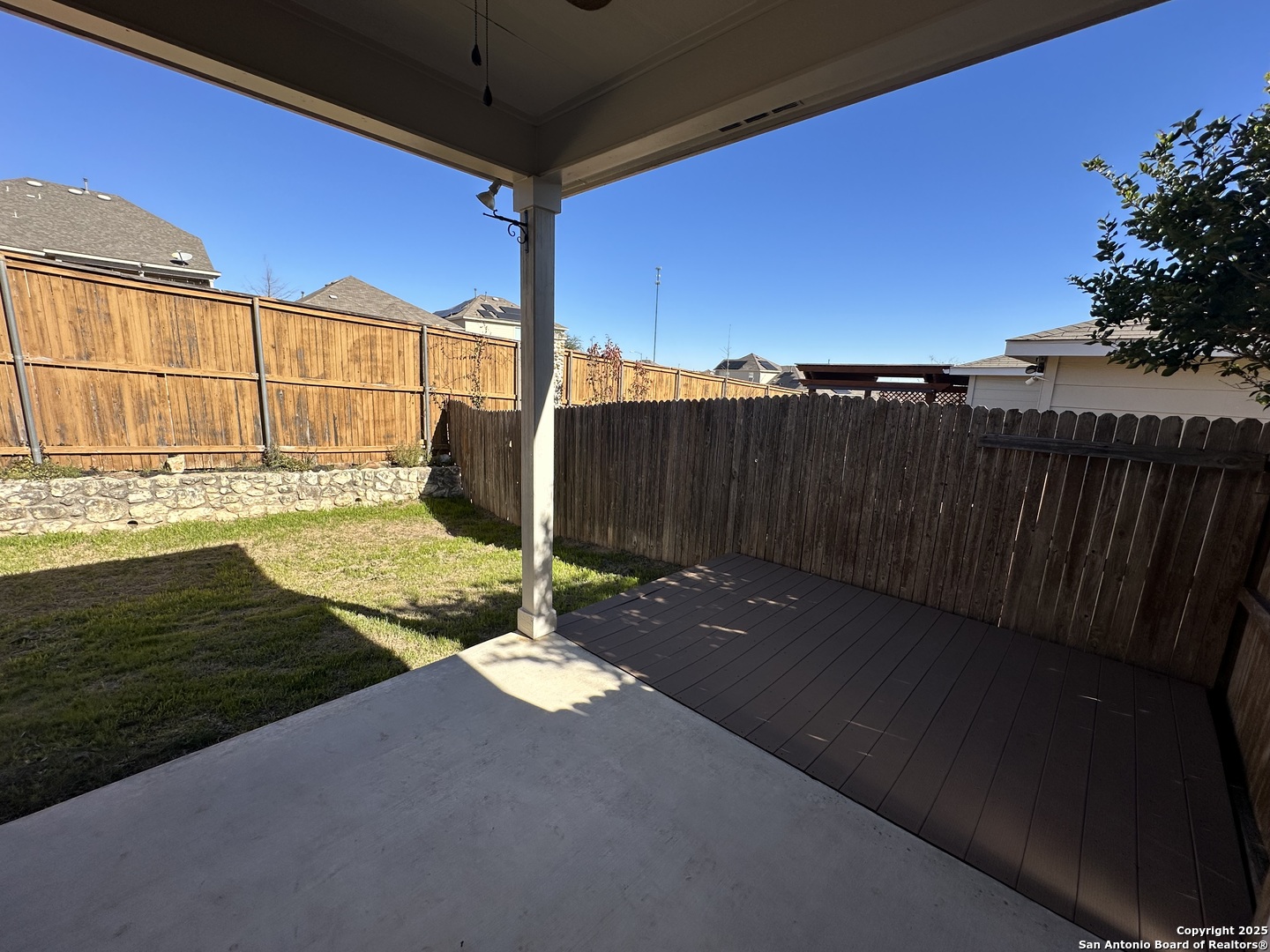 Home features 3 BR 2 bath w/open floor plan, split master layout for added privacy. Master suite includes walk-in closet, separate tub & shower. Laminate flooring & ceramic tile. Carpet in bedrooms. The property also boasts a separate dining room & eat-in kitchen. The washer, dryer, & fridge do not convey but are available for purchase. Fenced back yard & covered patio for outdoor fun! 600 min credit score, Income of 3X rent, good rental history & clean back-ground check. NO SMOKING!