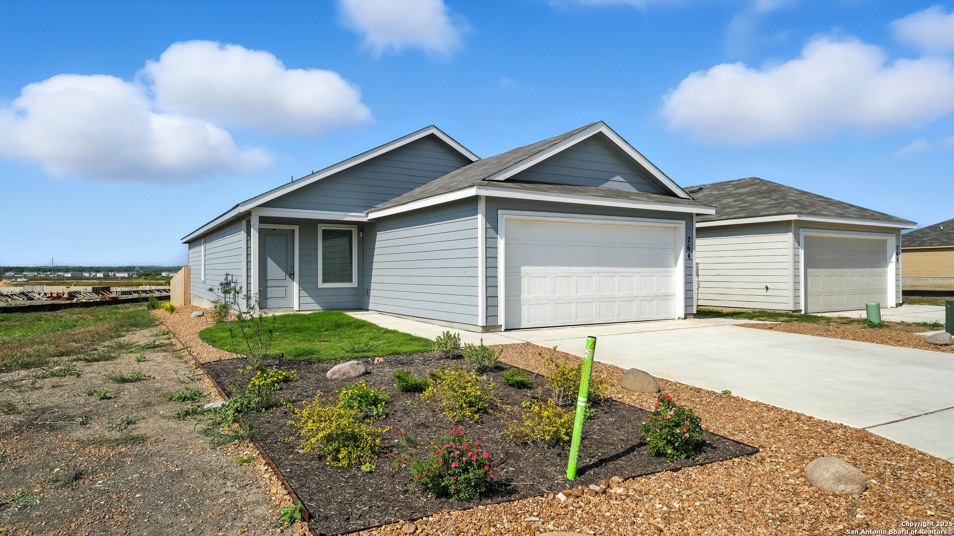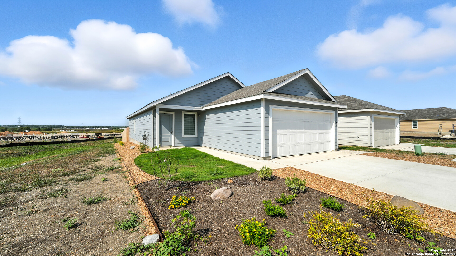 Step into this stunning new build featuring a bright and open floor plan with modern finishes throughout. The spacious kitchen seamlessly flows into the living and dining areas, creating the perfect space for both entertaining and everyday living. The primary suite offers comfort and style with a well-appointed bathroom and walk-in closet. Enjoy the convenience of a 2-car garage and the ease of low-maintenance zero-scaping throughout the yard. Extra privacy with no neighbors behind you. Located just minutes from downtown New Braunfels, you'll have quick access to I-35, as well as nearby shopping, dining, and entertainment. This home combines modern style with unbeatable location-schedule your showing today!