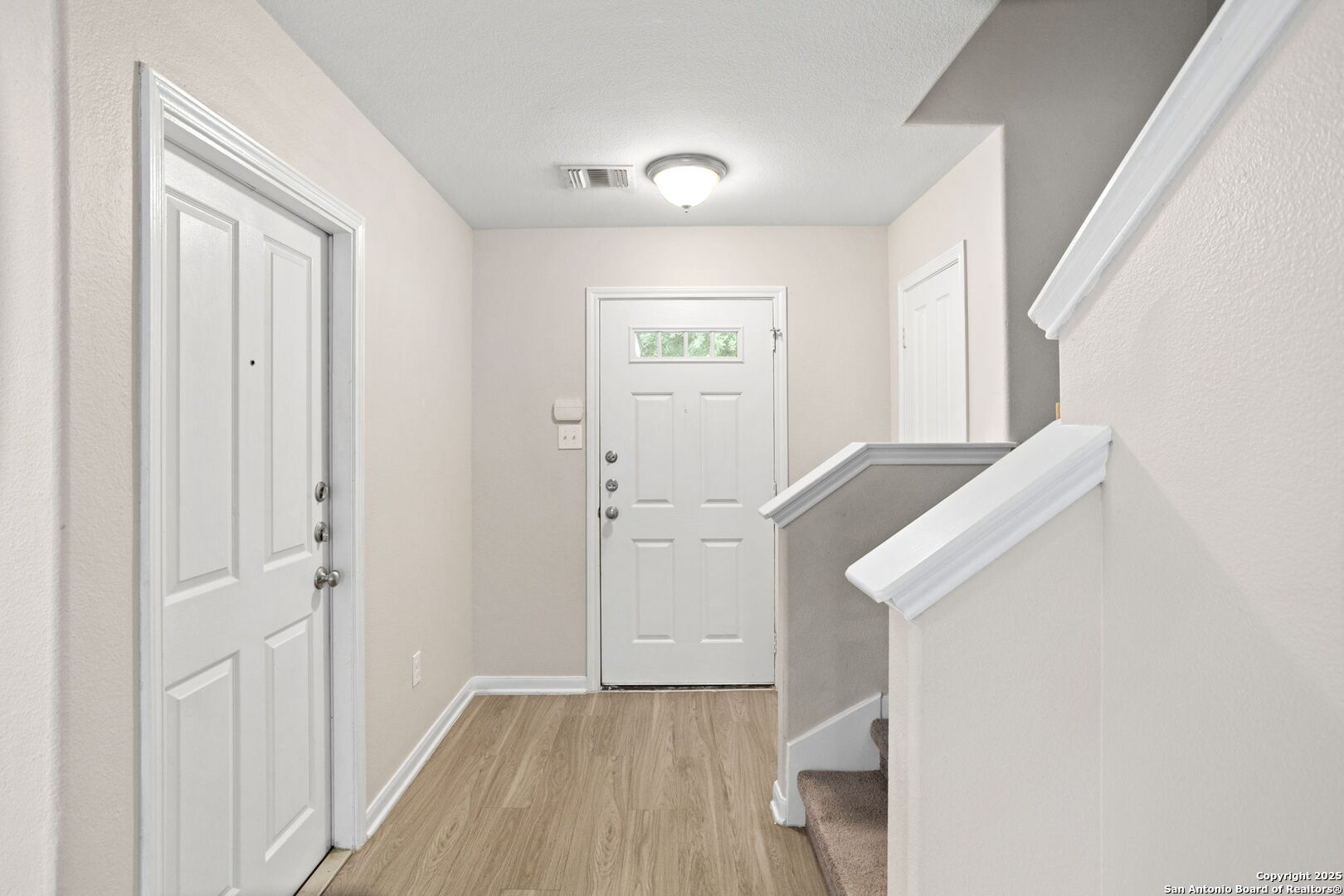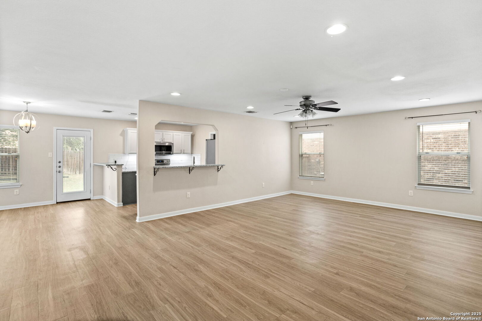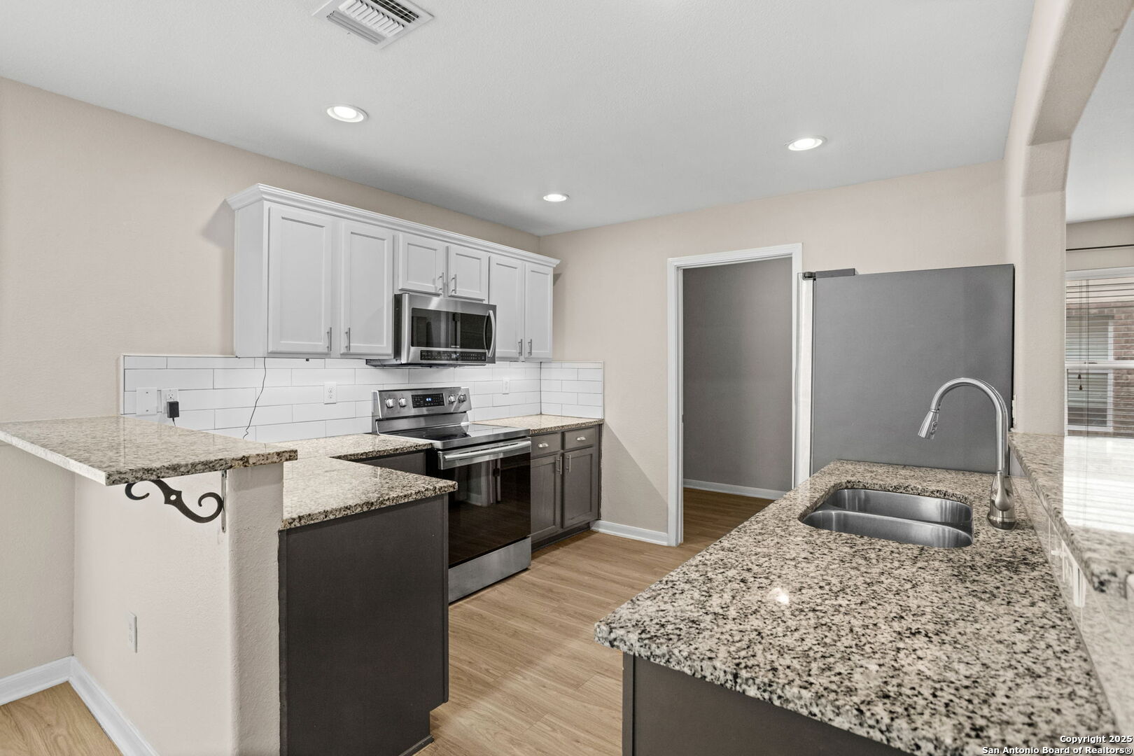 Welcome to this inviting home in the sought-after Stillwater Ranch community. Designed with comfort and practicality in mind, the first floor features stylish luxury vinyl plank flooring for easy maintenance and durability. Upstairs, you'll find spacious secondary bedrooms and a large primary suite that includes a flexible bonus area-ideal for a home office, nursery, or private sitting space. The primary bath offers dual sinks and a relaxing garden tub. The kitchen is a true highlight with granite counters, stainless steel appliances, and a bar-height island perfect for meals or entertaining guests. Energy-efficient construction keeps utility costs low while maintaining year-round comfort. Community amenities include a resort-style pool, clubhouse, walking trails, tennis courts, and playgrounds. With quick access to Hwy 151, Sea World, Lackland AFB, Medina Lake, shopping, and dining, this location has it all.