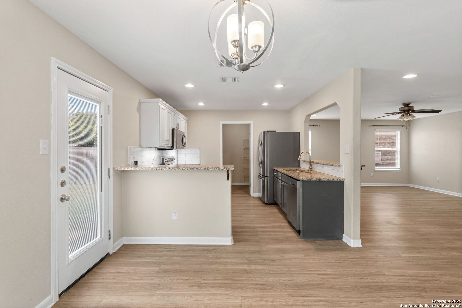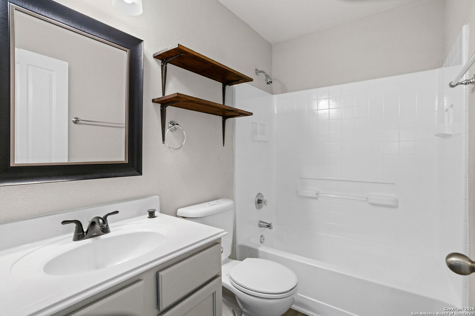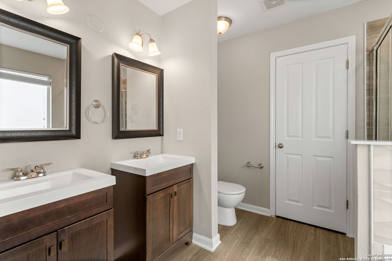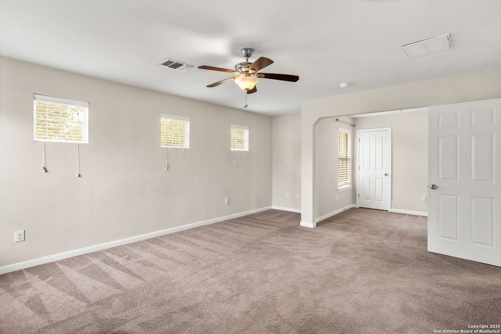 Welcome to this inviting home in the sought-after Stillwater Ranch community. Designed with comfort and practicality in mind, the first floor features stylish luxury vinyl plank flooring for easy maintenance and durability. Upstairs, you'll find spacious secondary bedrooms and a large primary suite that includes a flexible bonus area-ideal for a home office, nursery, or private sitting space. The primary bath offers dual sinks and a relaxing garden tub. The kitchen is a true highlight with granite counters, stainless steel appliances, and a bar-height island perfect for meals or entertaining guests. Energy-efficient construction keeps utility costs low while maintaining year-round comfort. Community amenities include a resort-style pool, clubhouse, walking trails, tennis courts, and playgrounds. With quick access to Hwy 151, Sea World, Lackland AFB, Medina Lake, shopping, and dining, this location has it all.